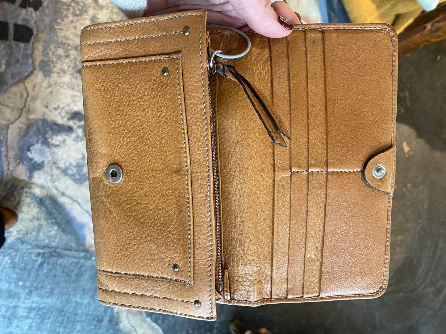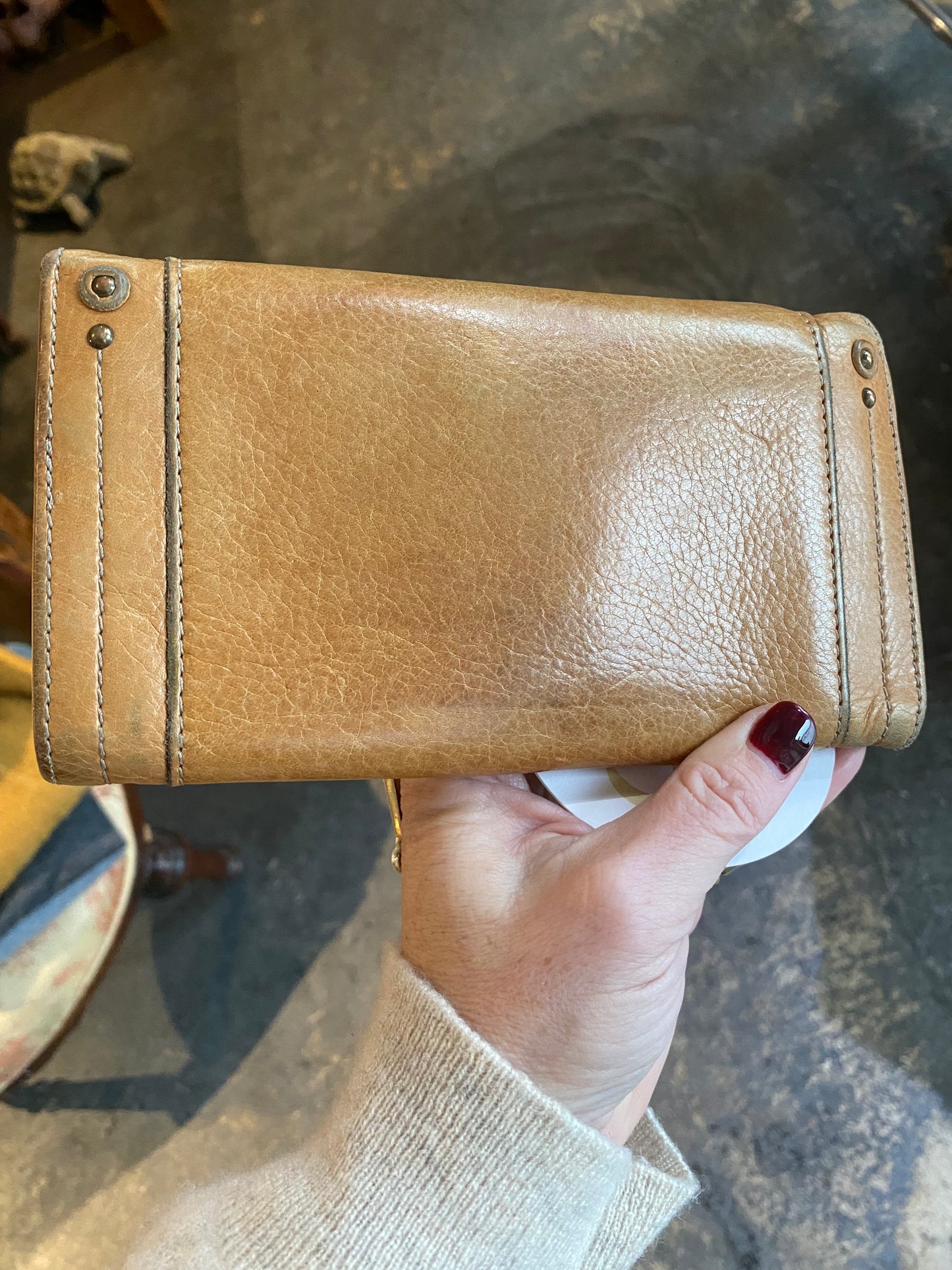 The cult-classic, downsized. This Chloé Paddington wallet features that iconic mini padlock hardware, buttery caramel leather, and perfectly worn-in patina that only gets better with age. Equal parts nostalgic and still impossibly chic - because some It bags never really leave the conversation.