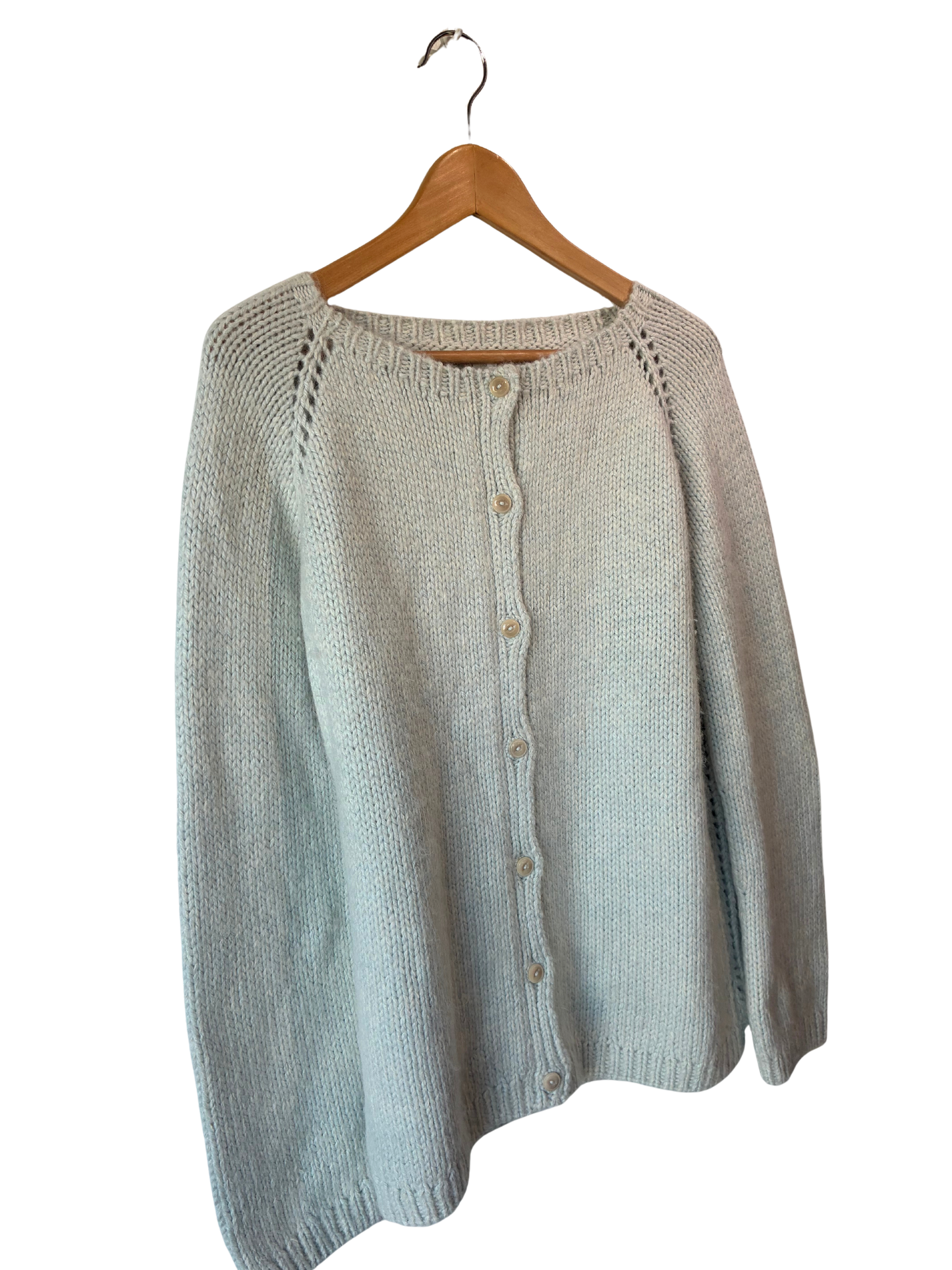 This Icy blue, super-soft and yummy alpaca crochet knit is the cardigan that you will keep reaching for. Cozy, plush, and luxurious, Dosa nails comfy chic. A forever piece for cool mornings, coastal air, and year-round layering.