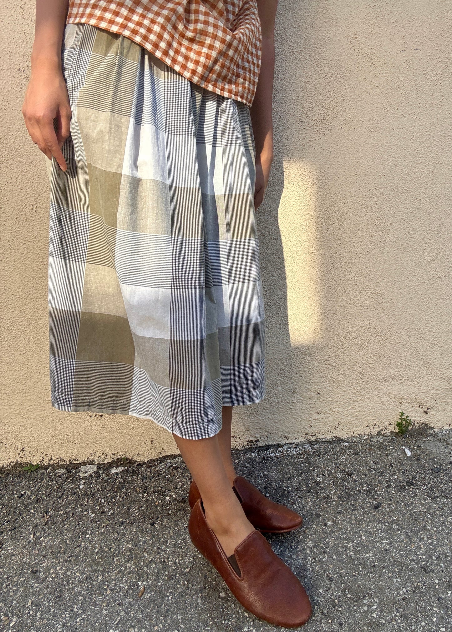 Esprit Tan Grey Plaid Skirt