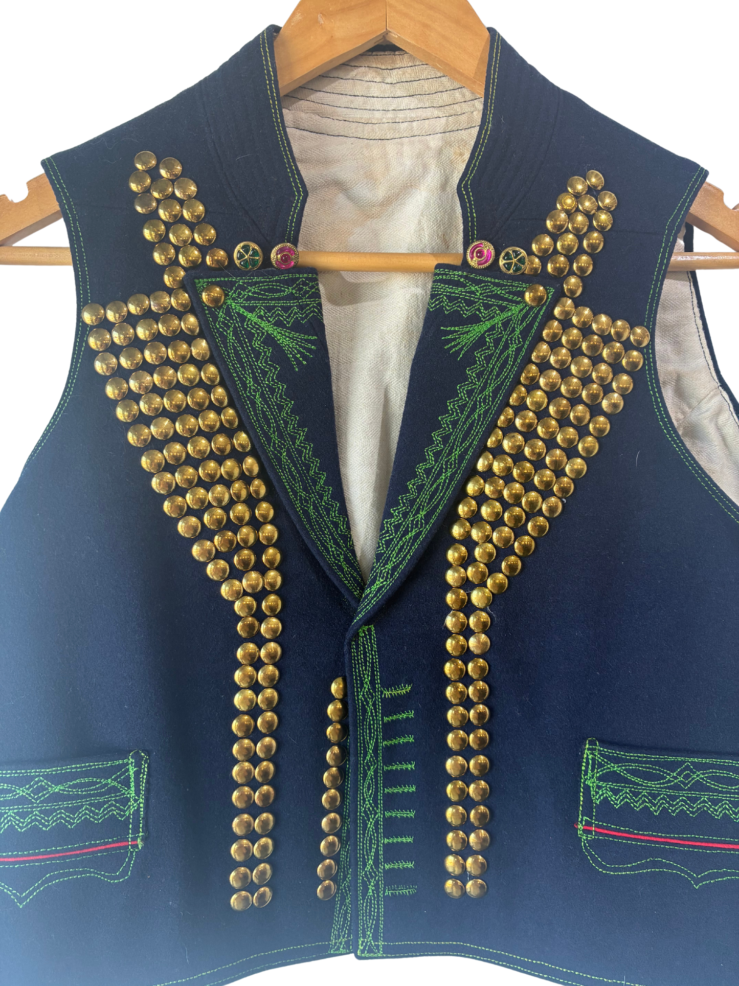 Folkloric Blue Wool Vest with Studs