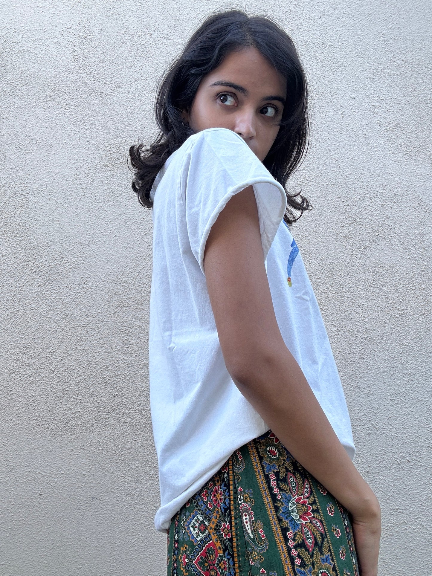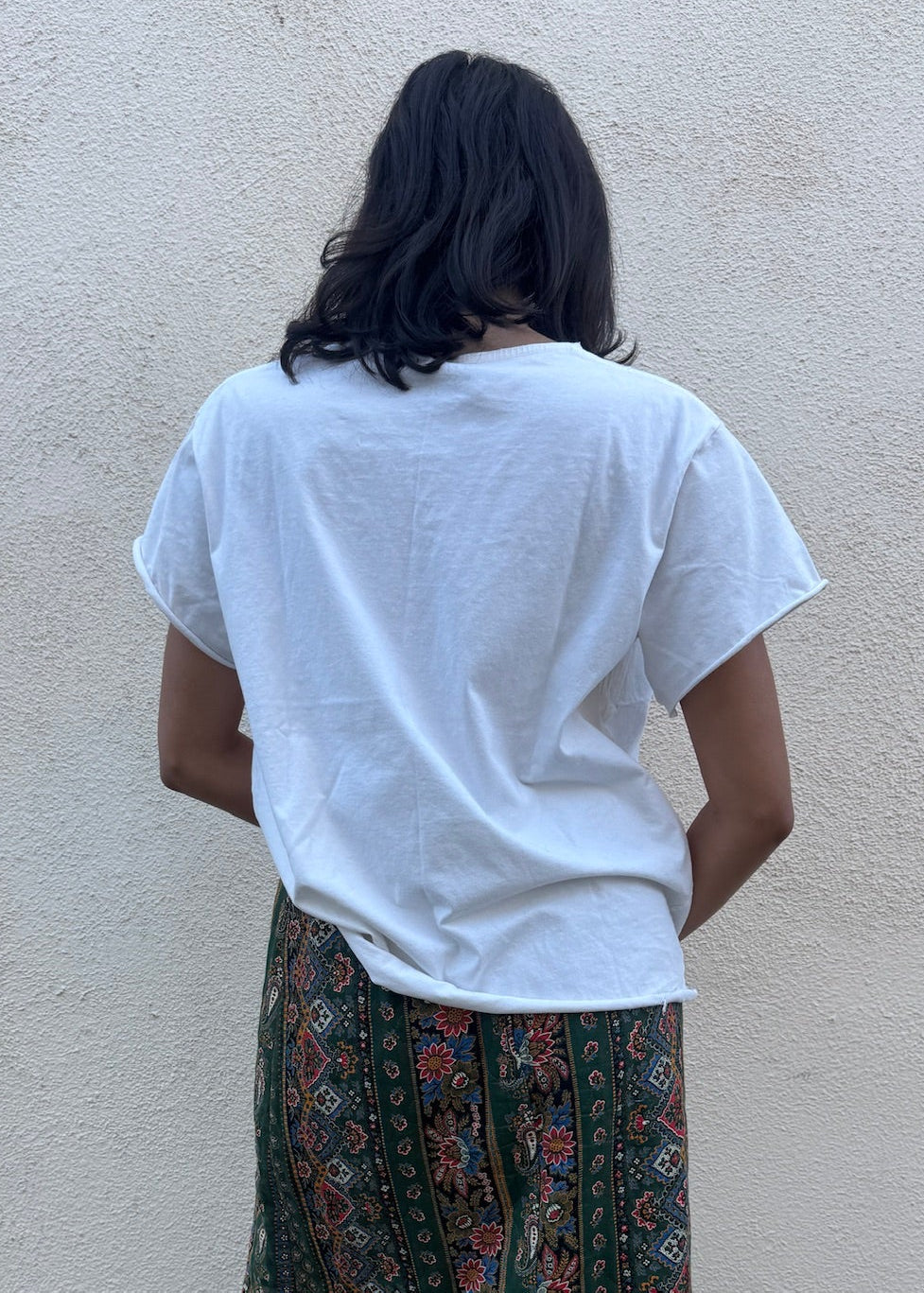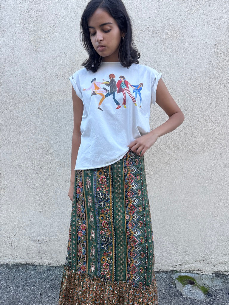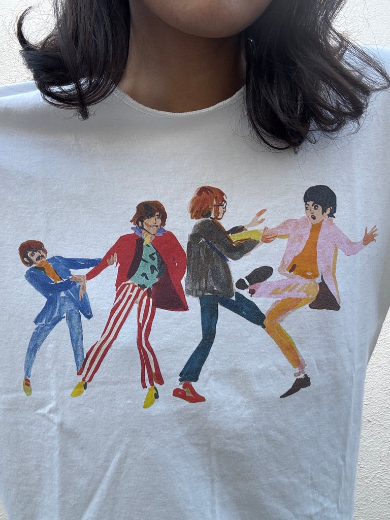 This G.Kero graphic tee is all play featuring a colorful illustrated Beatles scene and a crew neckline. As easy and relaxed as the music, this piece has an oversized feel. Material feels like 100% cotton but it is unspecified. Tuck it in, roll up the sleeves and wear this fun, art-forward tee that brings a little whimsy to everyday dressing!