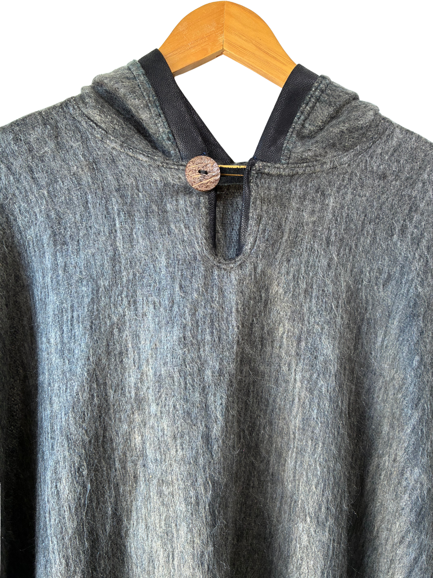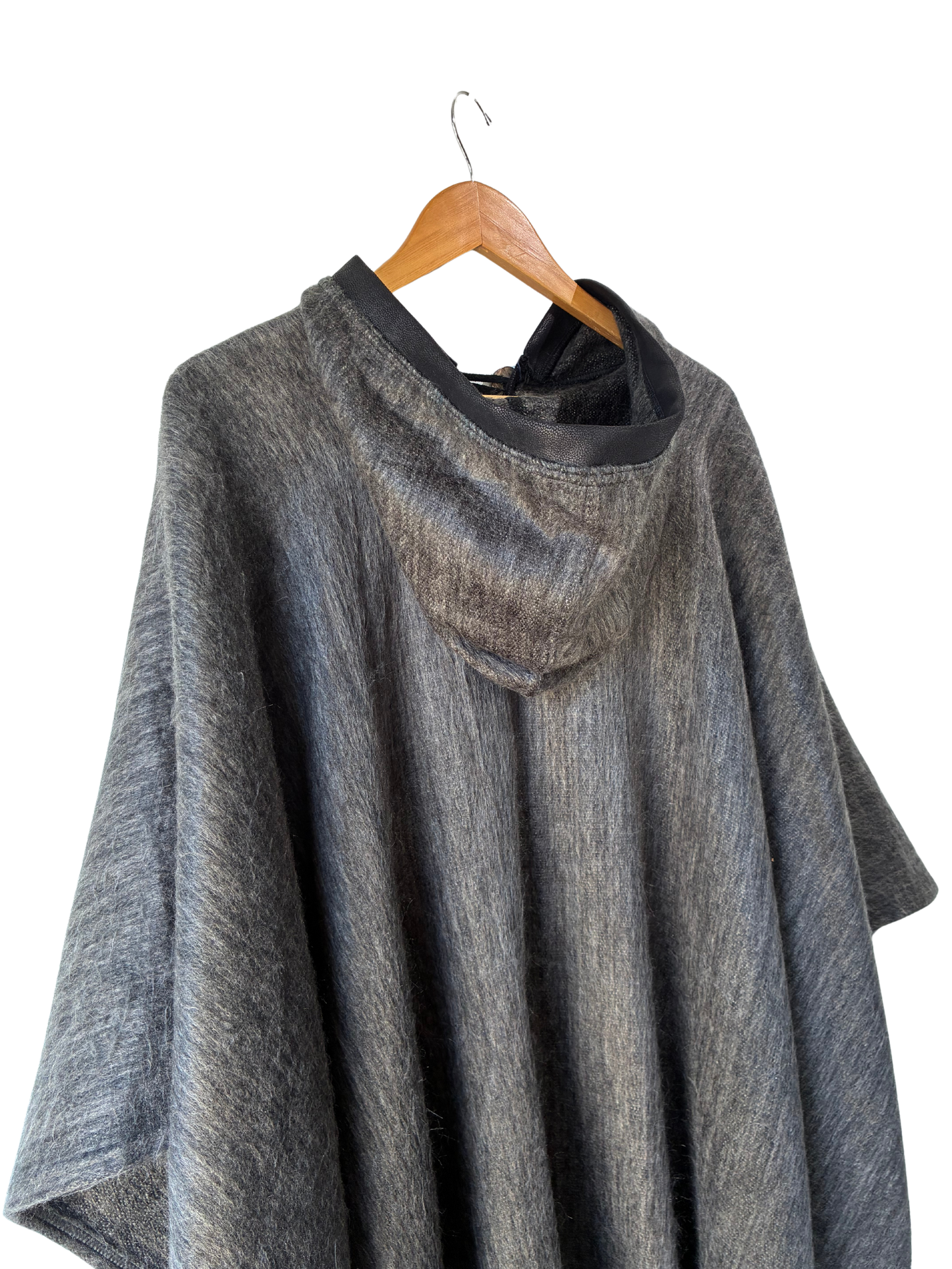 Grey Alpaca Poncho with Hood
