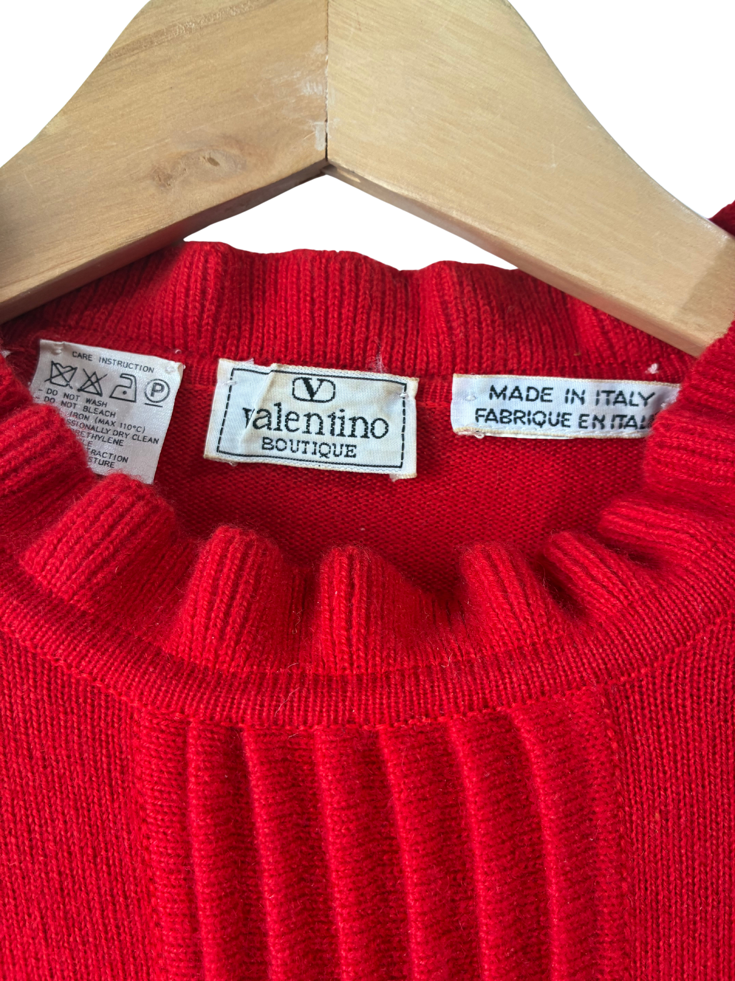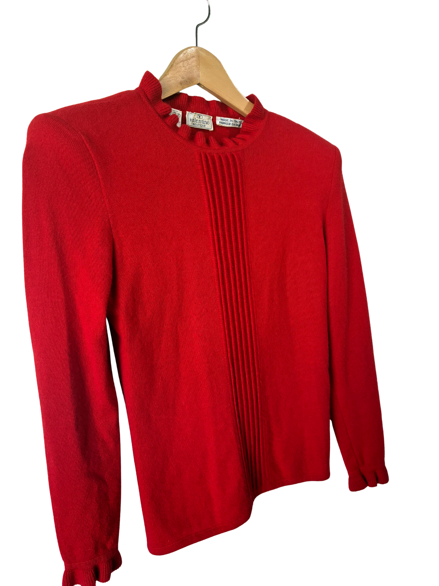 Vintage Valentino Red Cashmere Ruffle Sweater