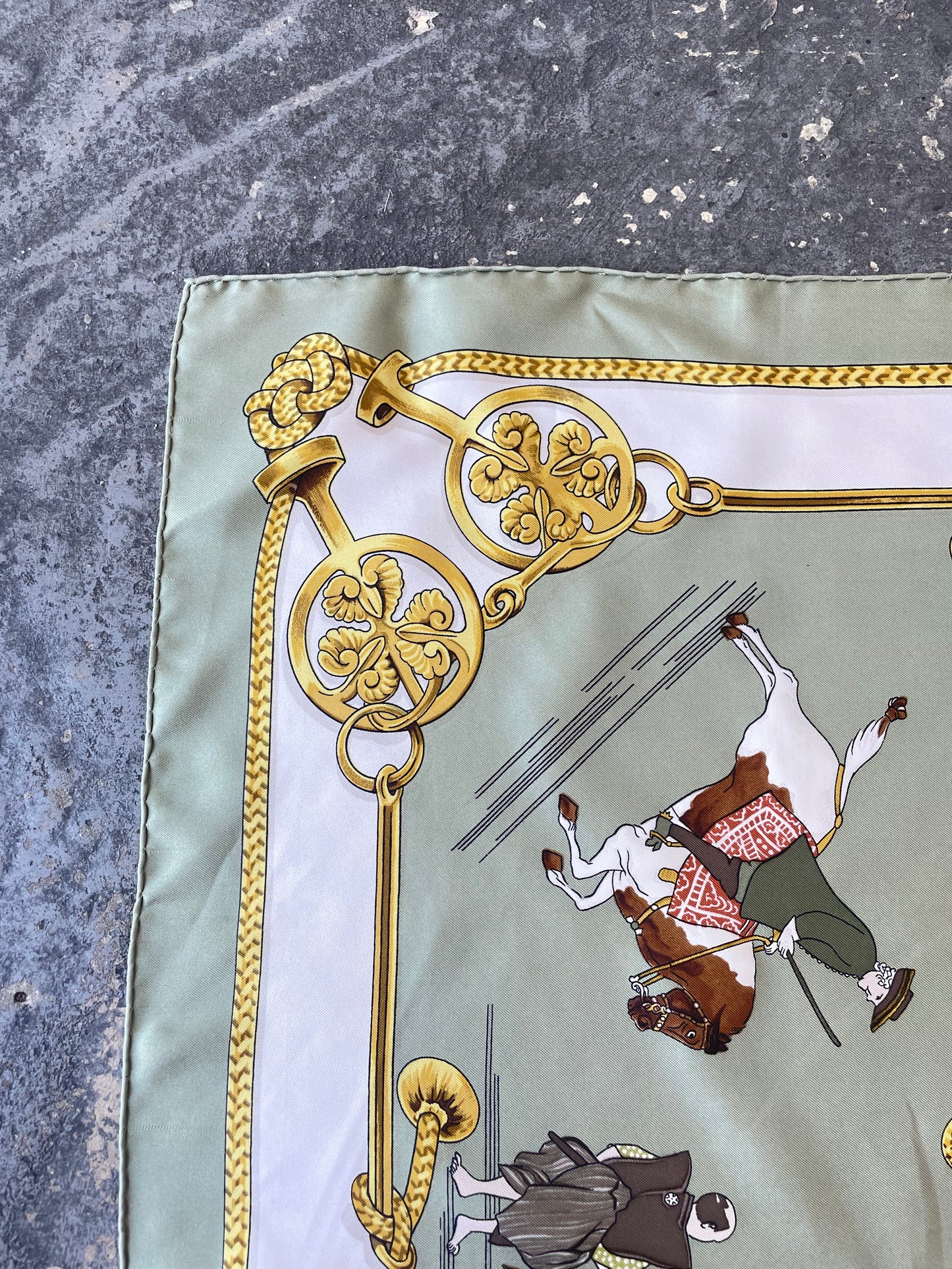 Hermès “Équitation Japonaise” Green 1969 Silk Scarf