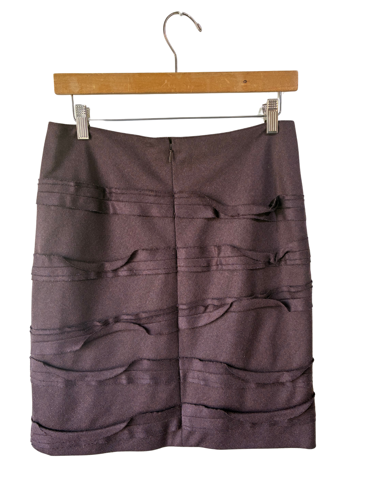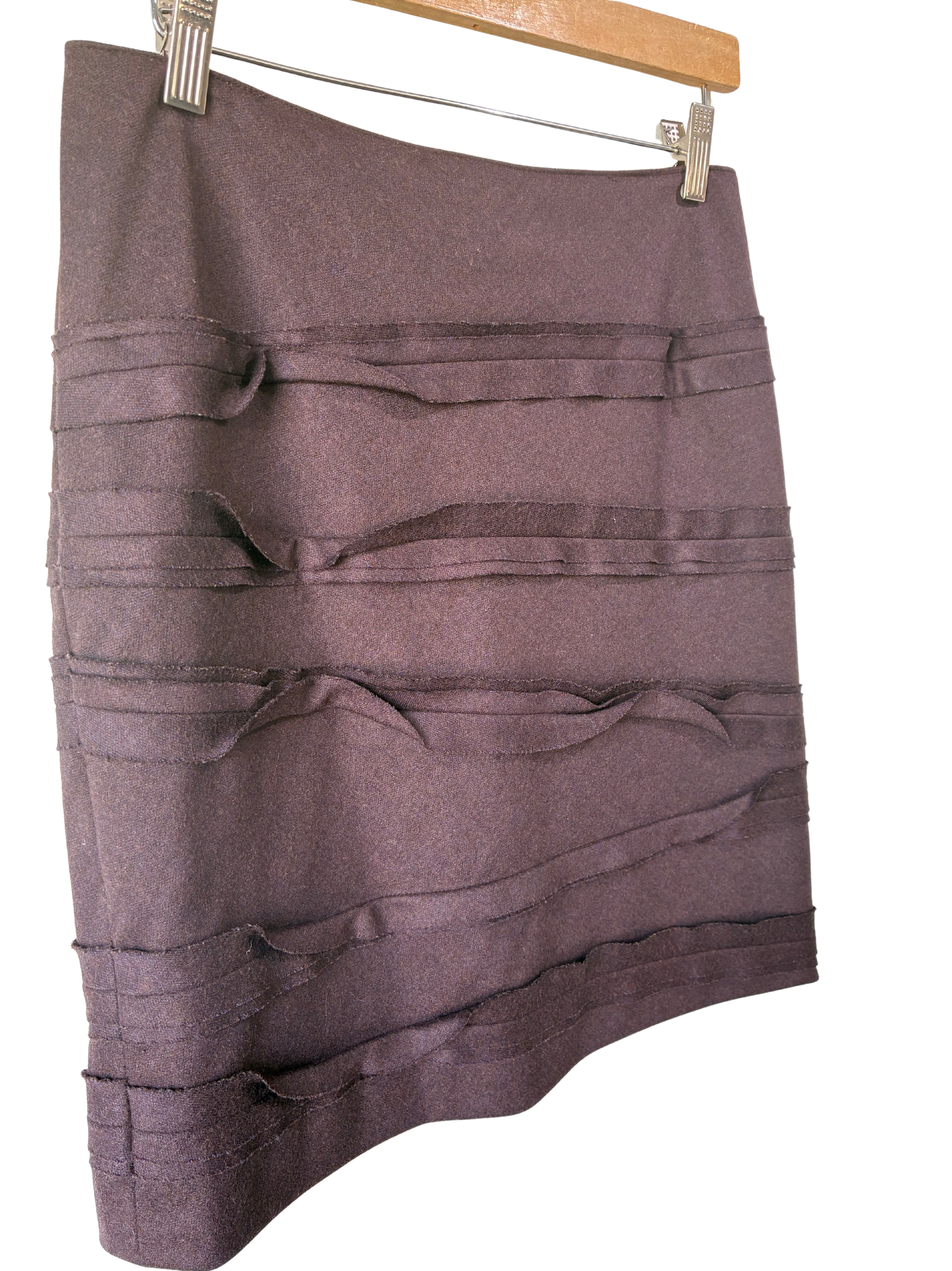 Vintage Oscar de la Renta Eggplant Wool Skirt, proof that a great piece can do all the work. Rich eggplant wool with exposed, slightly wayward seaming that gives it some edge. Killer on its own, this would look amazing with brown or grey patterned tights.