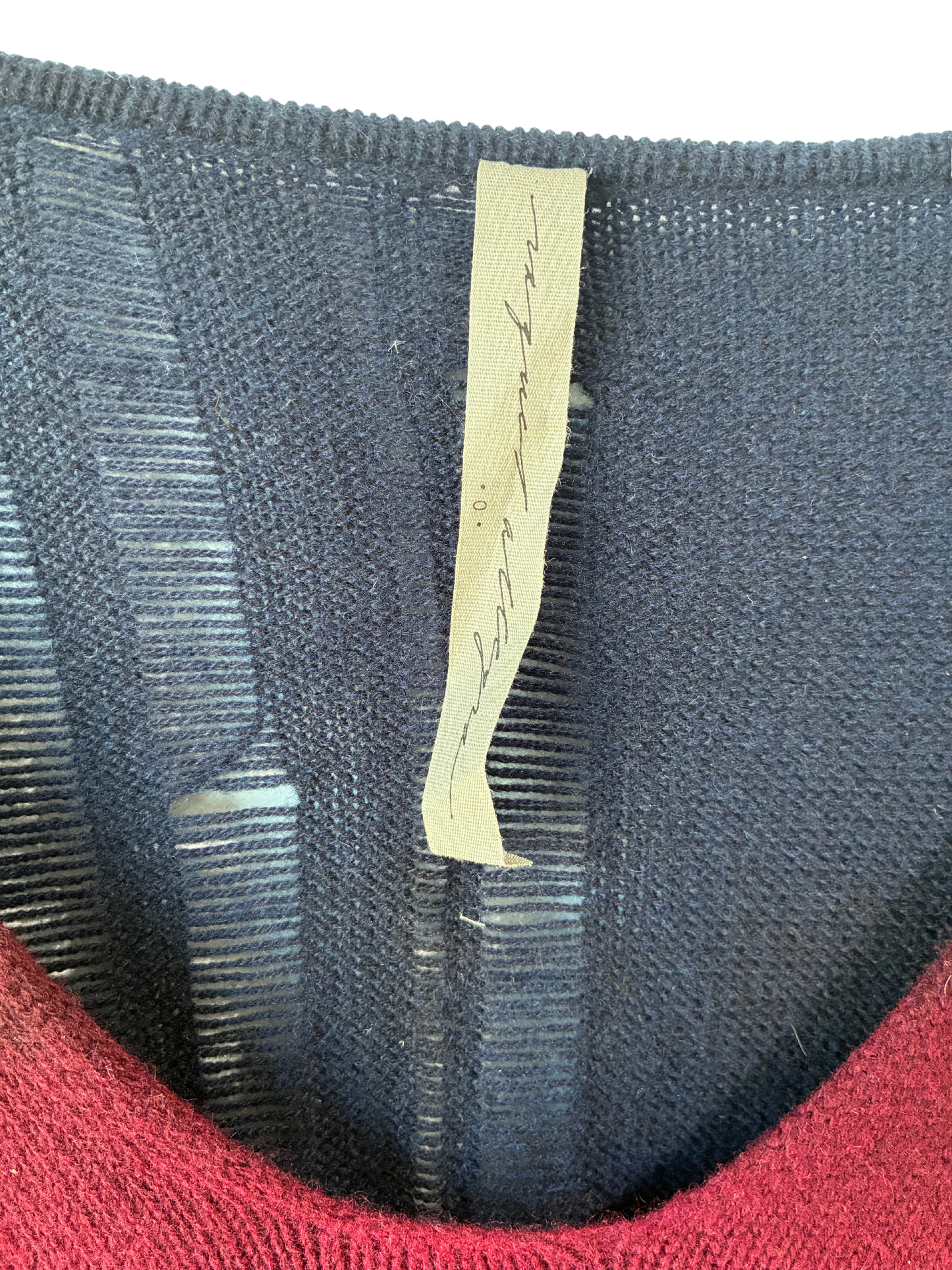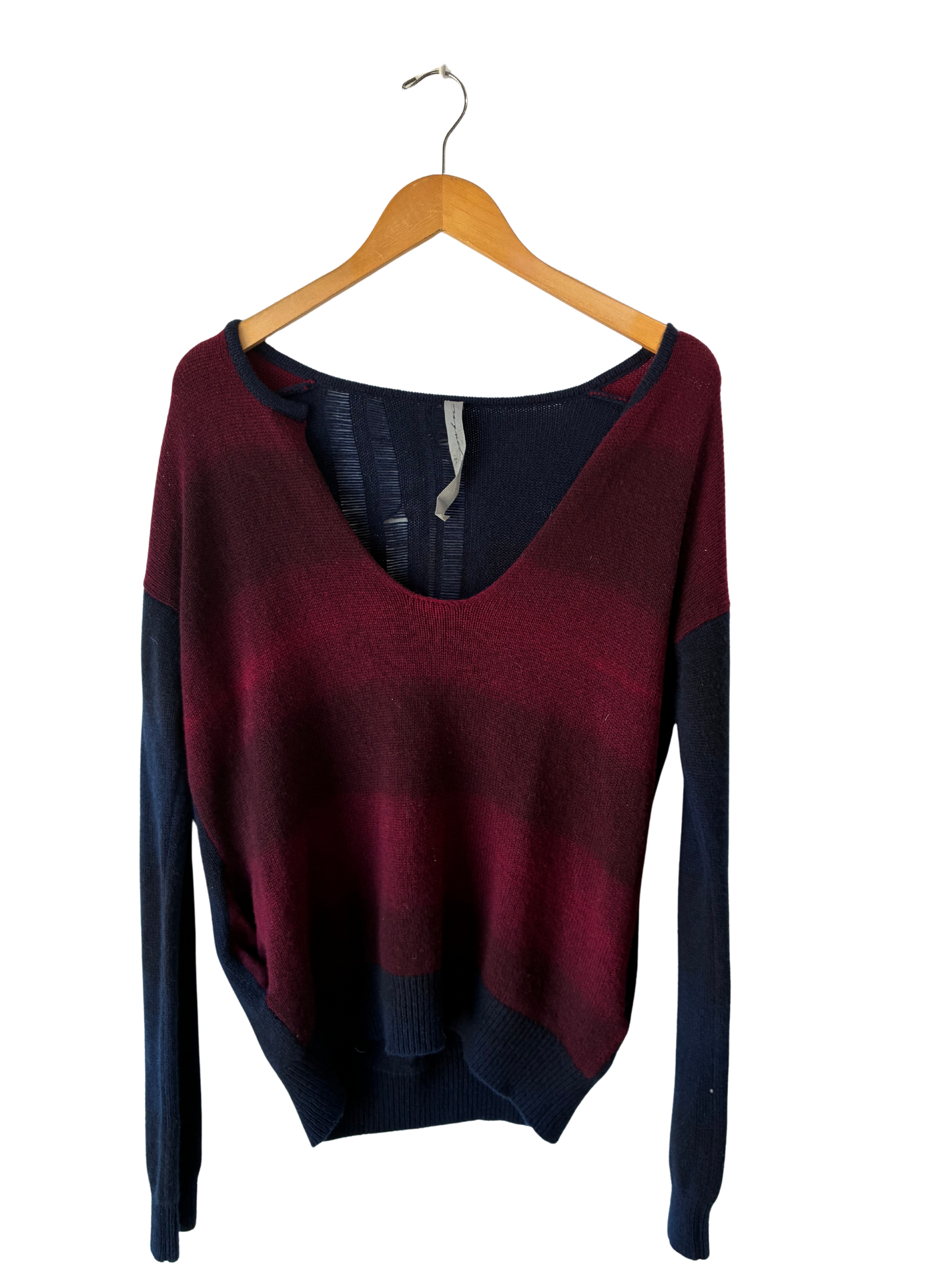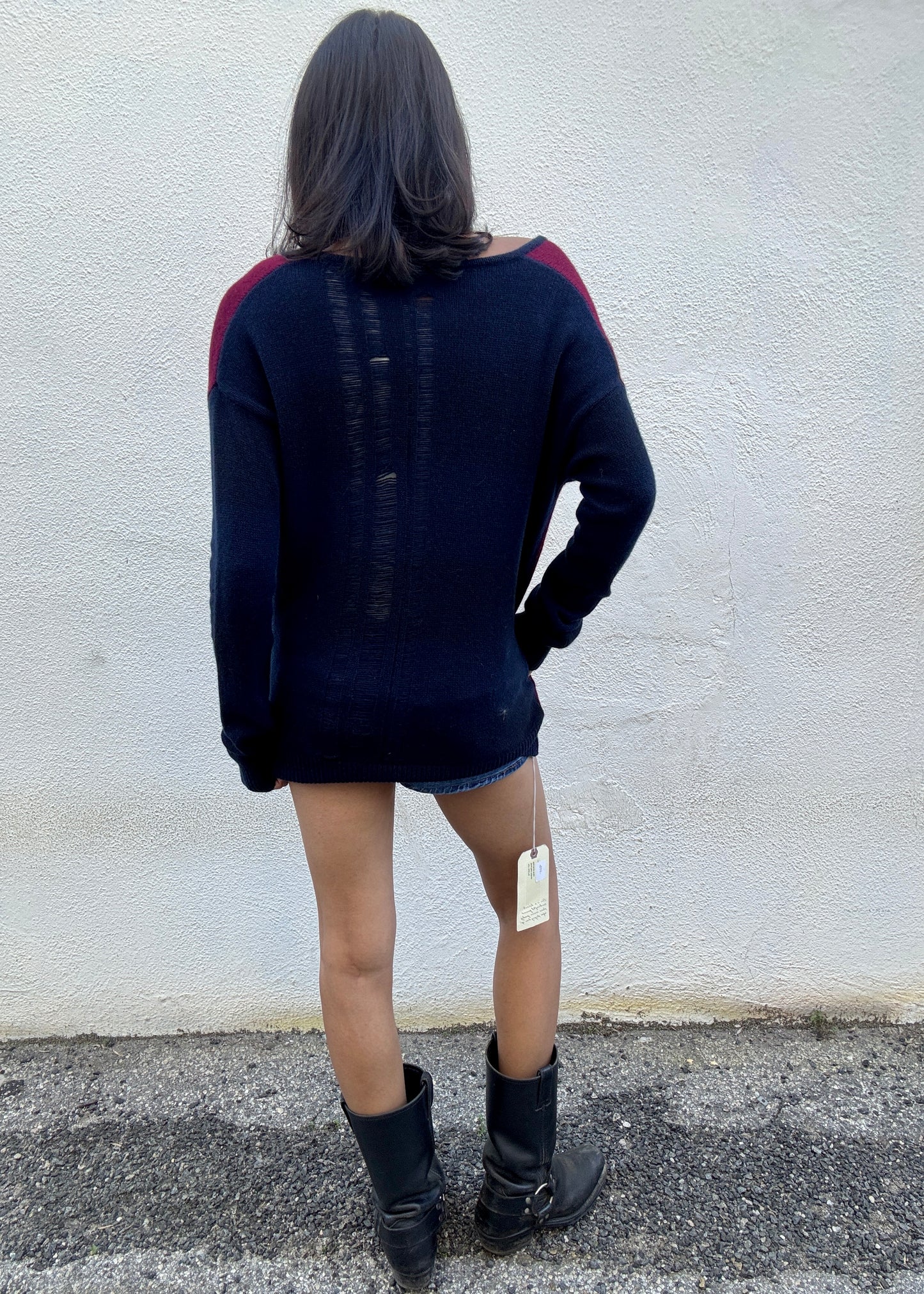 Raquel Allegra Maroon and Navy Shred Back Sweater