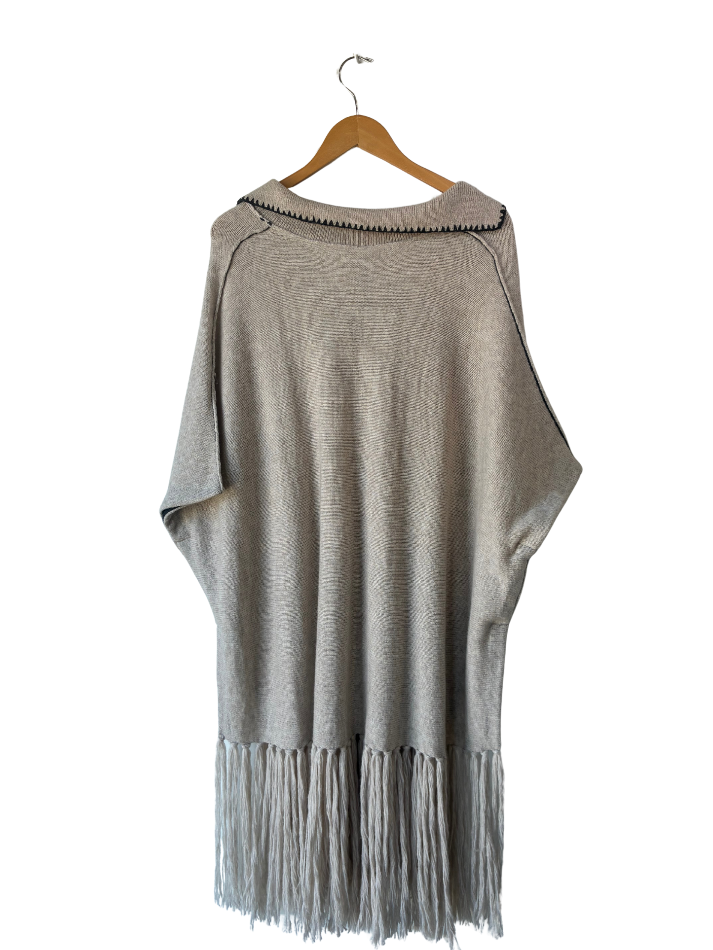 Raquel Allegra Oatmeal Cashmere Blend Fringed Short Poncho