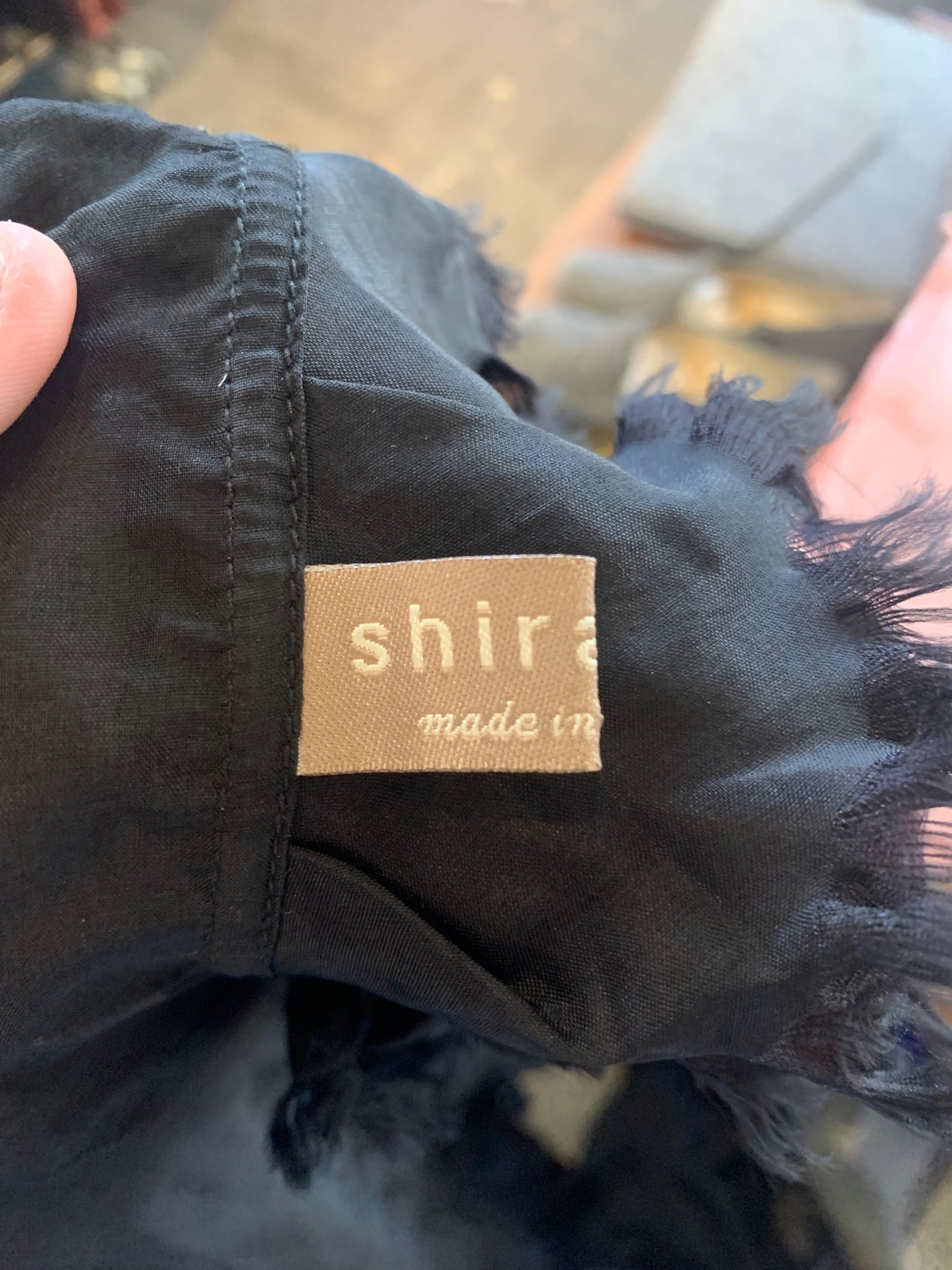 Shirleah Black Silk Shawl with Ruffled Edge. Dry clean only, 100% silk. Excellent condition. One size.