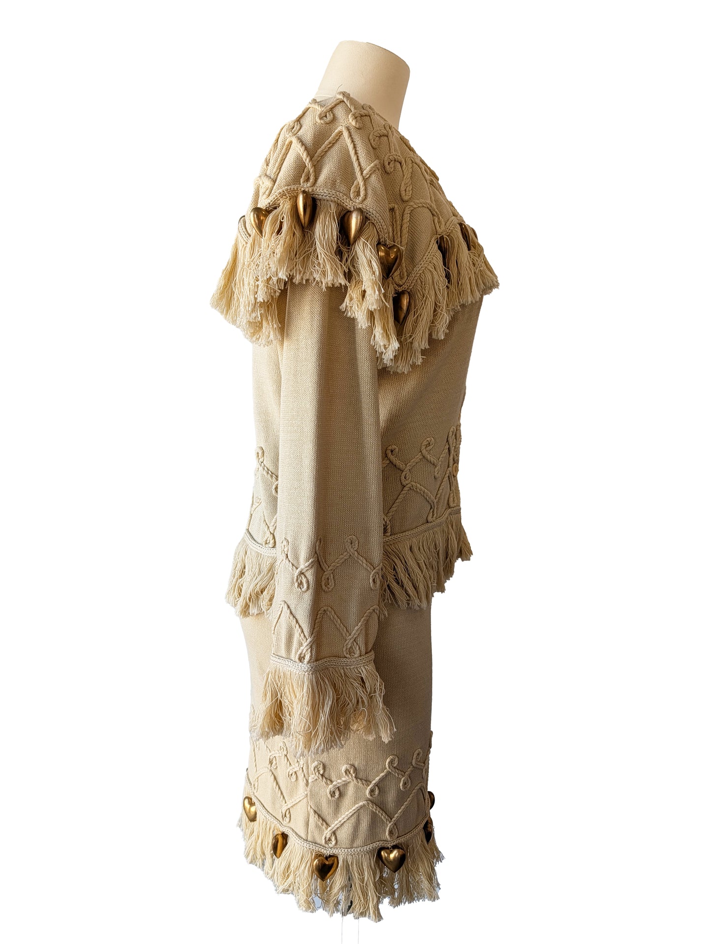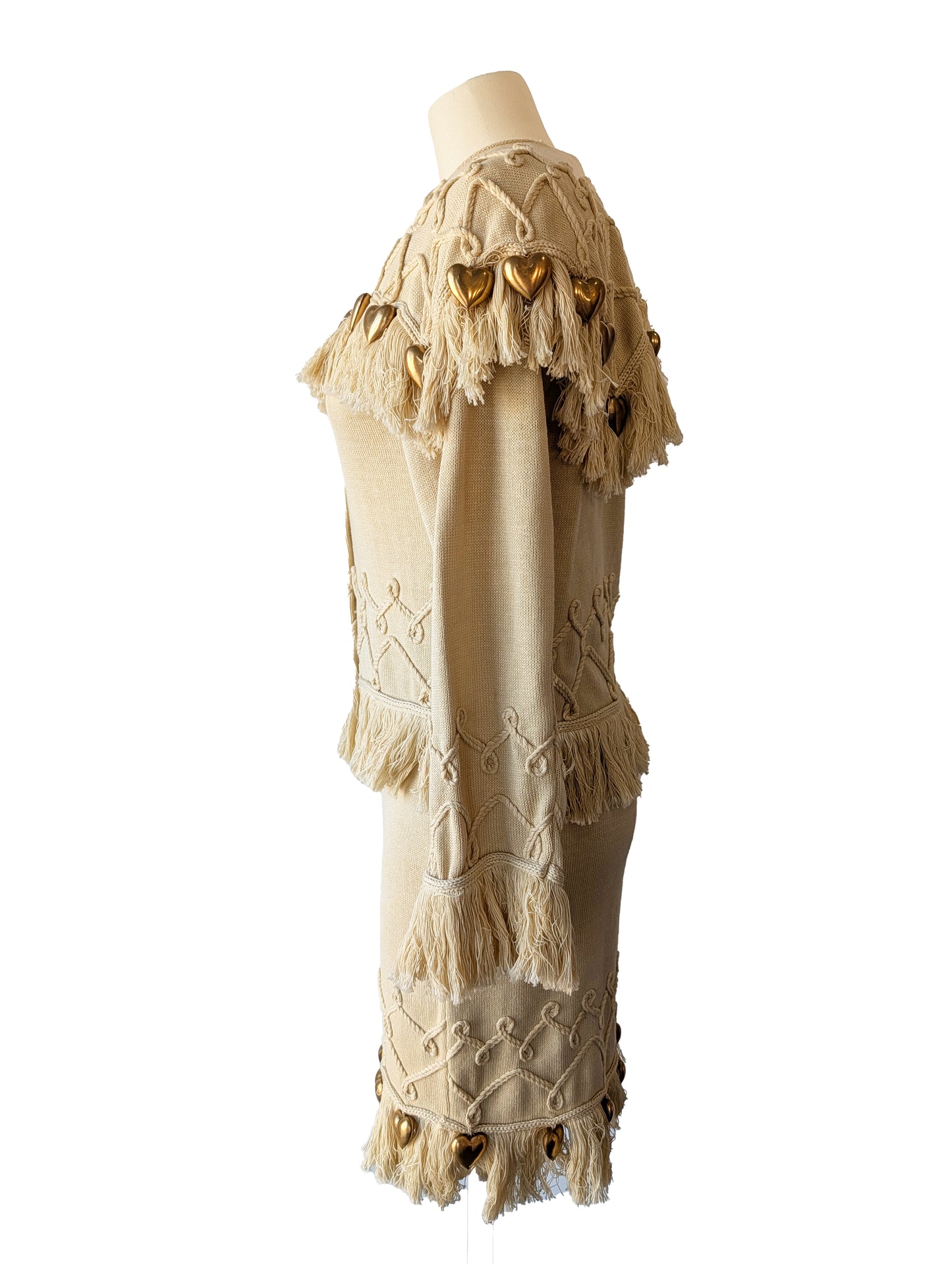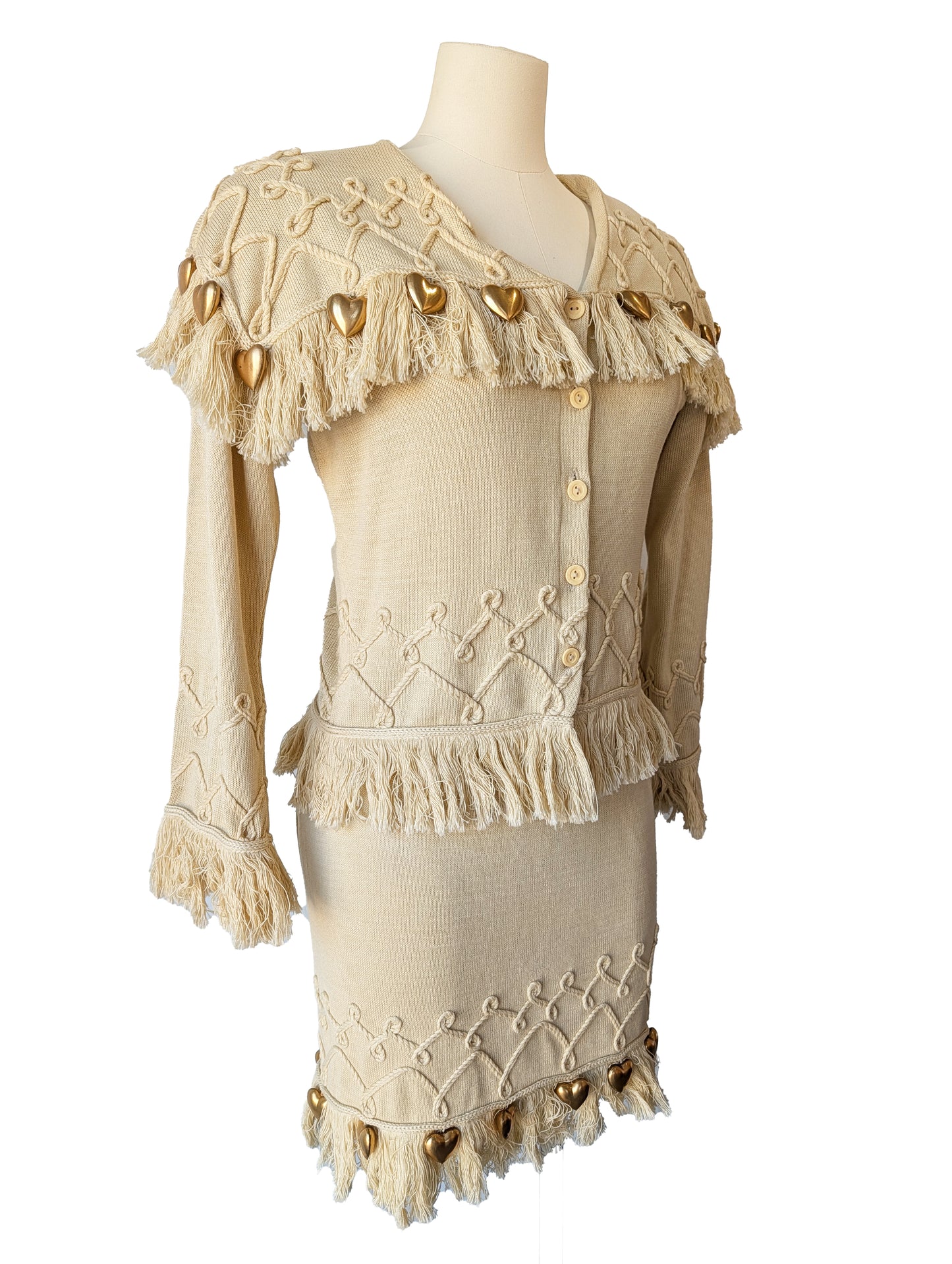 Claude Barthelemy Dusty Yellow Knit Skirt Set with Metal Hearts