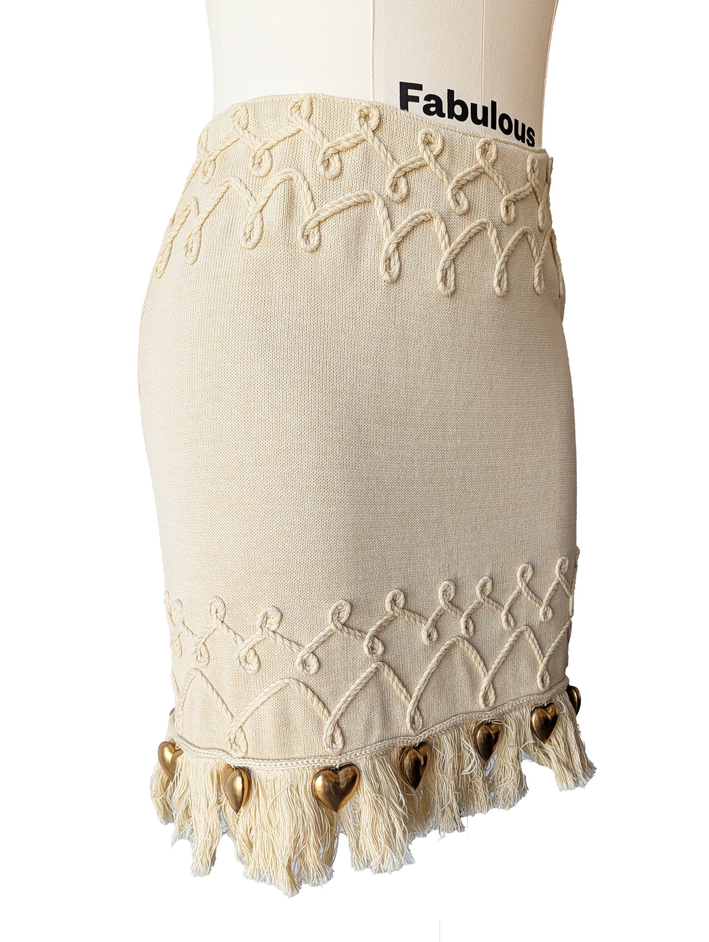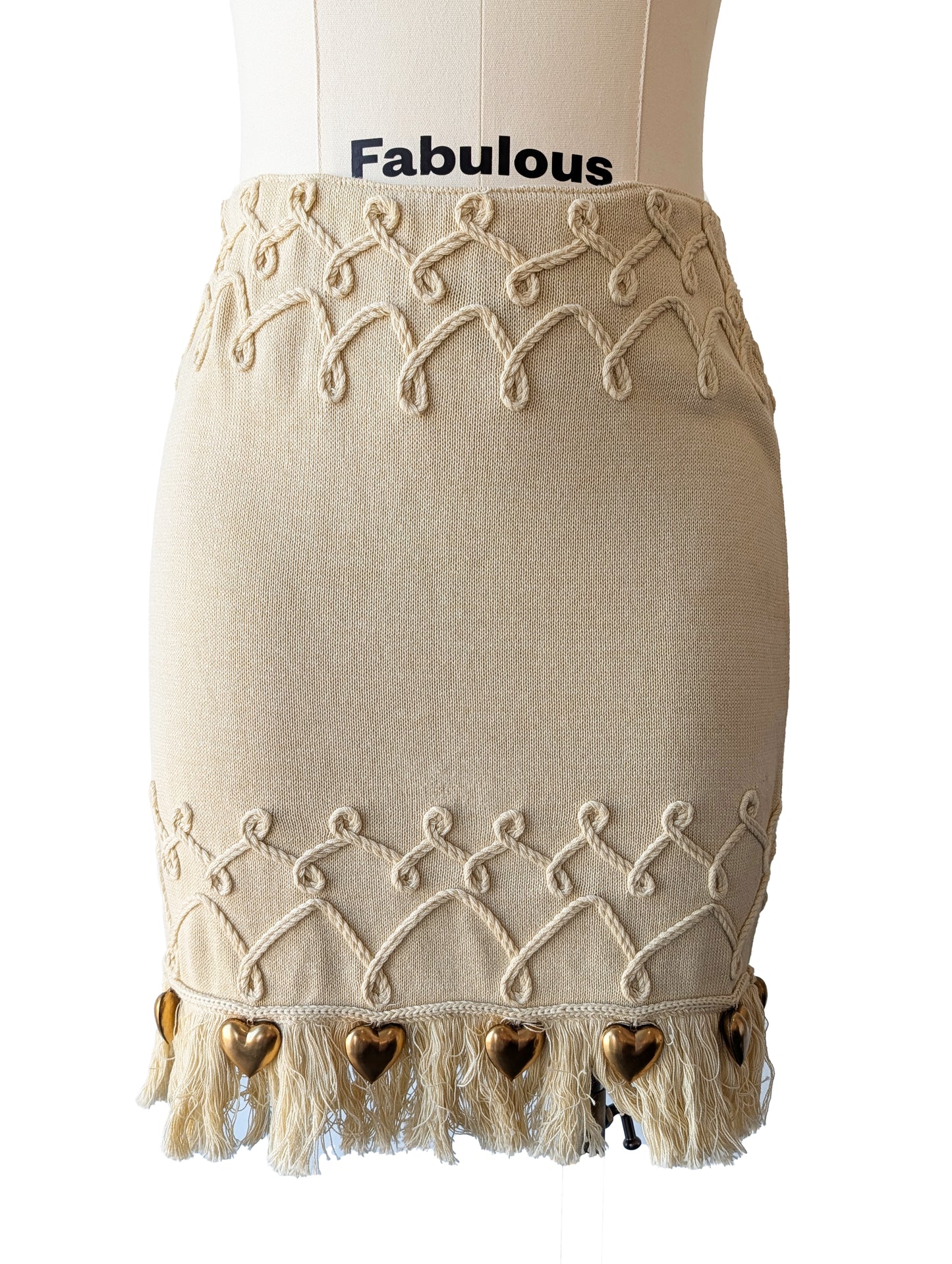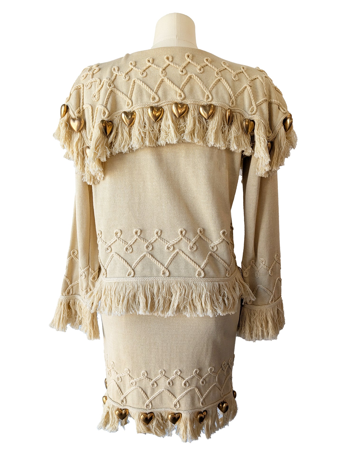 Claude Barthelemy Dusty Yellow Knit Skirt Set with Metal Hearts