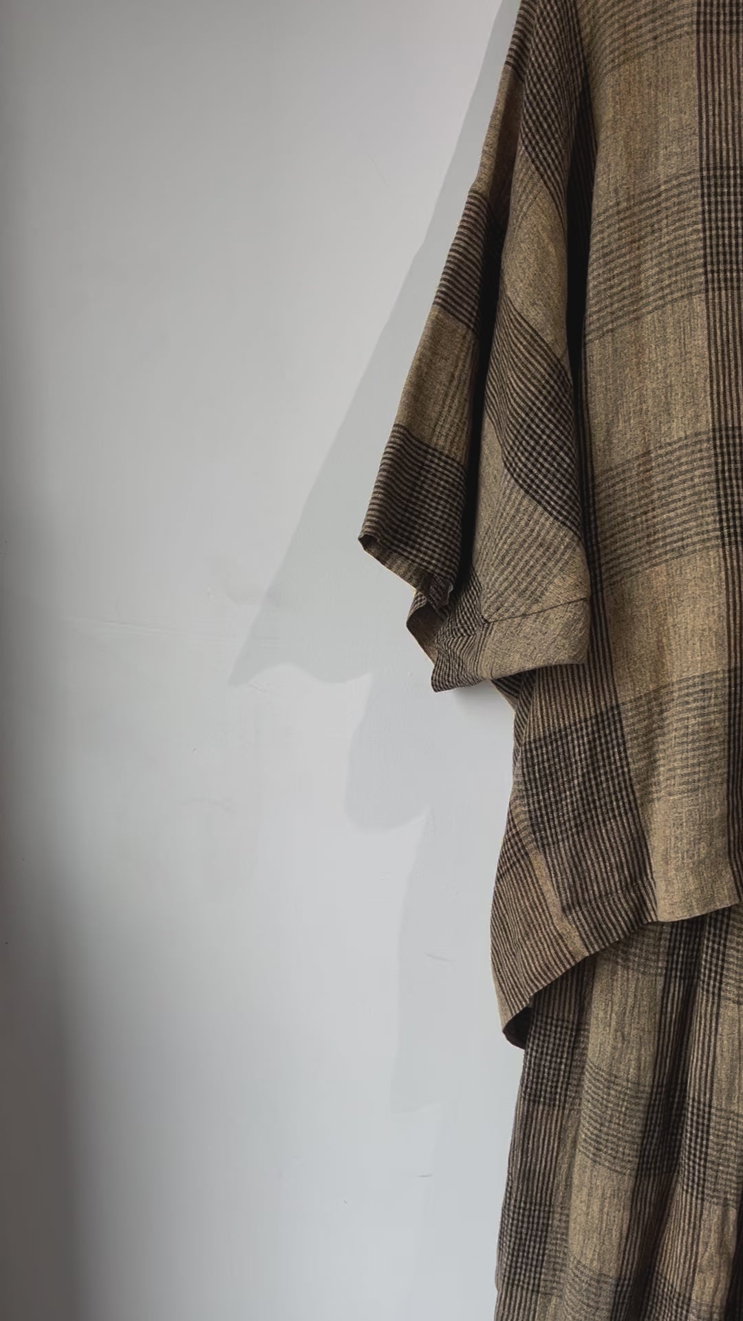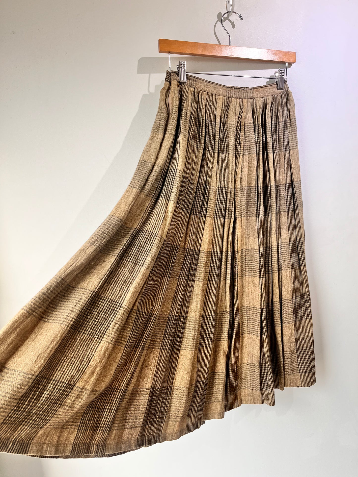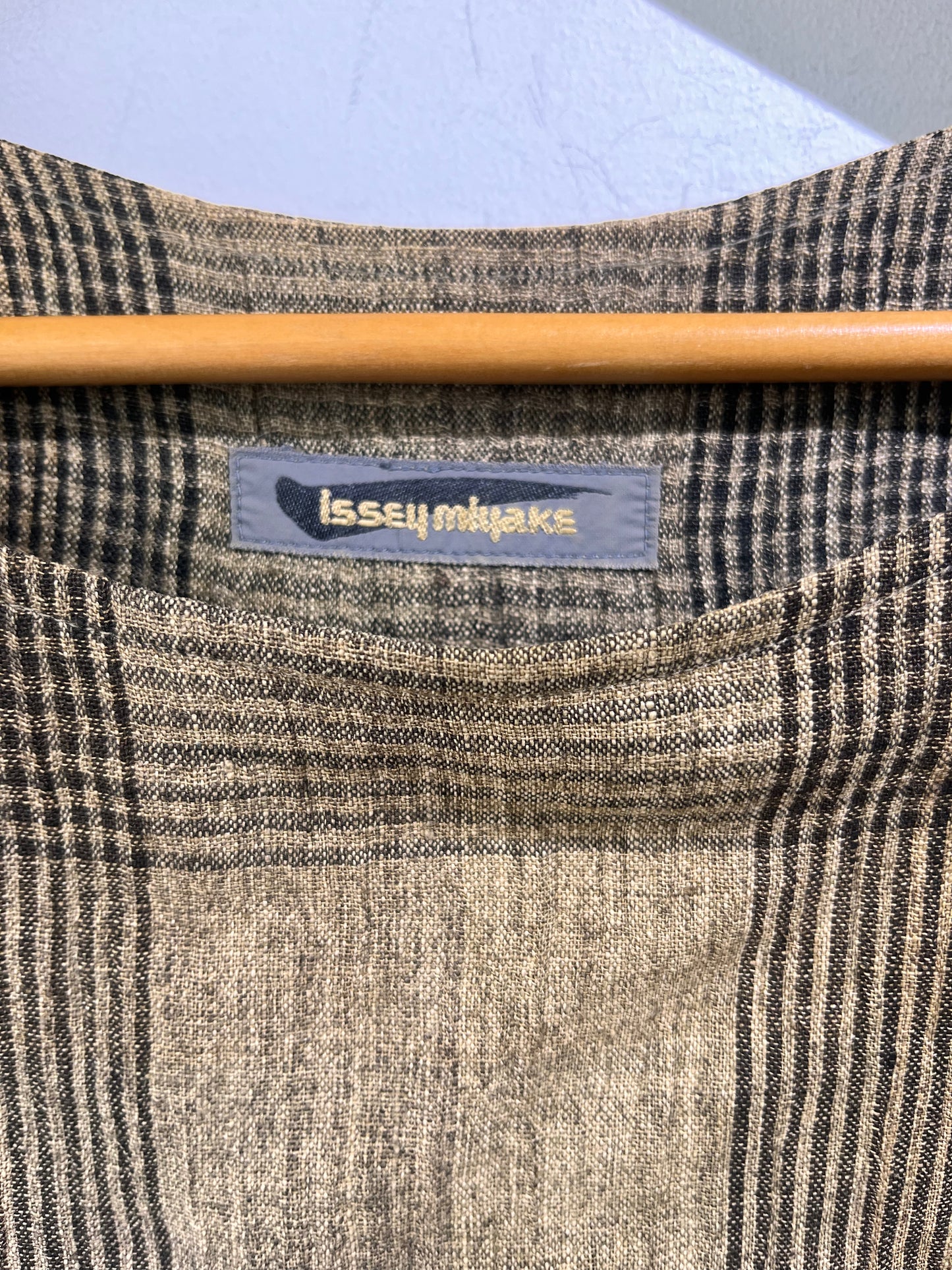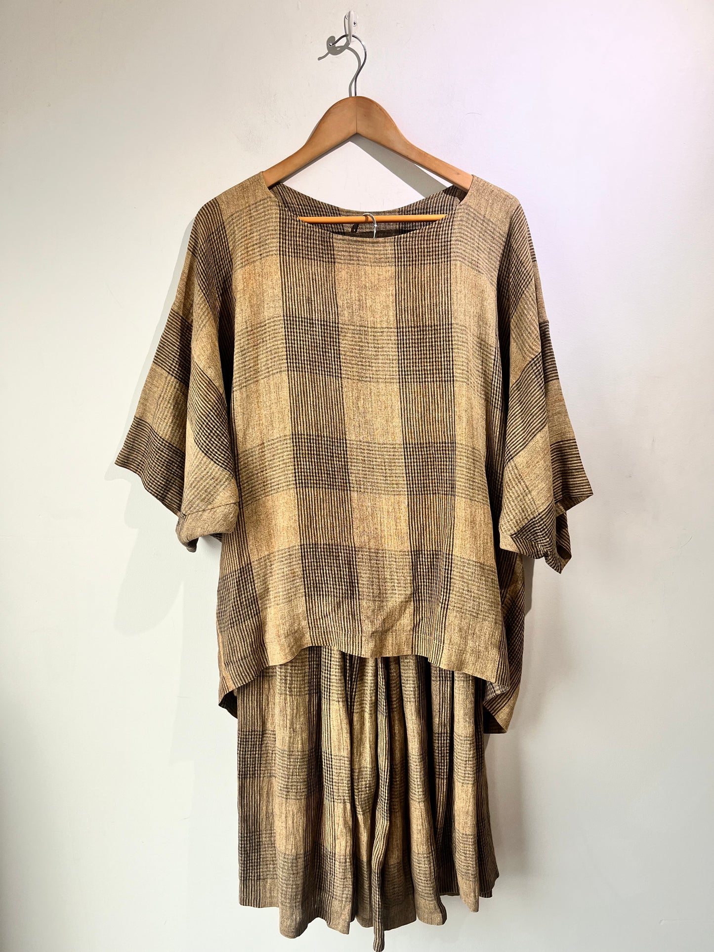 Vintage 1980s Issey Miyake Brown Plaid Linen 2 Piece Set
