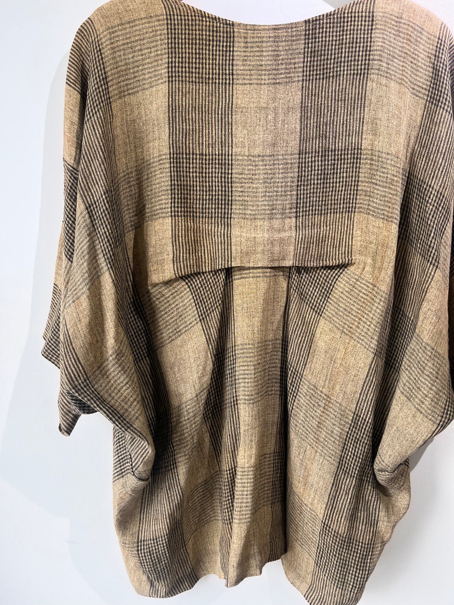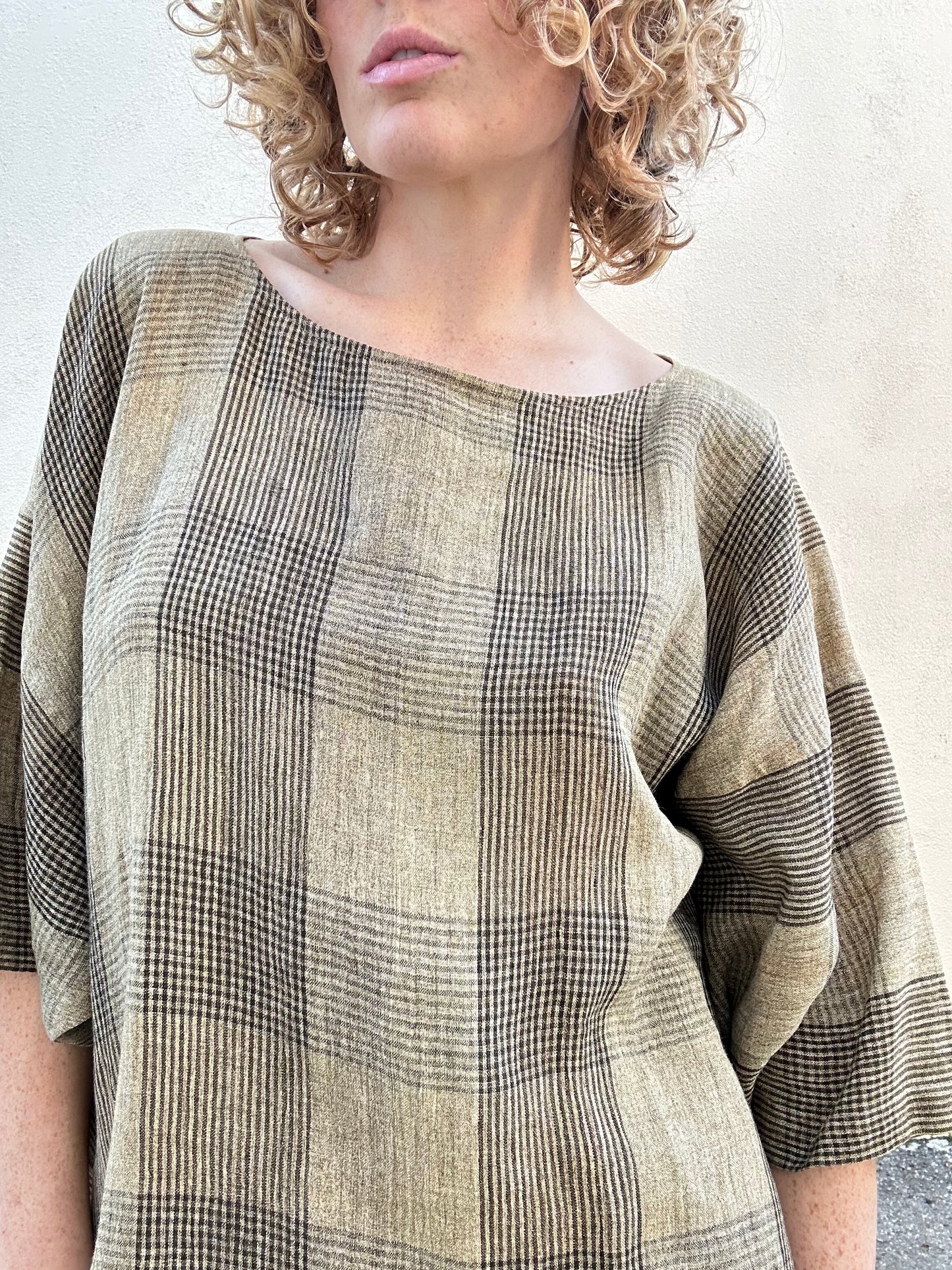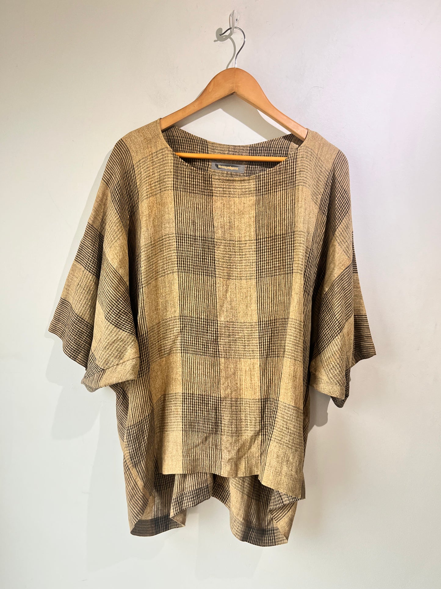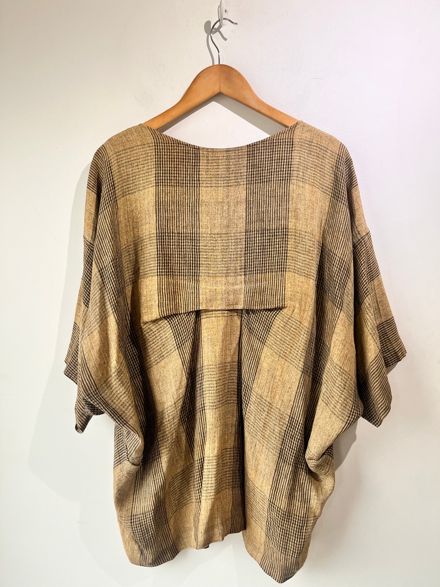 Vintage 1980s Issey Miyake Brown Plaid Linen 2 Piece Set