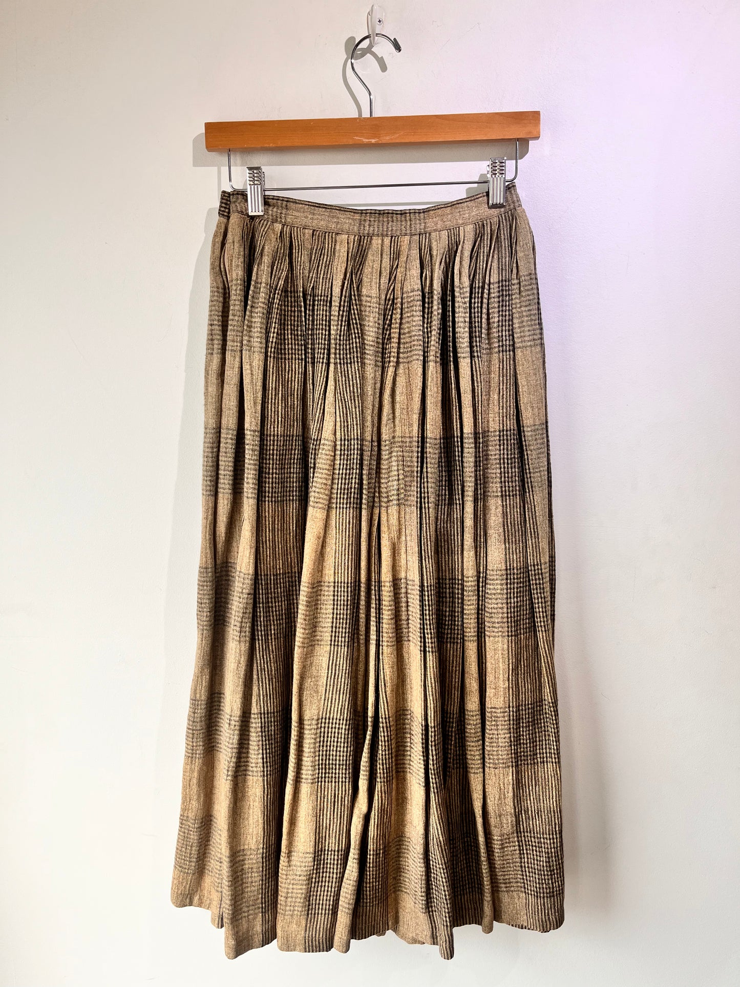 Vintage 1980s Issey Miyake Brown Plaid Linen 2 Piece Set. This classy, classic and chic 2-piece top and skirt set truly exemplifies everything that is fabulous and amazing when it comes to 1980s construction. The beautifully draped top features a boat neckline and such a graceful rear vent. The skirt has a gathered waist and side zip with button closure. And yes, IT HAS POCKETS!!! Worn together or as separates, the stylish styling possibilities are endless! In excellent condition.