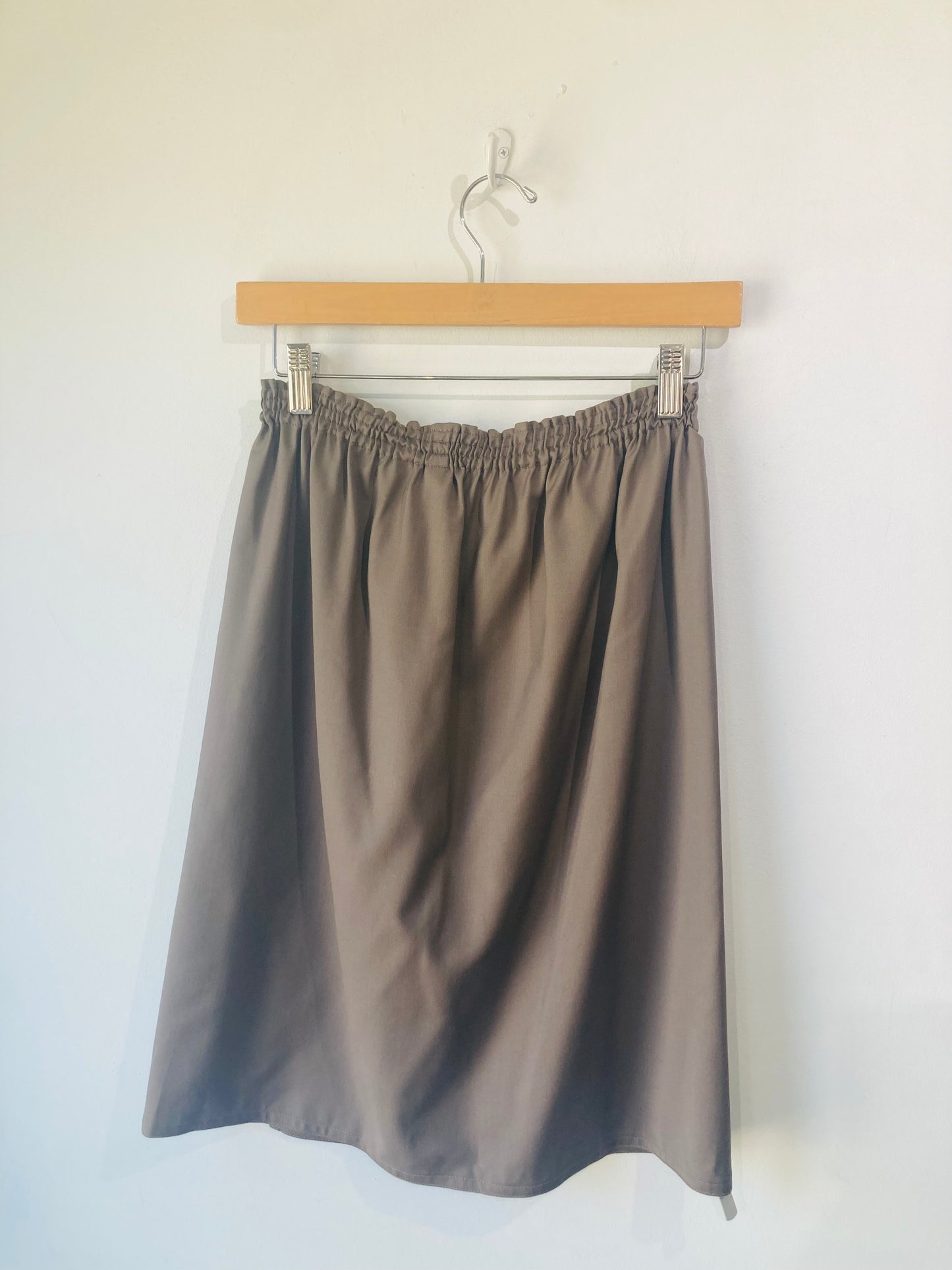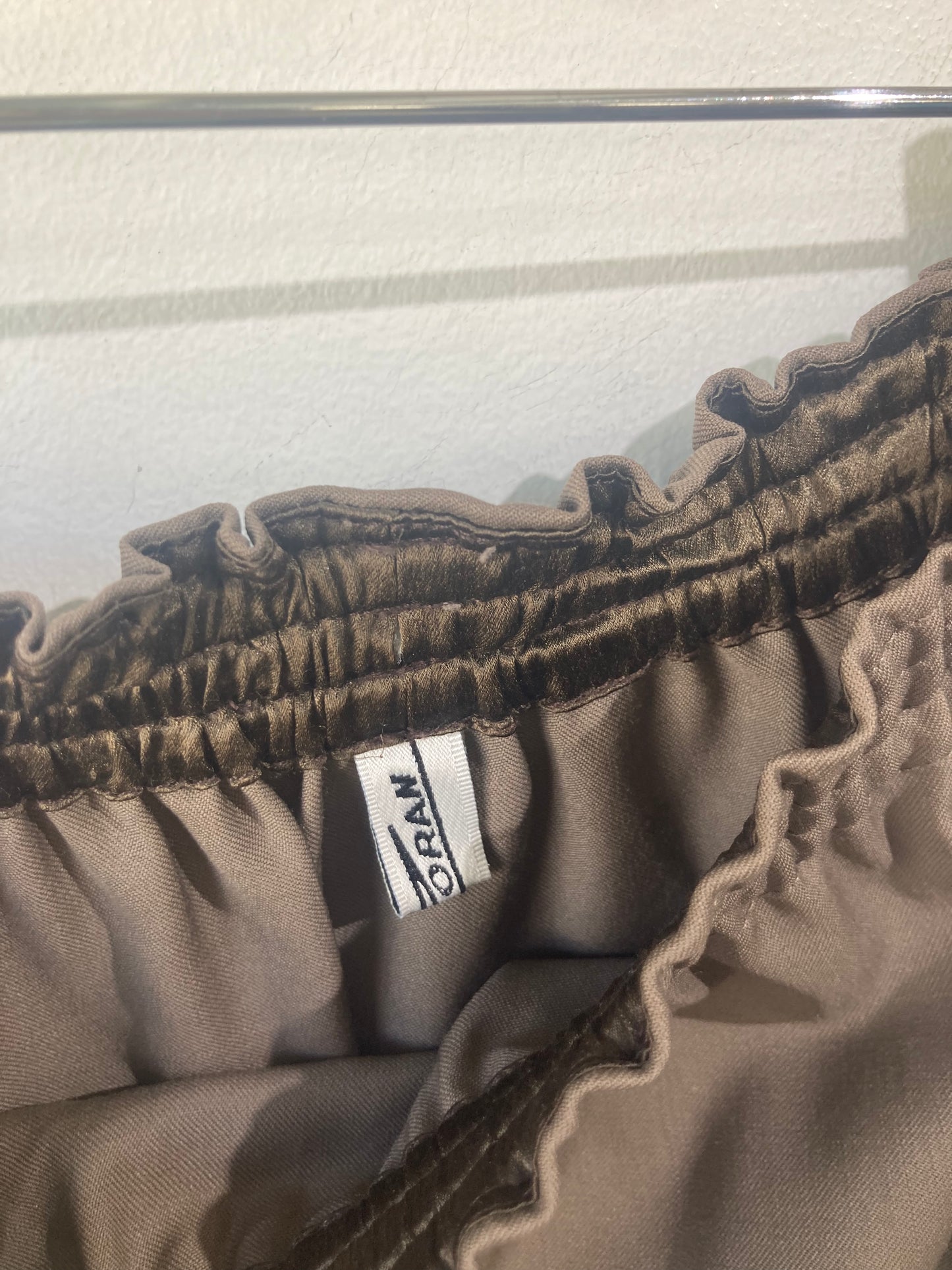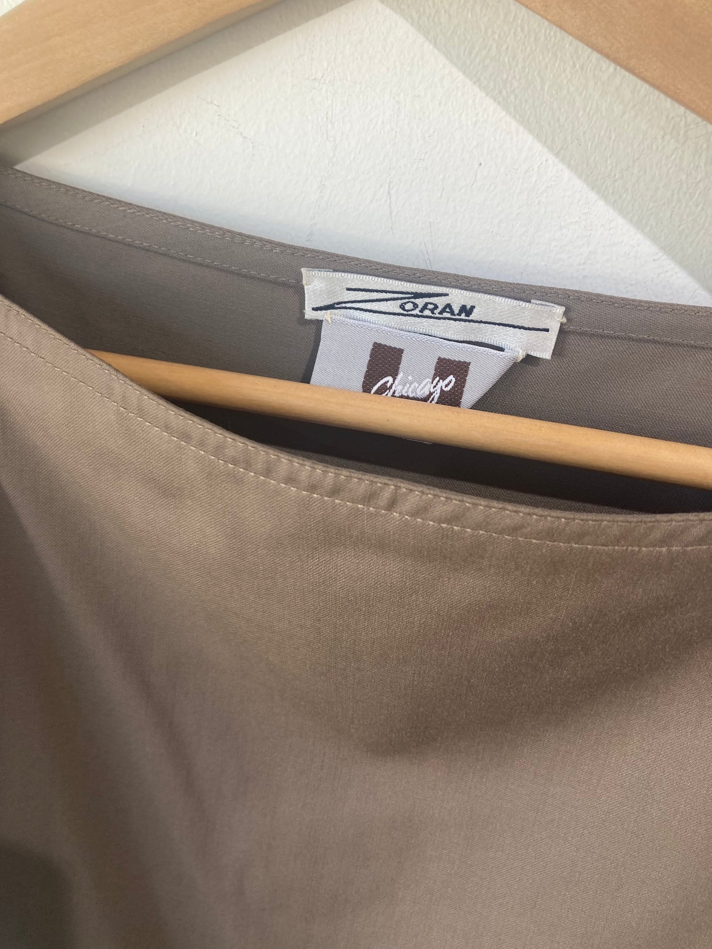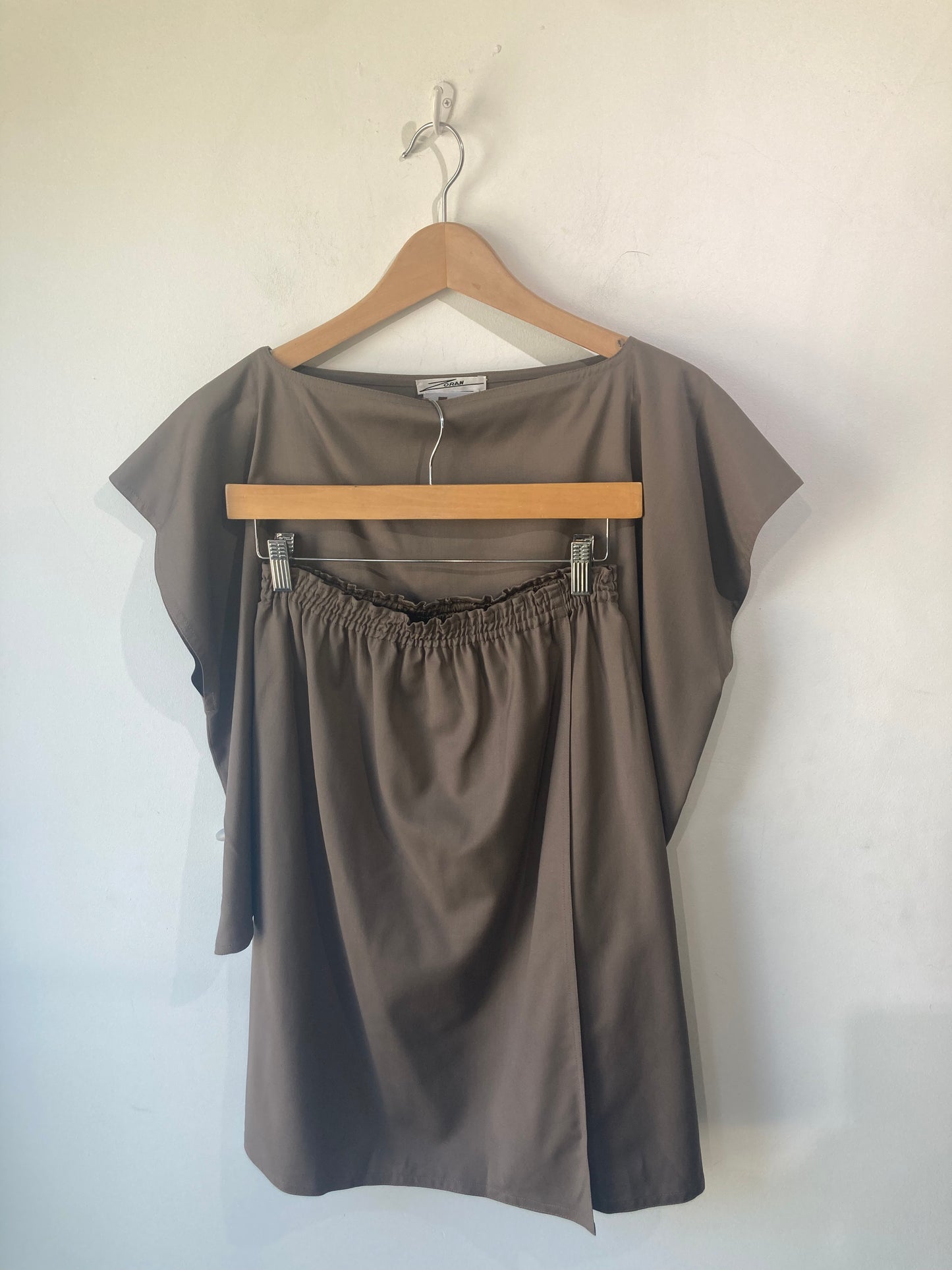 Zoran "Chicago'" Brown Short Sleeve Top and Skirt Set in excellent condition. Fits S/M best - Boxy shirt fit with midi wrapped skirt. Sporty, fresh and modern look. Unknown material, feels like woven synthetic blend. Dry clean.