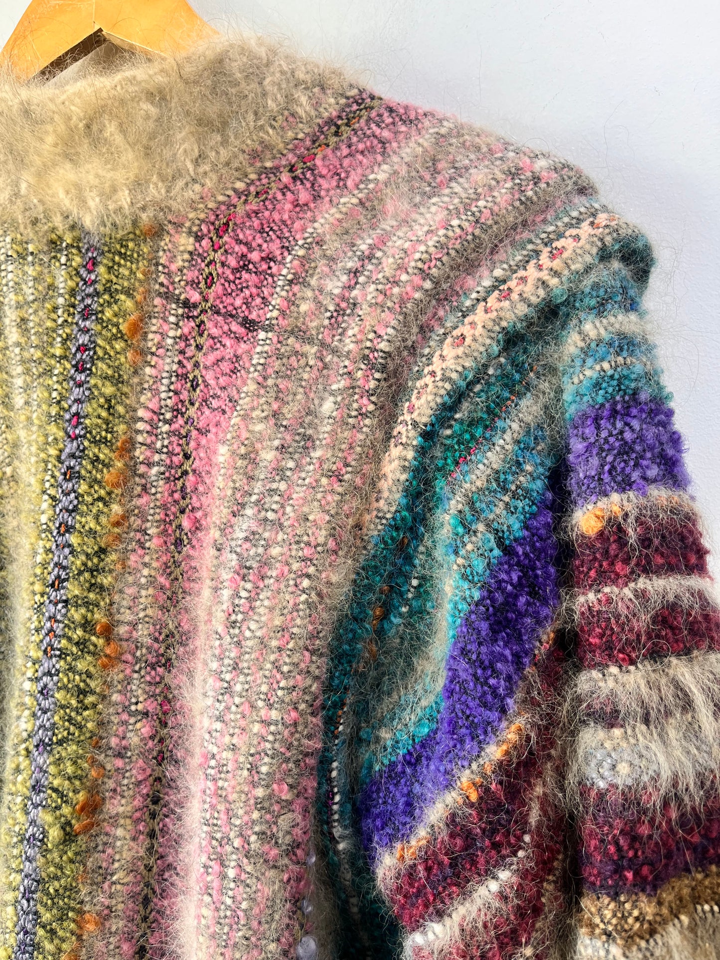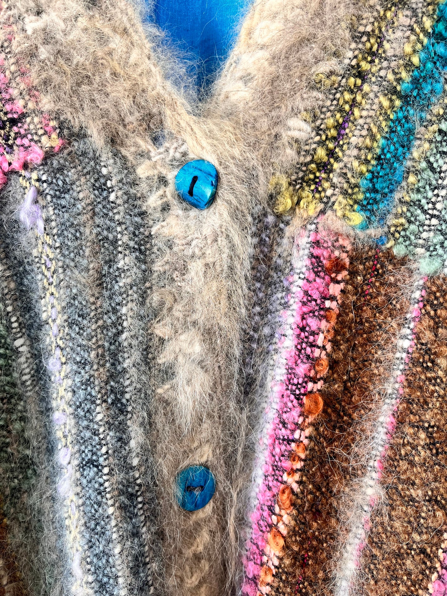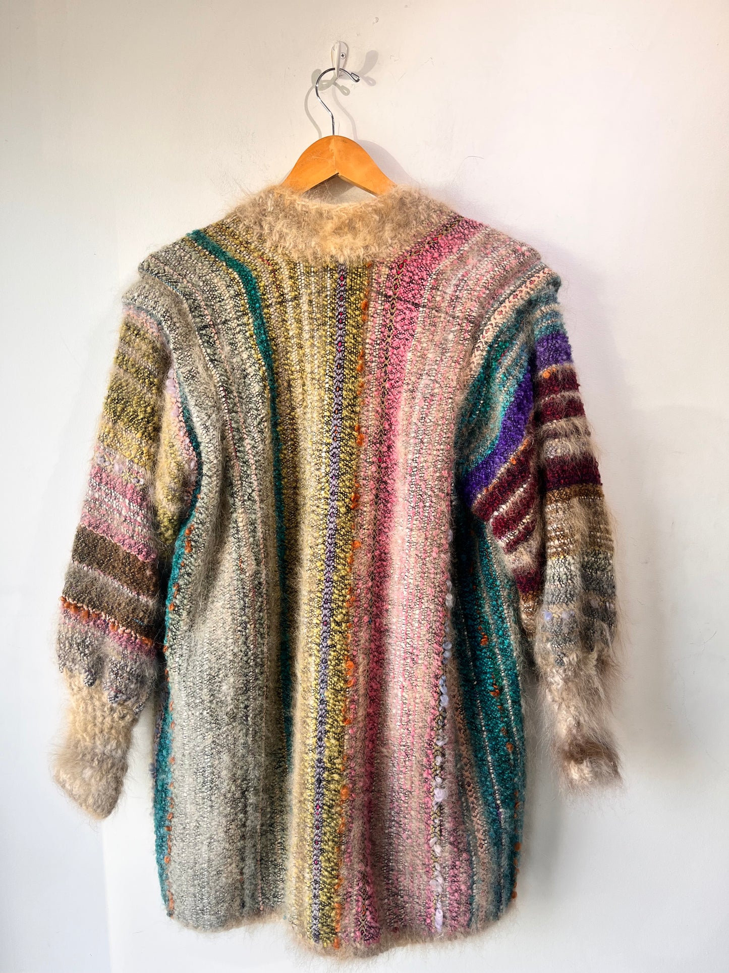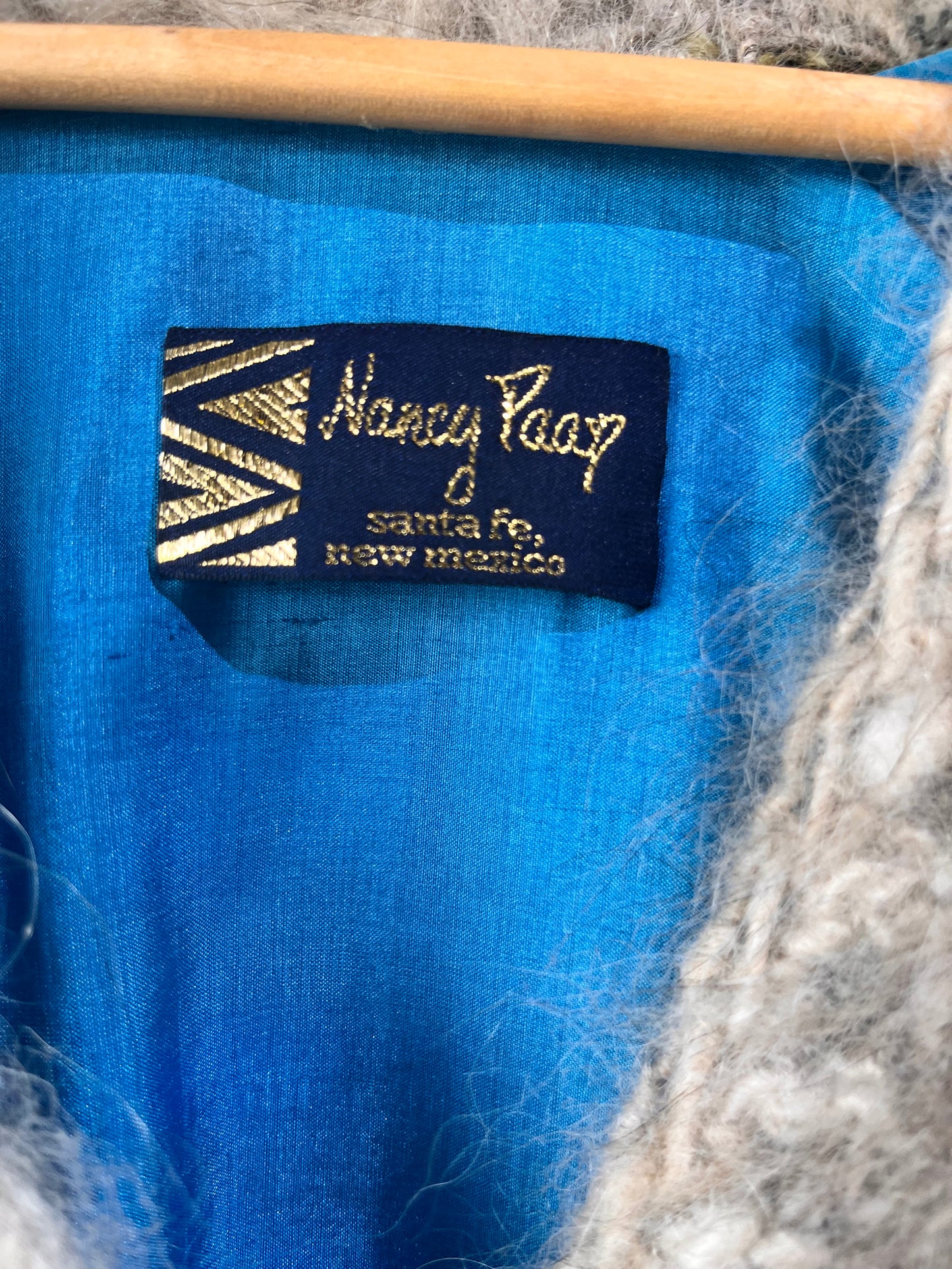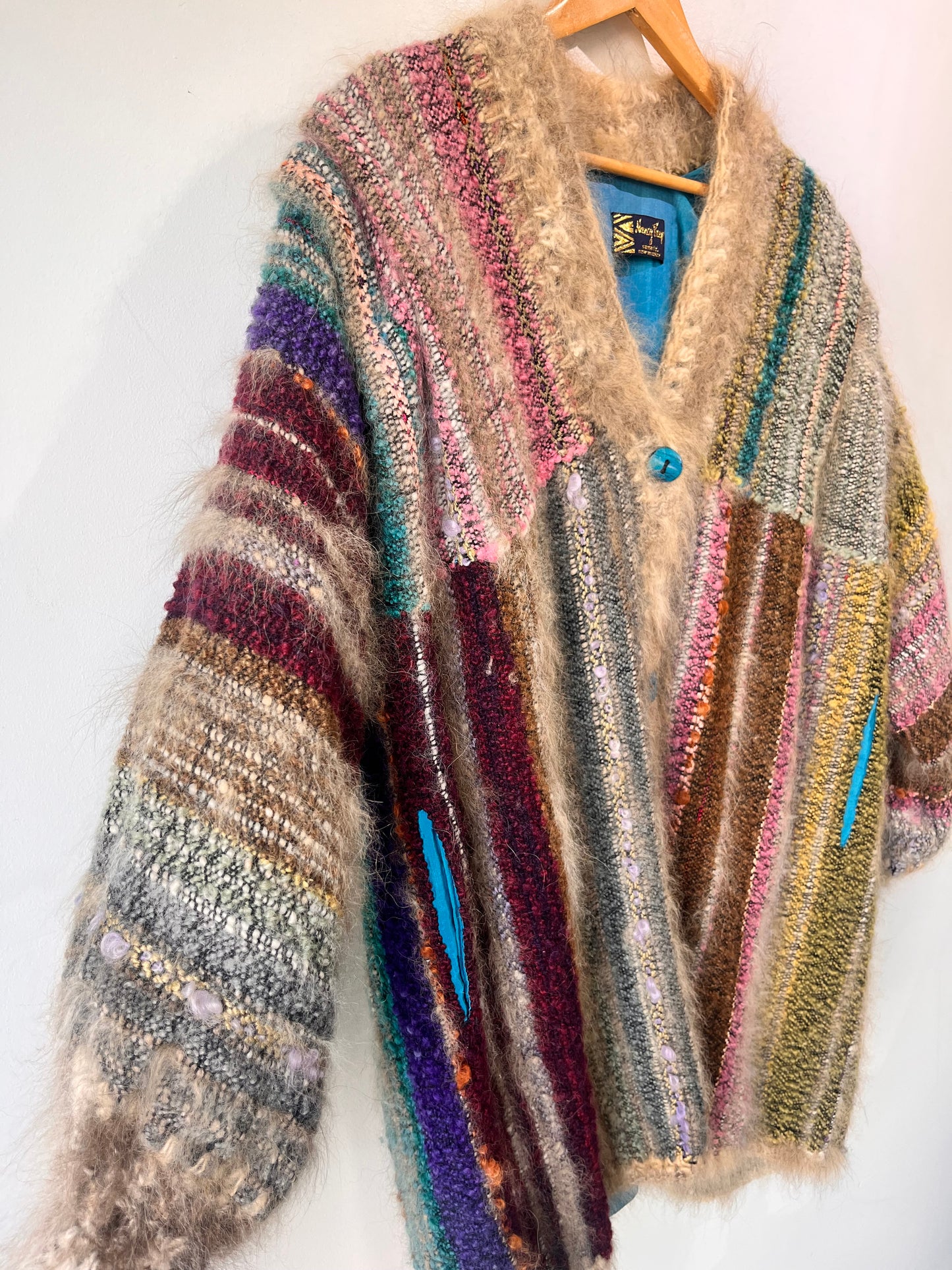 Nancy Paap Colorful Long Fiber Arts Sweater with Turquoise Lining