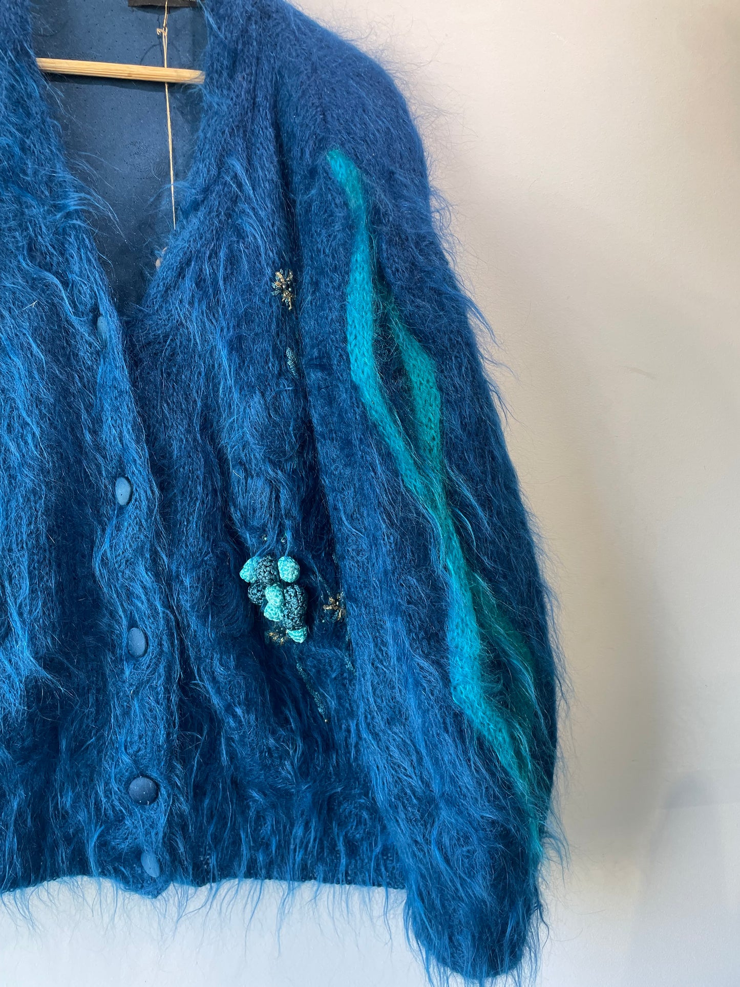 Vintage Alain Murati Ocean Blue Fuzzy Sweater Cardigan - The Curatorial Dept.