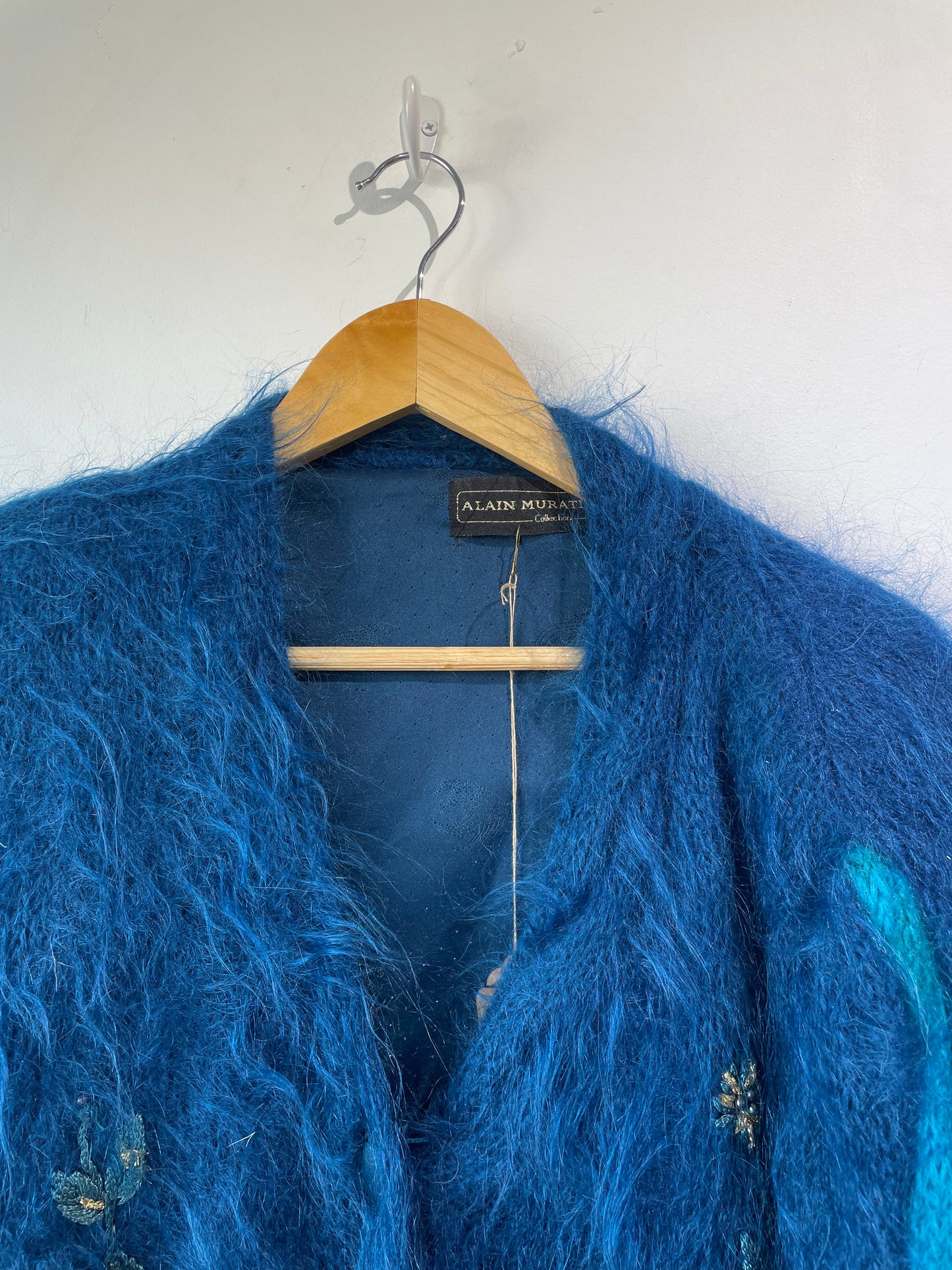 Vintage Alain Murati Ocean Blue Fuzzy Sweater Cardigan
