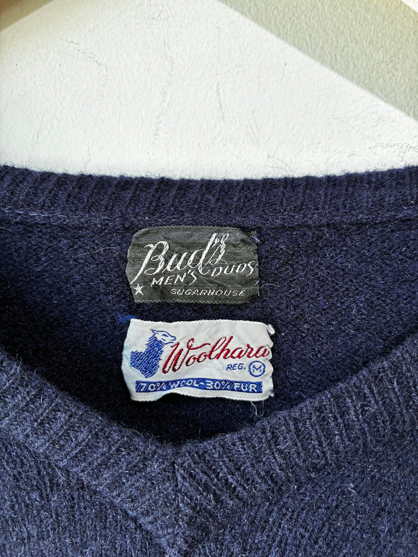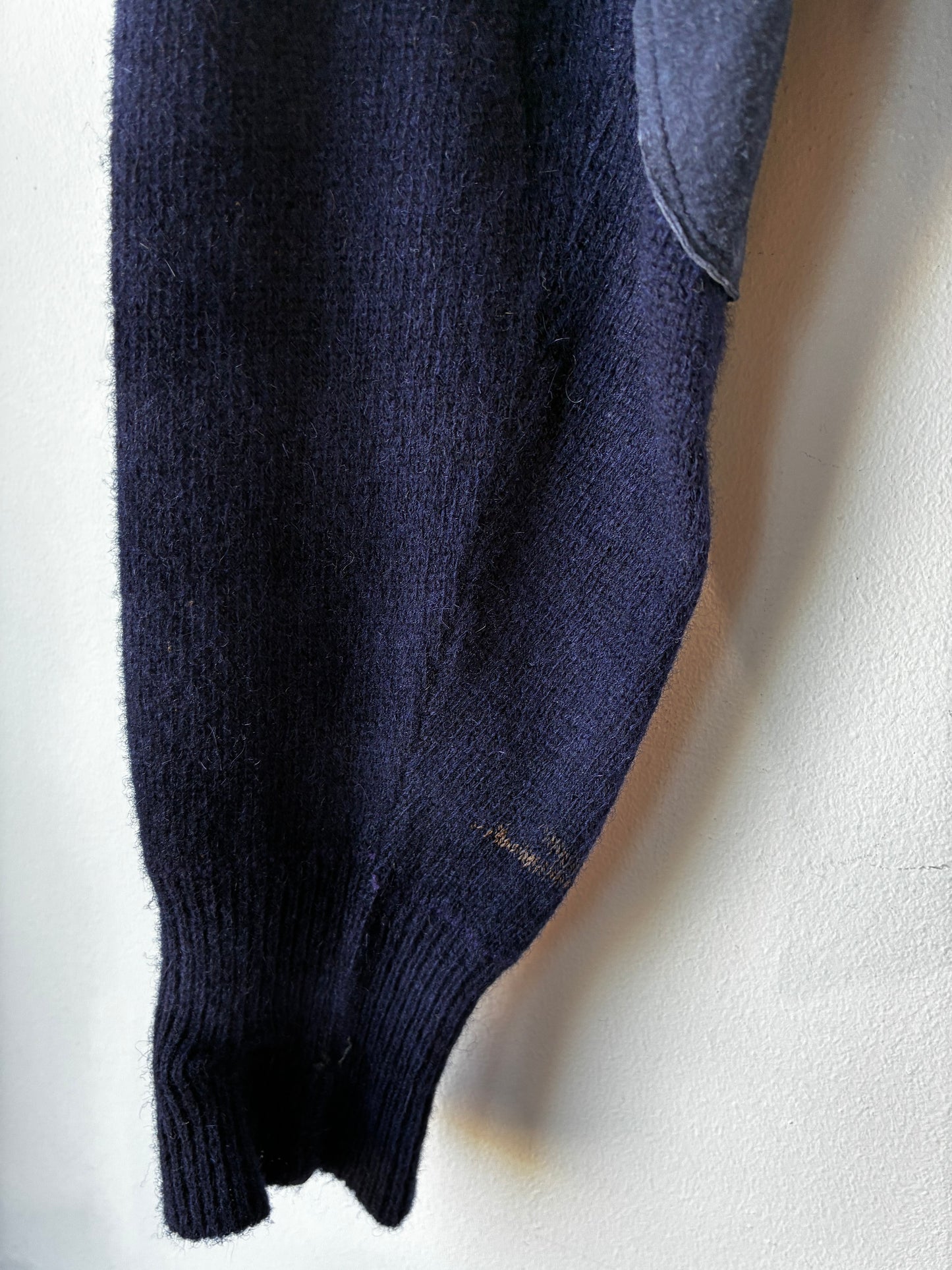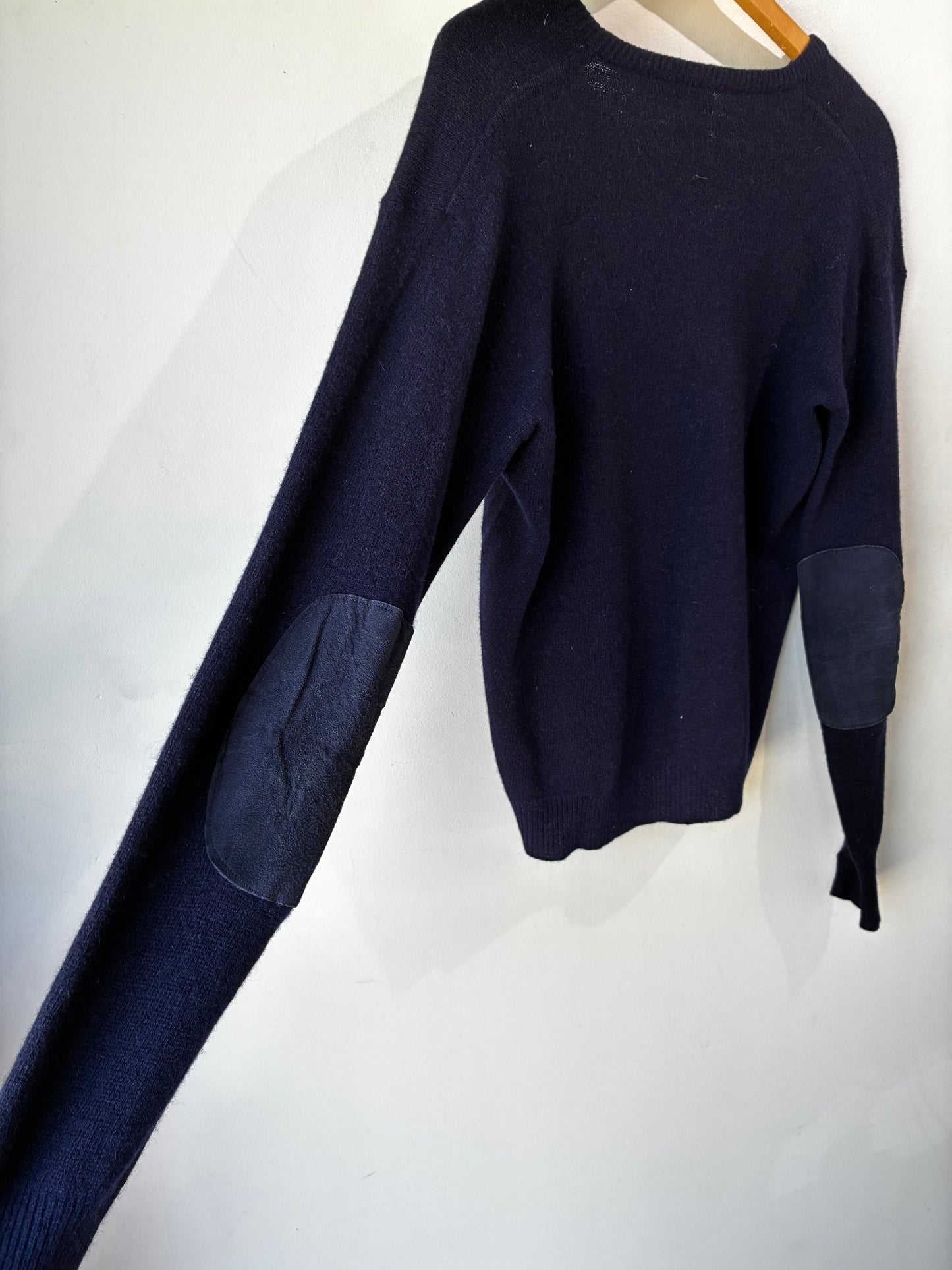 Vintage Bud's Woolhara Navy V-Neck Sweater with Elbow Patches