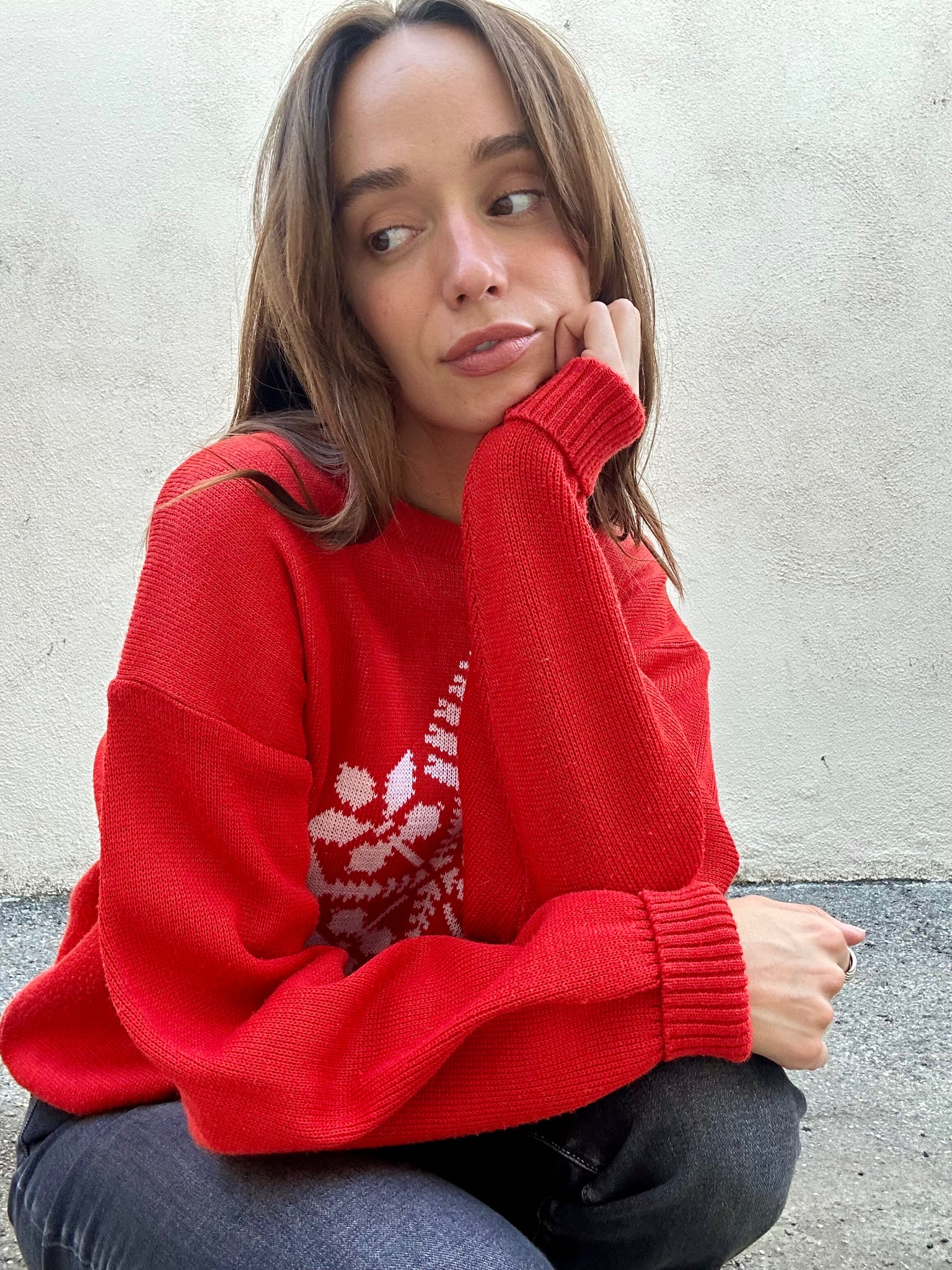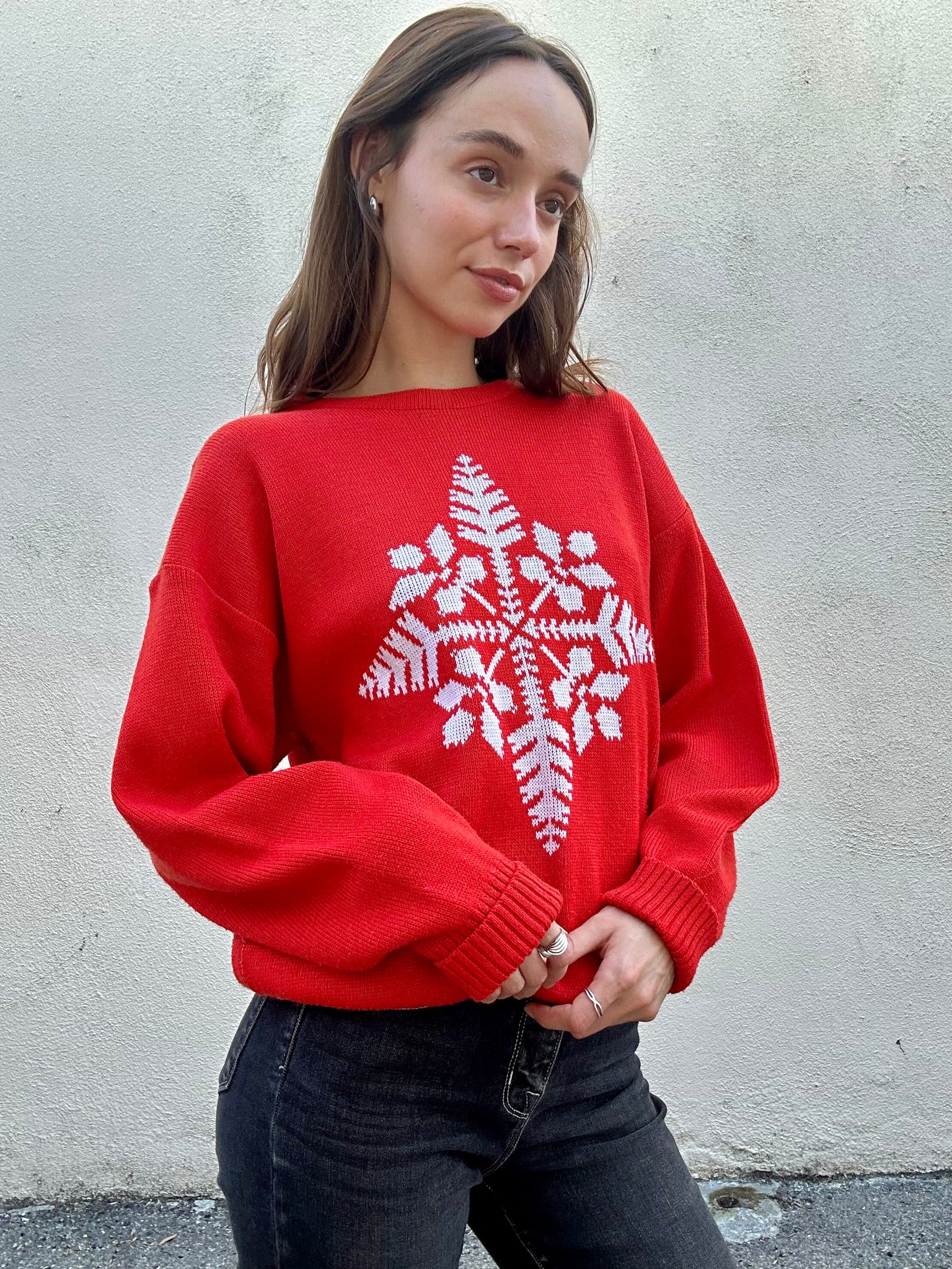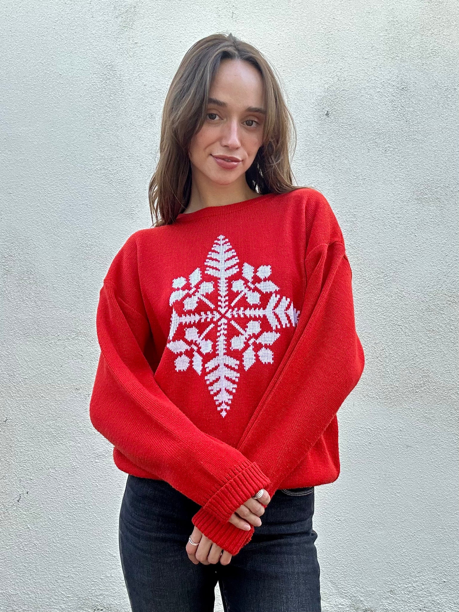 Vintage Meister Red Acrylic Snowflake Sweater. Super fun and festive holiday sweater in bright red with a large snowflake on the front. 100% acrylic. Made in Hong Kong. Unmarked size, best fits a M/L. In excellent vintage condition.
