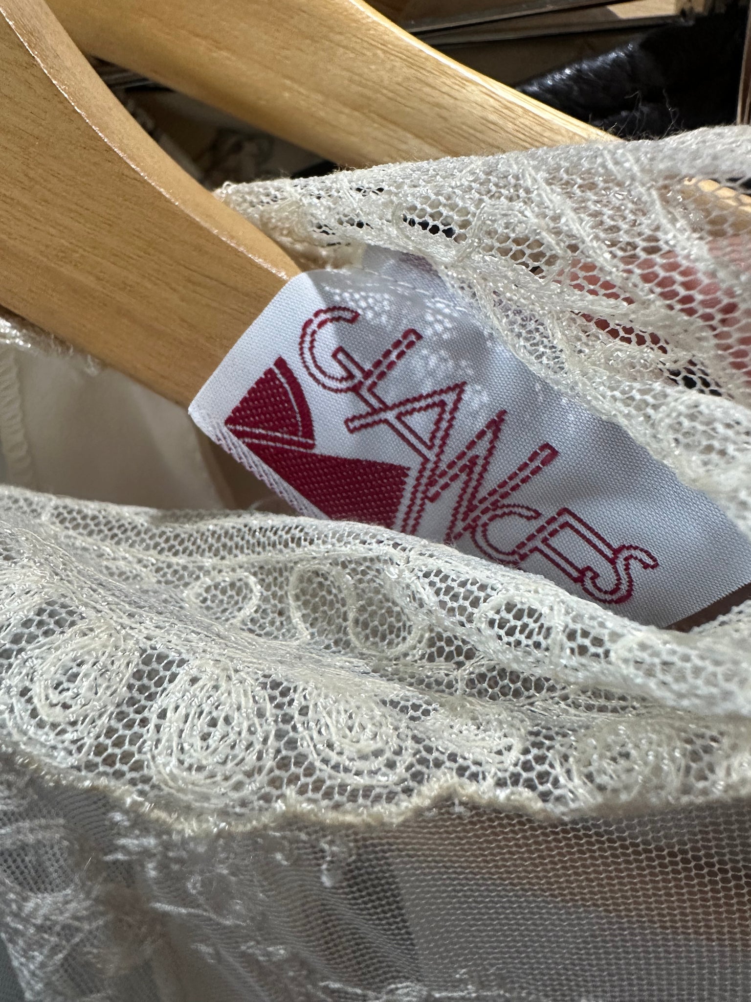 Where to even start with this gorgeous top by Glances. Let's work our way down, starting with the perfect crochet lacy collar, followed by the sheer mesh panel with a delicate lace floral design. The elegant long sleeves have a slight puff shoulder and more intricate lace designs at the cuff. There's something about the button up back that makes this top all the more romantic. There's no fabric tag, but it feels like rayon or something similar.