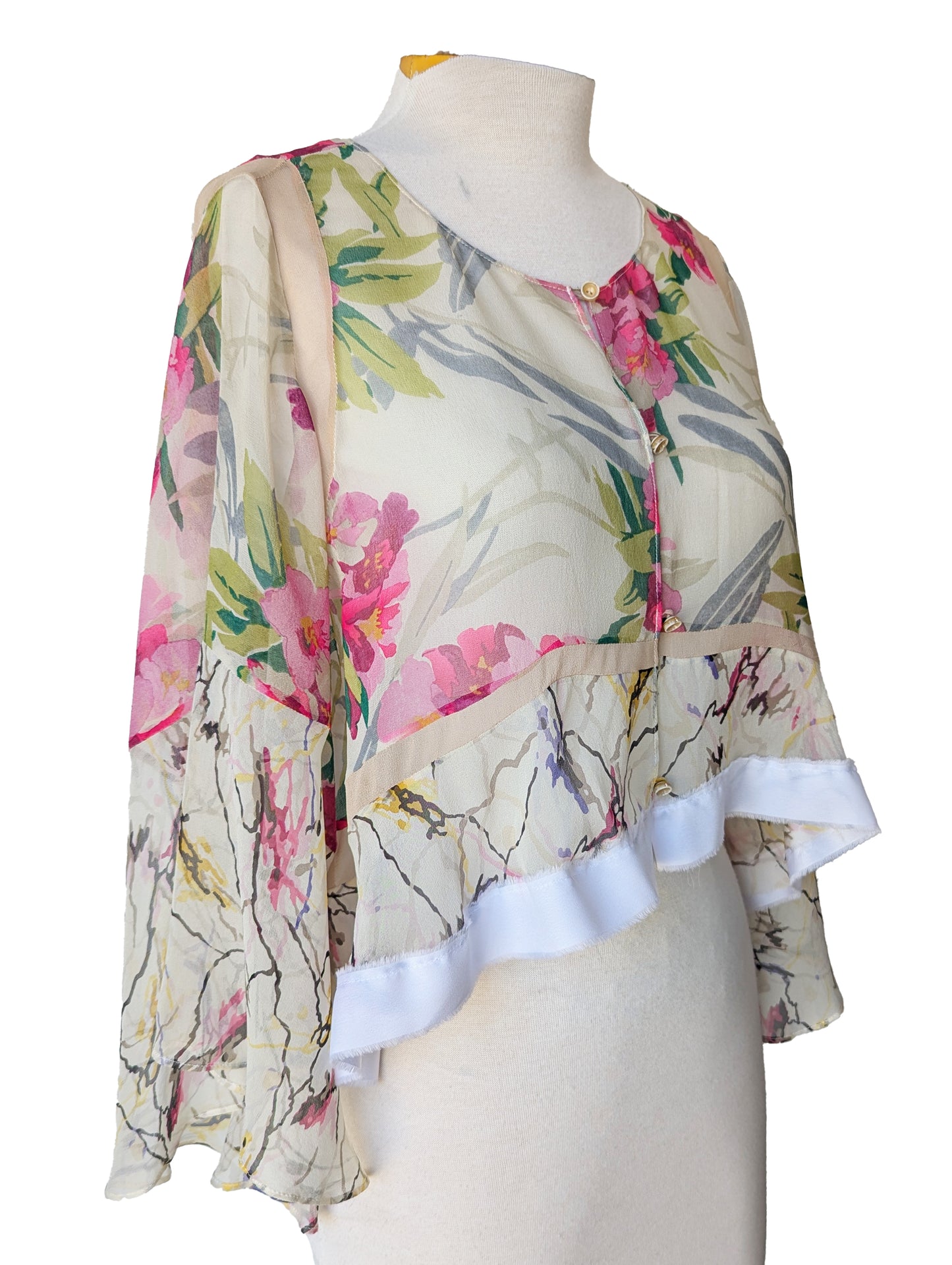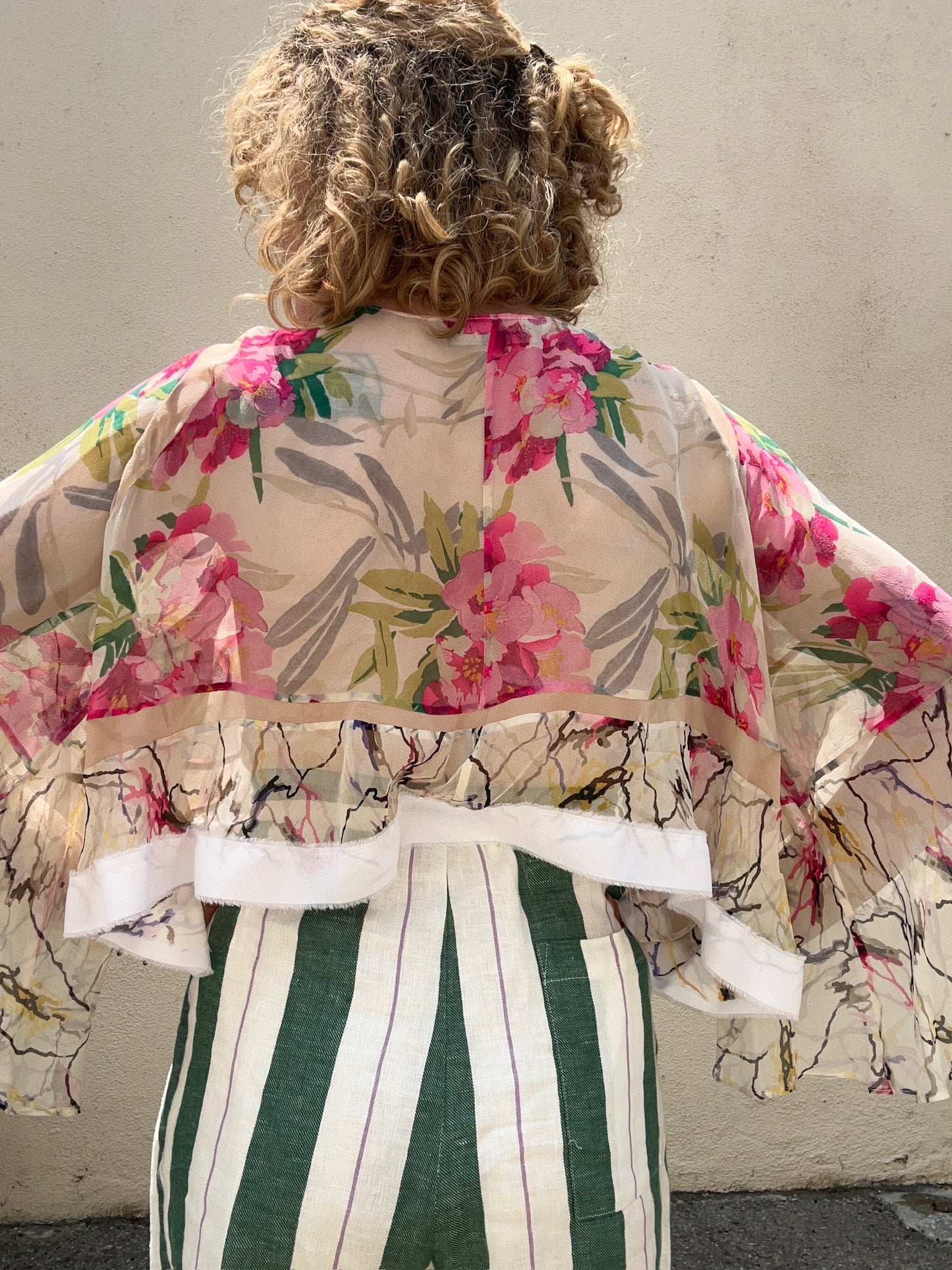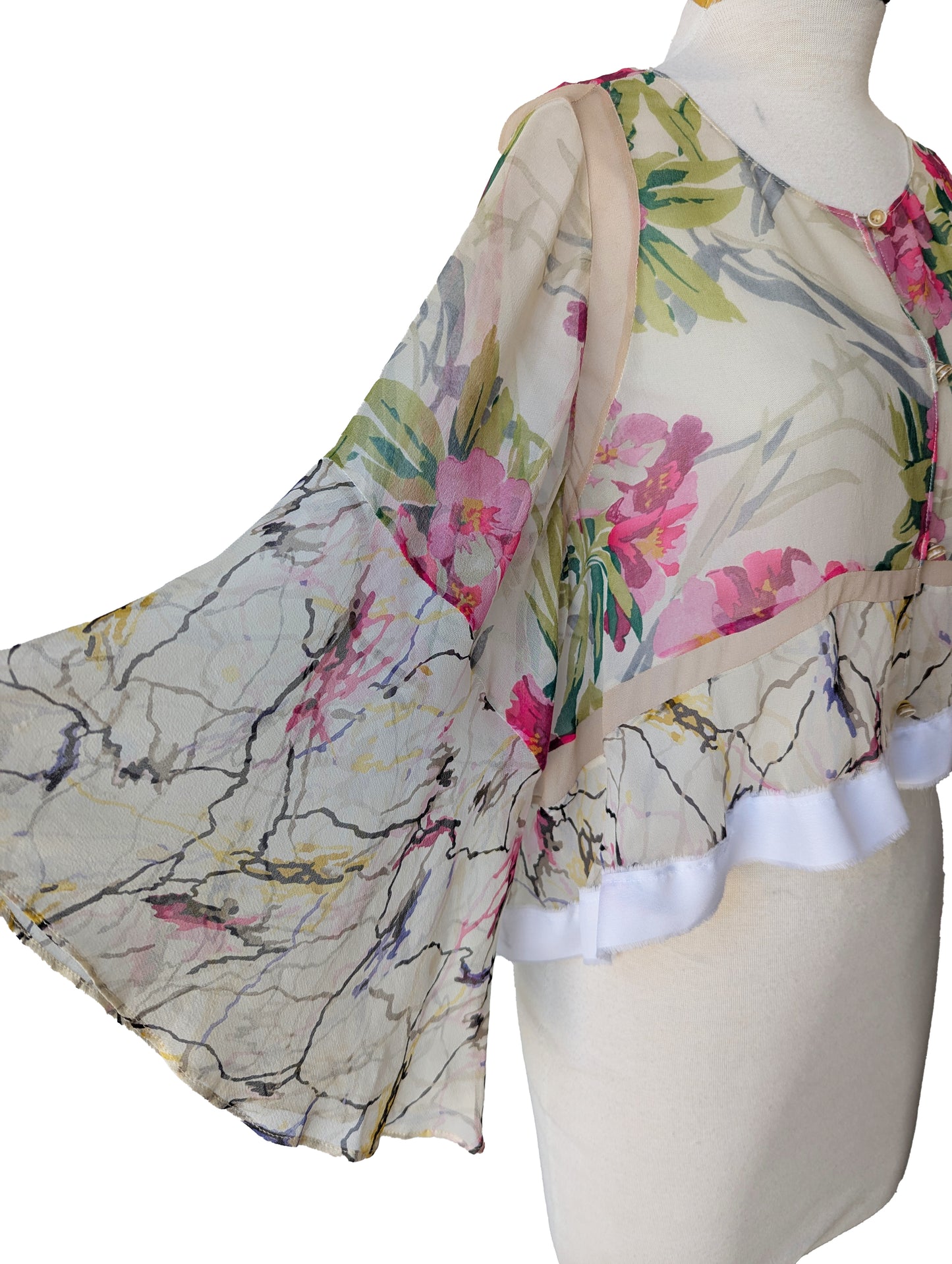Elizabeth and James Cream and Pink Floral Silk Jacket Top -- sheer drama, minus the weight.