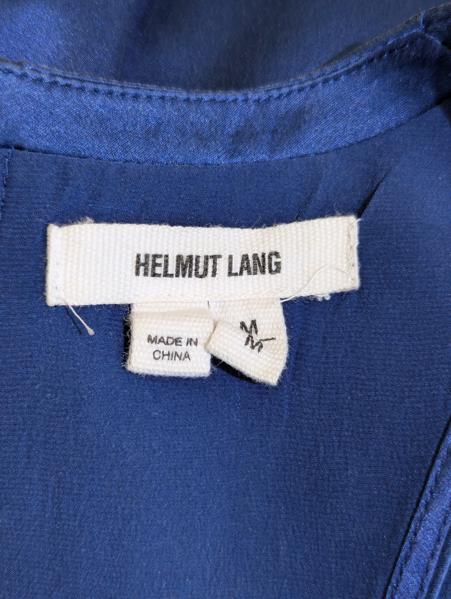 Channel your inner Greek goddess in this Helmut Lang silk top. Liquid charmeuse and a tunic-style cut nod to classical chiton shapes, while the layered front panel and long side slits create fluid, modern movement. A clean neckline, rounded hem corners, and exposed back zipper with a long leather pull keep the look sharp. It’s part sculpture, part draped poetry, and yes, there’s a touch of discoloration, but consider it the kind of patina any true artifact earns over time. Top is sold as-is and has some minor discolorations (pictured).