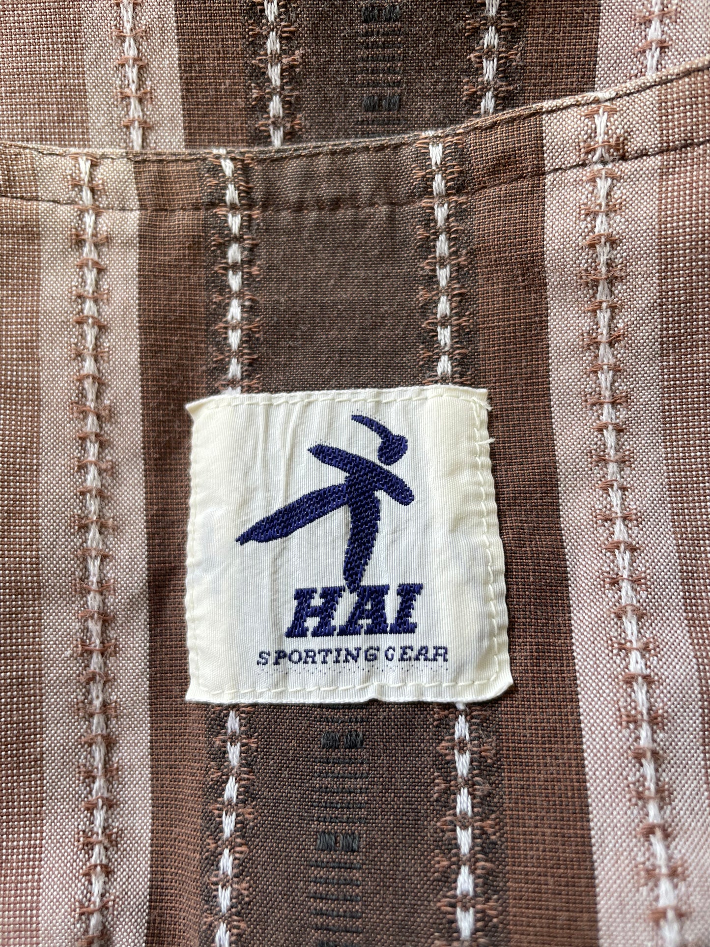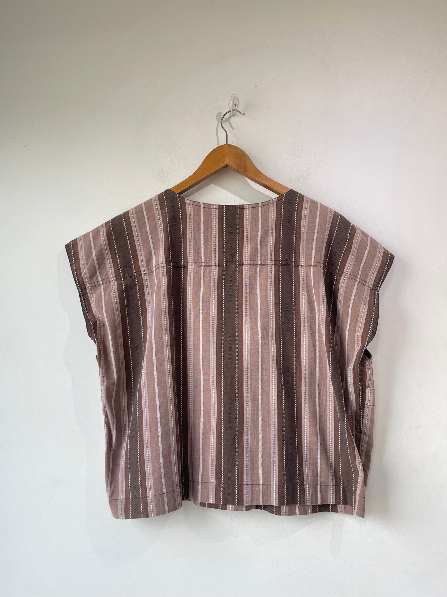 Issey Miyake Hai Brown Stripe Cotton Sleeveless Top