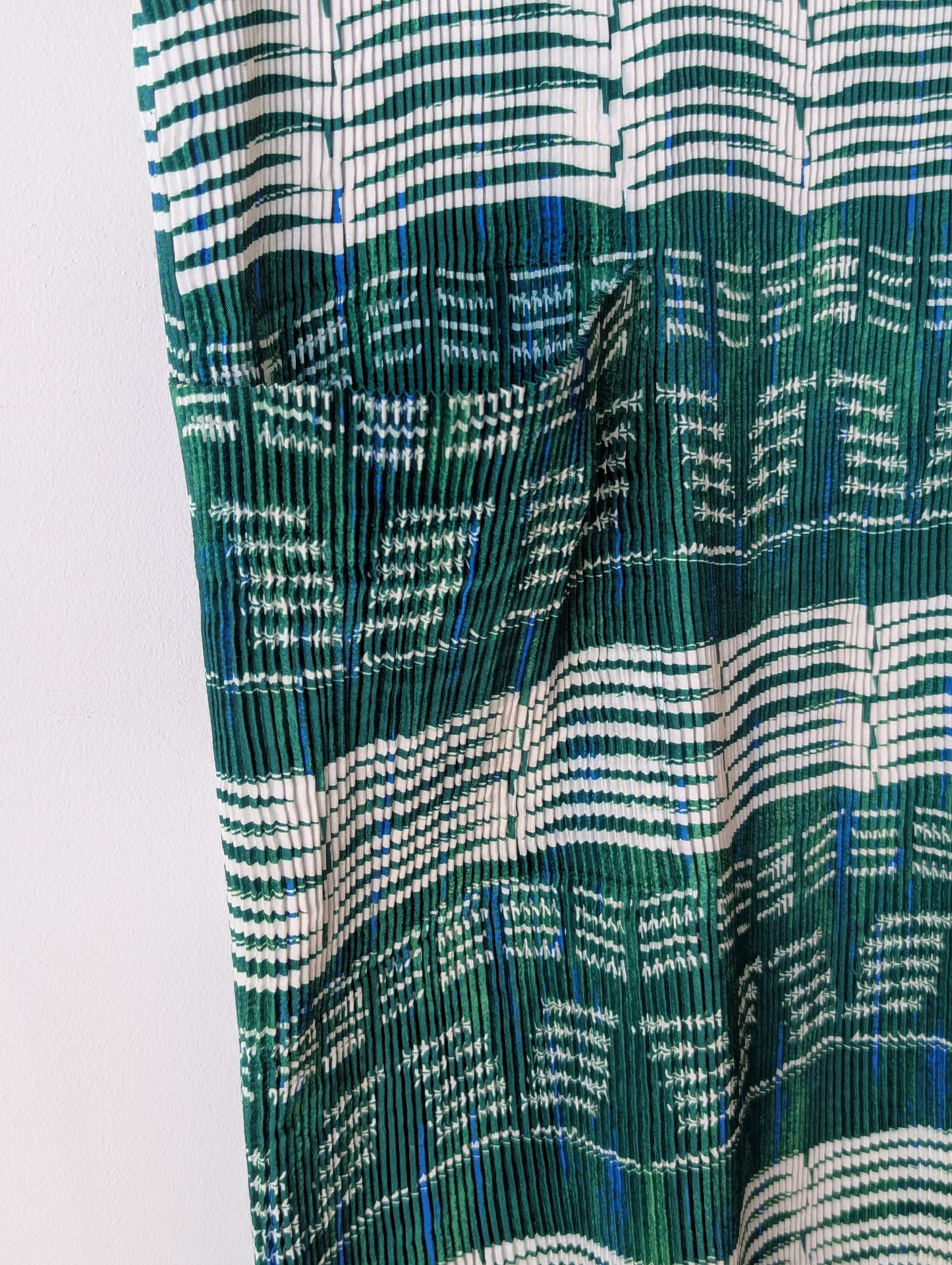 Issey Miyake IM Product Green and White Accordion-Pleated Long Vest