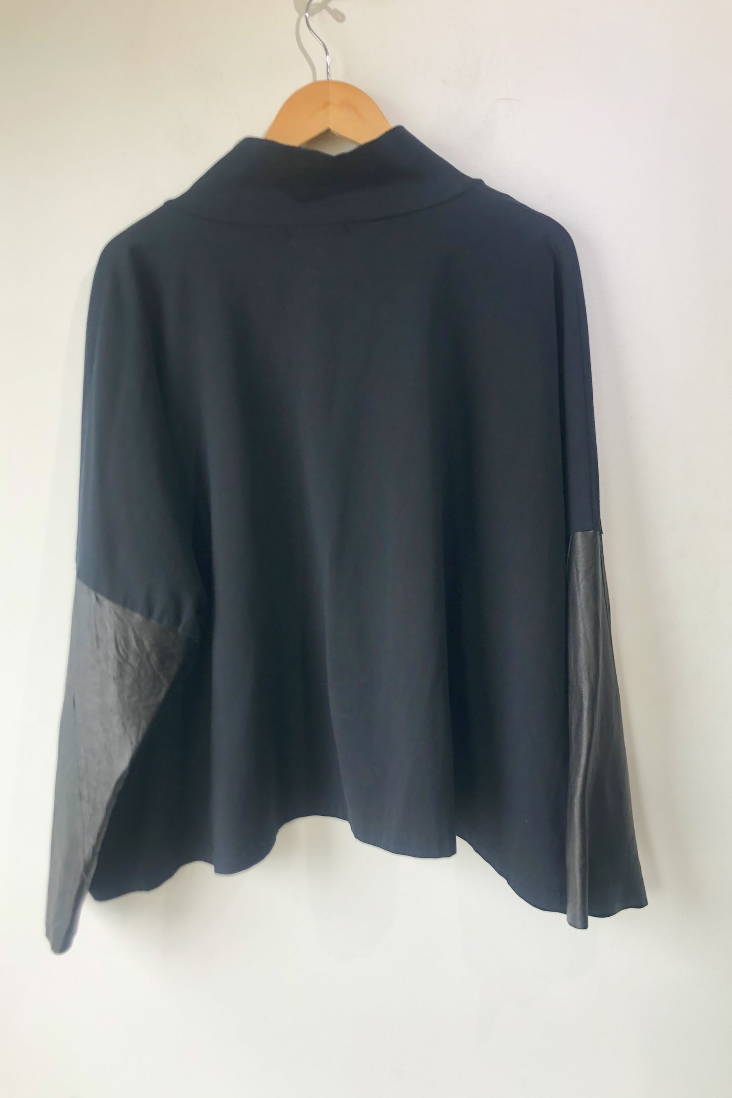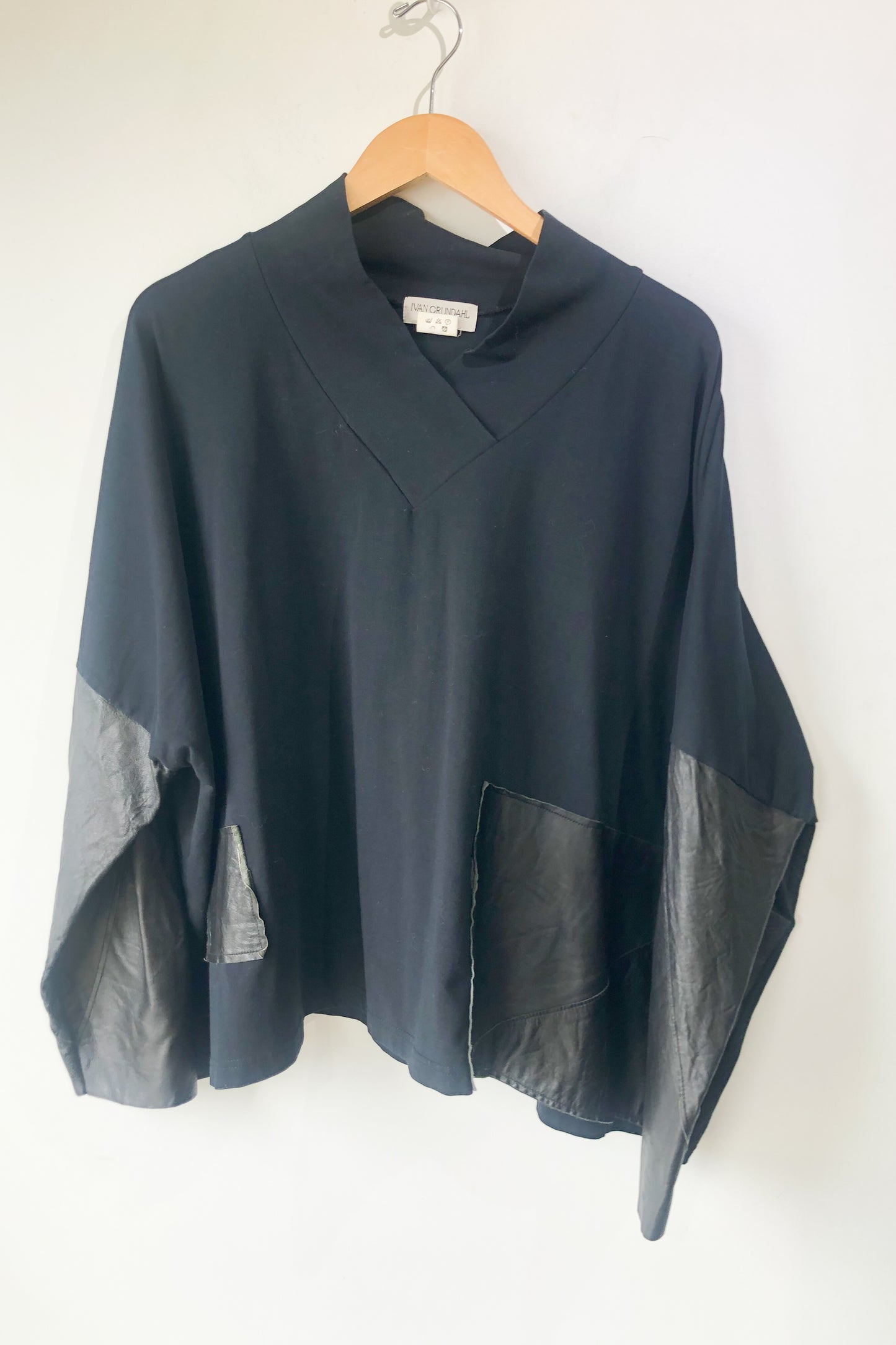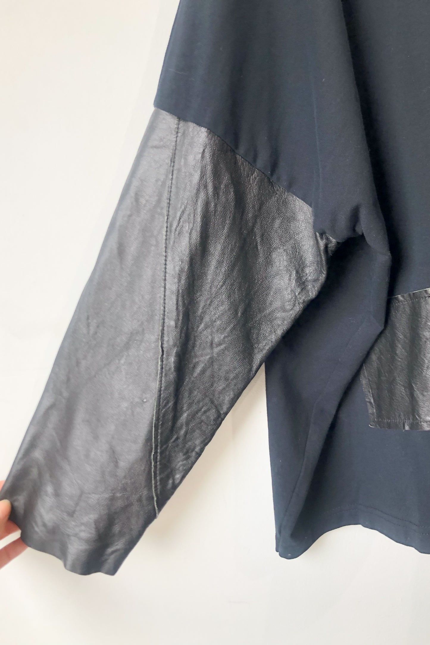Ivan Grundahl Black Leather Mix Top. Great condition. Oversized black knit with v-neckline and leather sleeves. 90% Cotton 10% Elastane. Marked as size S. Made in Portugal.