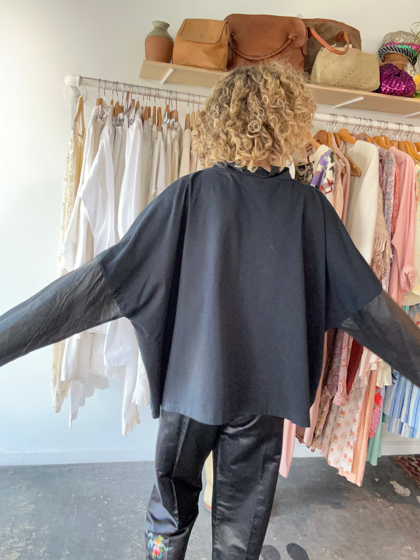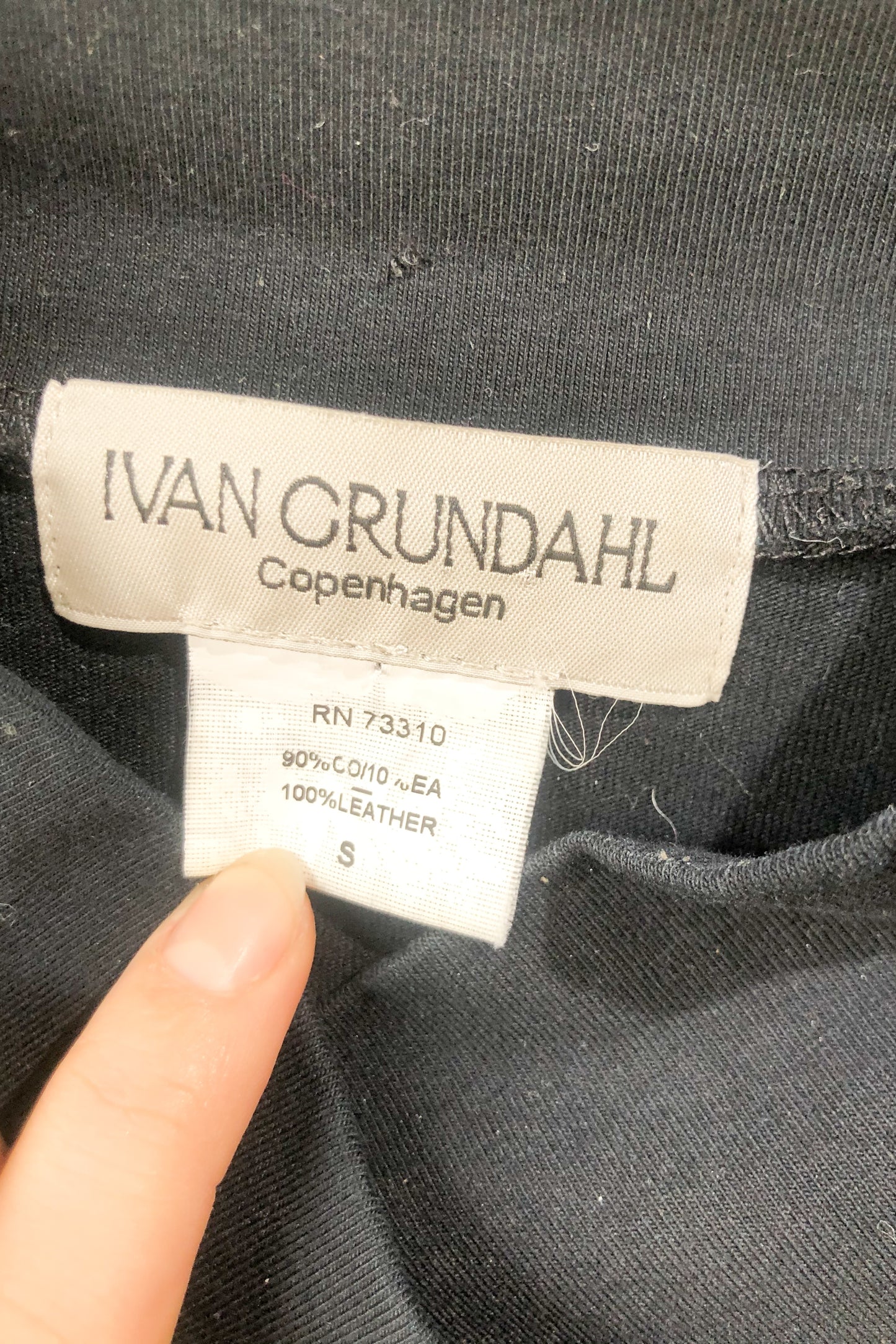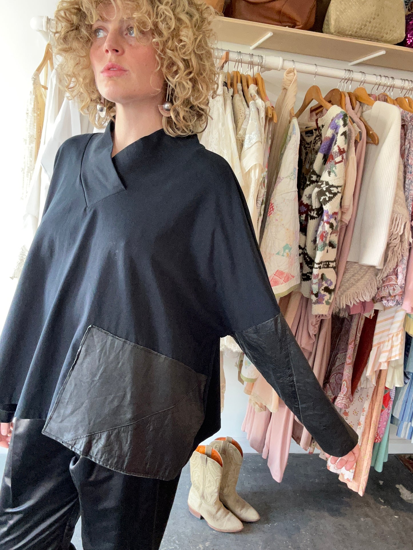 Ivan Grundahl Black Leather Mix Top. Great condition. Oversized black knit with v-neckline and leather sleeves. 90% Cotton 10% Elastane. Marked as size S. Made in Portugal.