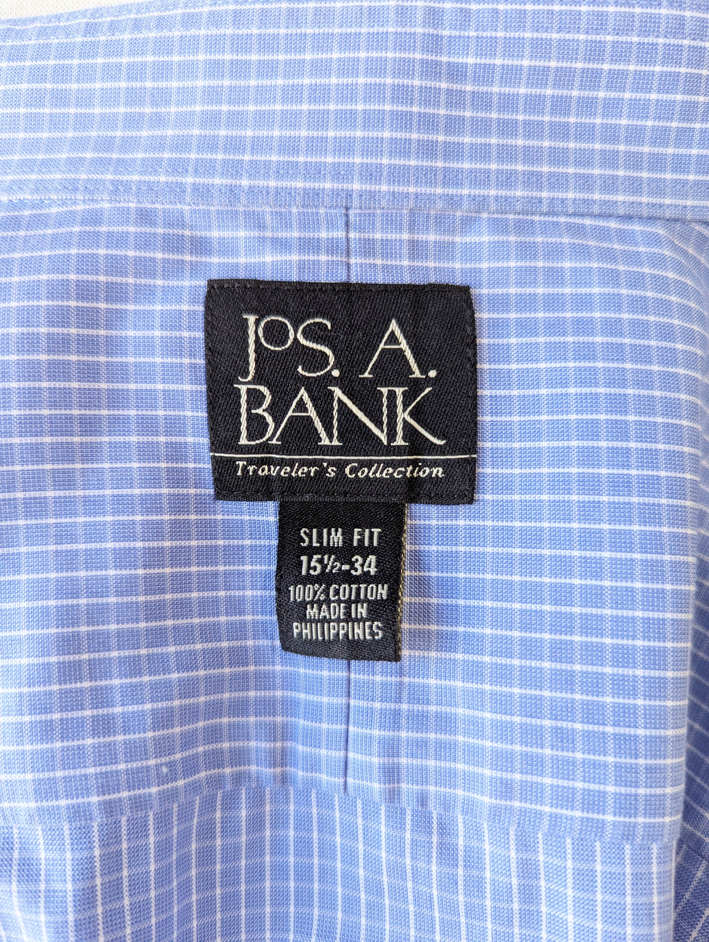 Jos. A. Bank Blue & White Grid Pattern Shirt with Lace Detail