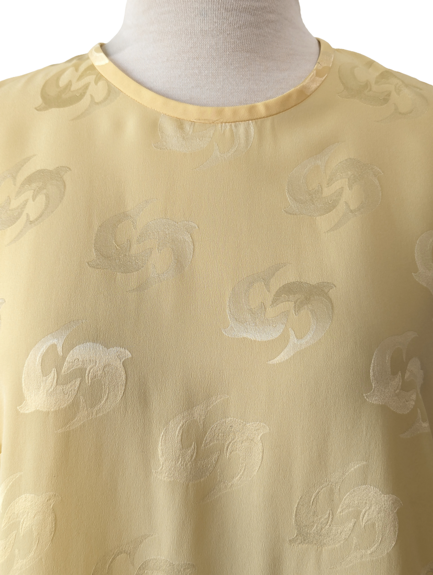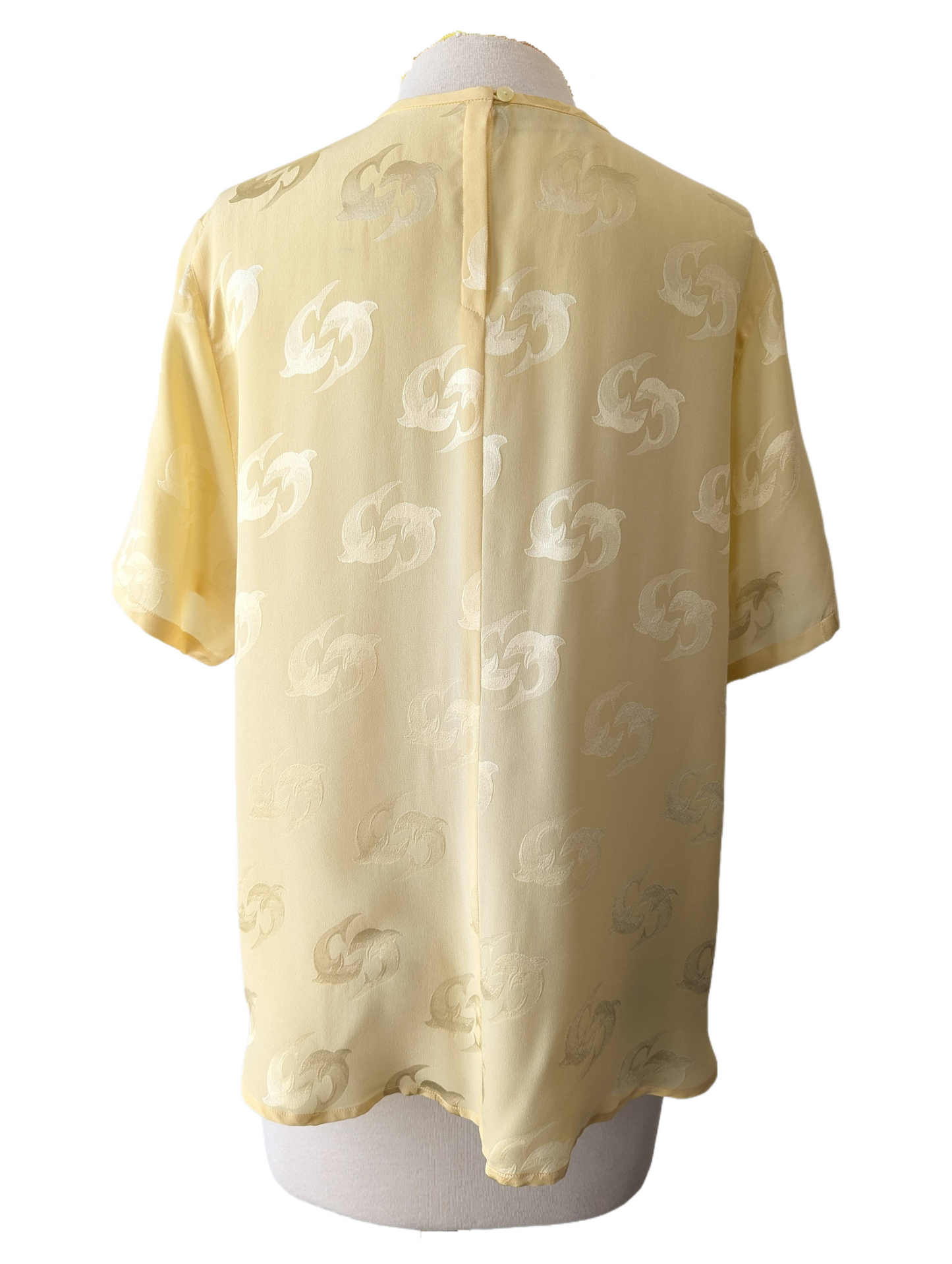 Louis Féraud Yellow Dolphin Jacquard Silk Top -- Luxurious Summer Fun.