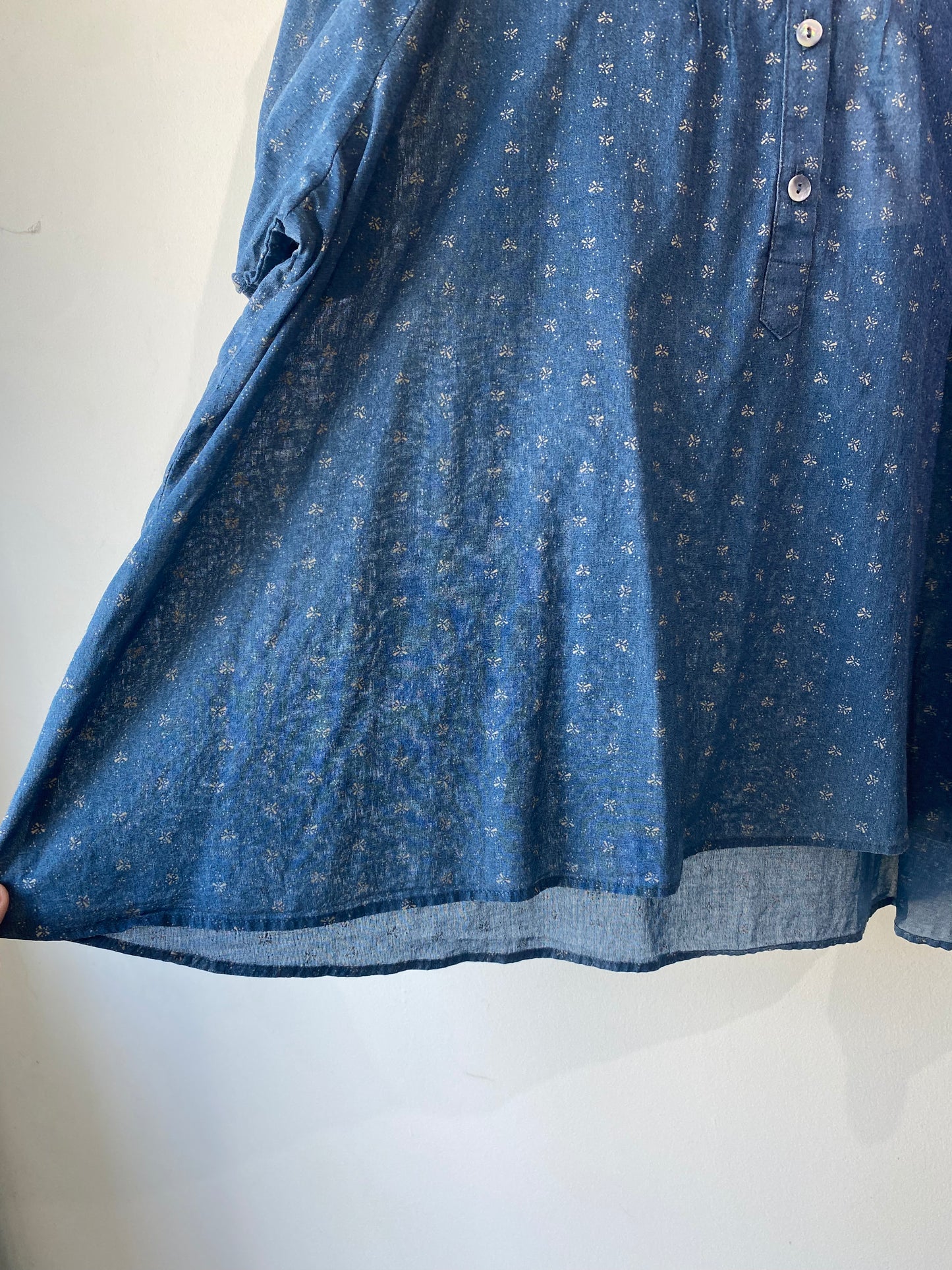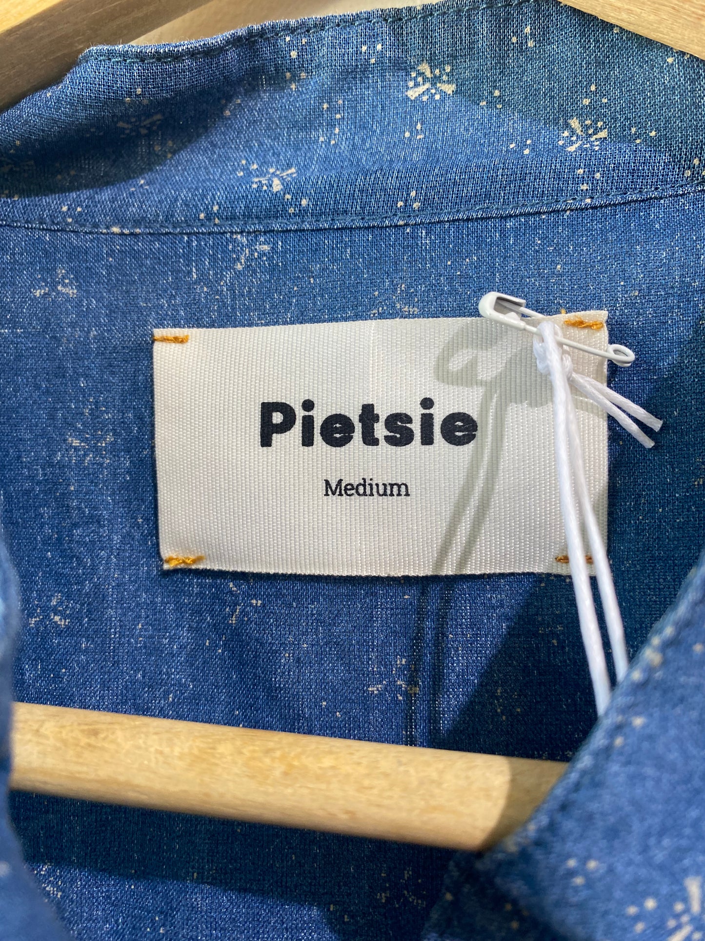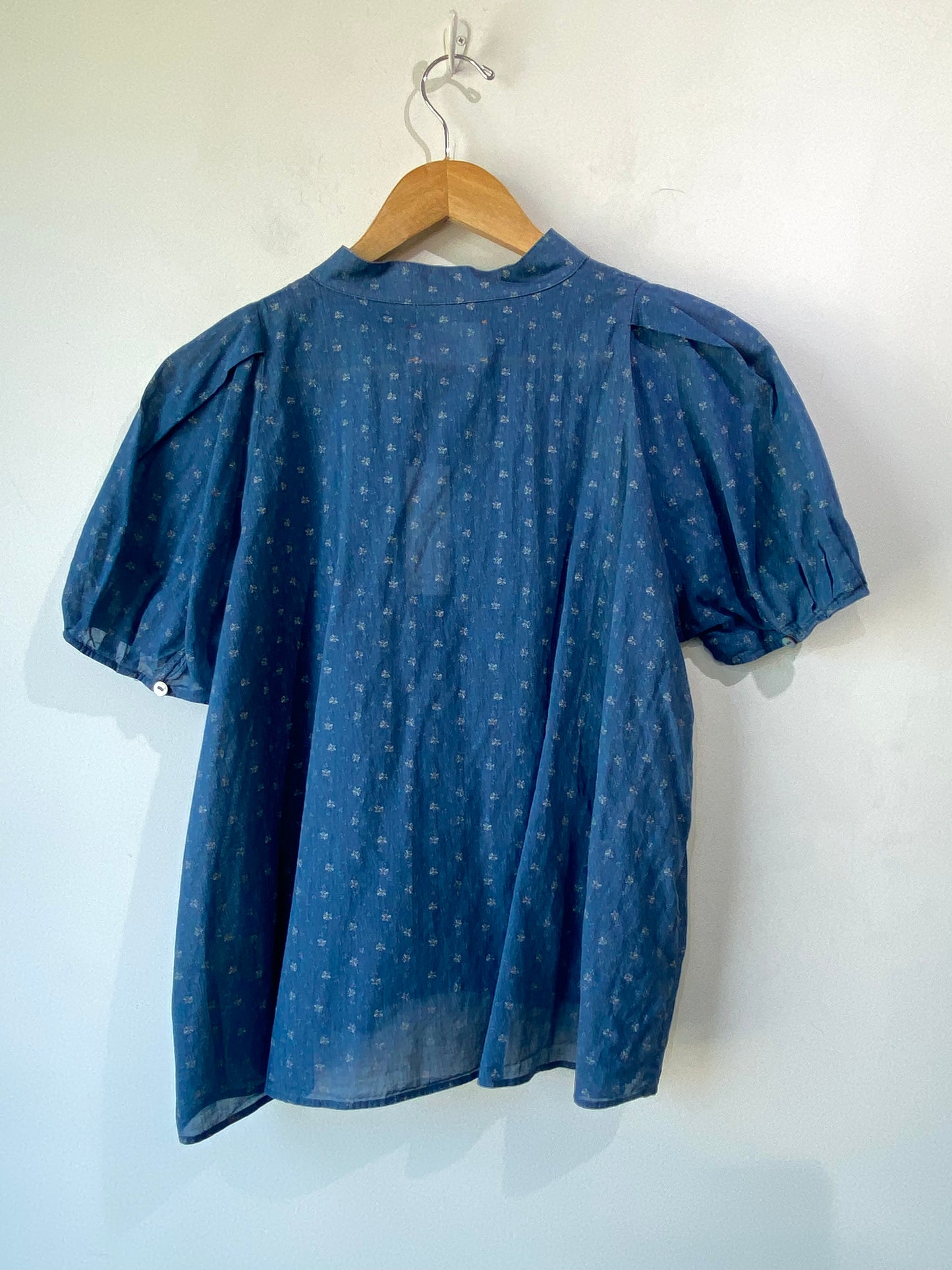 Pietsie Indigo Calico Sol Top! 100% cotton with short sleeves, flowy fit, and buttons on the chest. Made in California. Size medium, please refer to measurements. Brand new with tags attached!
