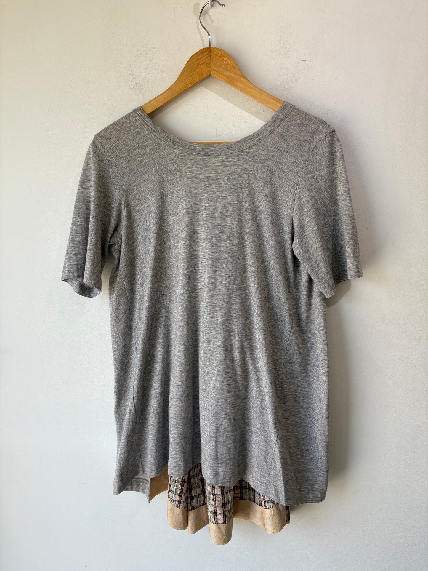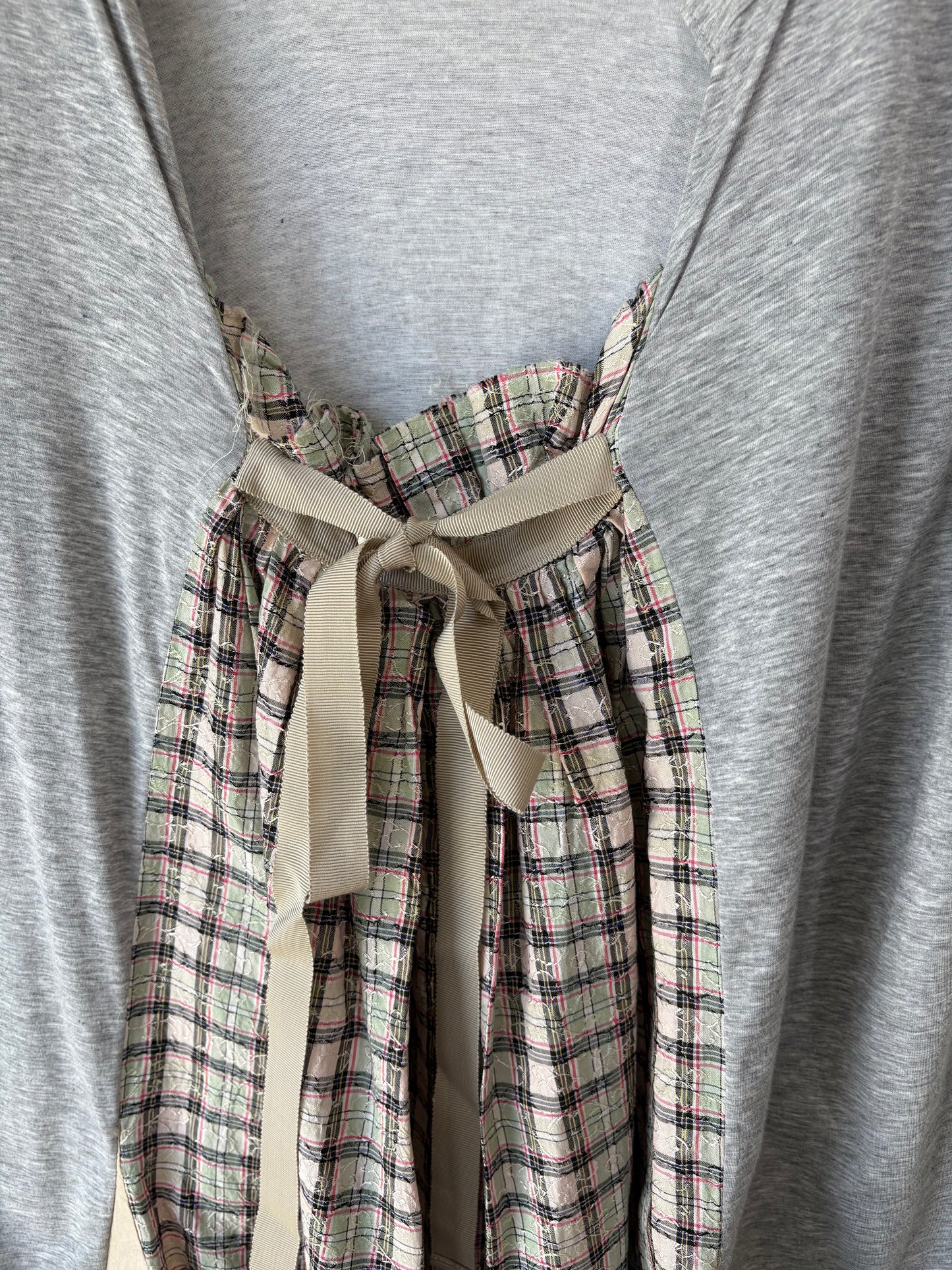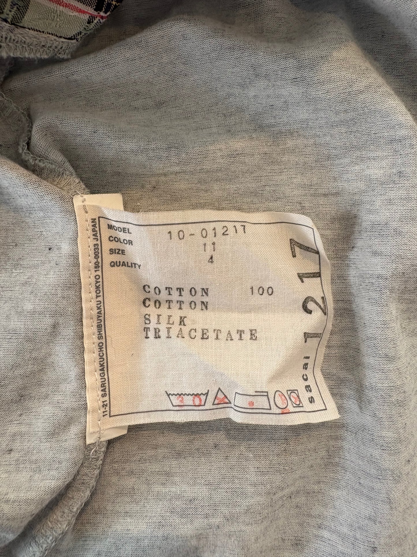 Elevate your style with the Sacai Grey w Plaid Top, featuring a stunning plaid pleated panel cascading down the front for a chic twist. The playful ribbon detail at the collar adds a touch of whimsy. Comfortable yet eye-catching, it’s a fun way to brighten up your wardrobe!