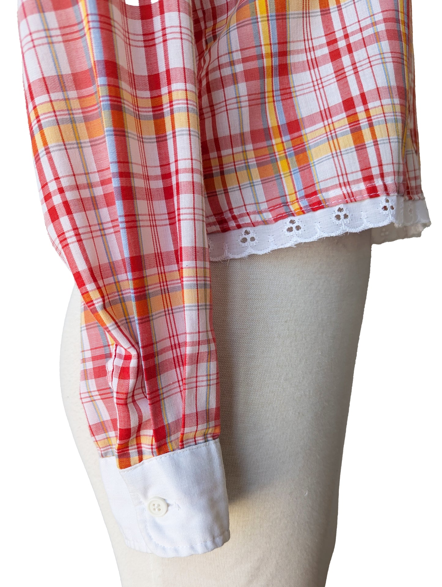 Sassoon Red Plaid Shirt with Lace Detail -- country fair meets flair.