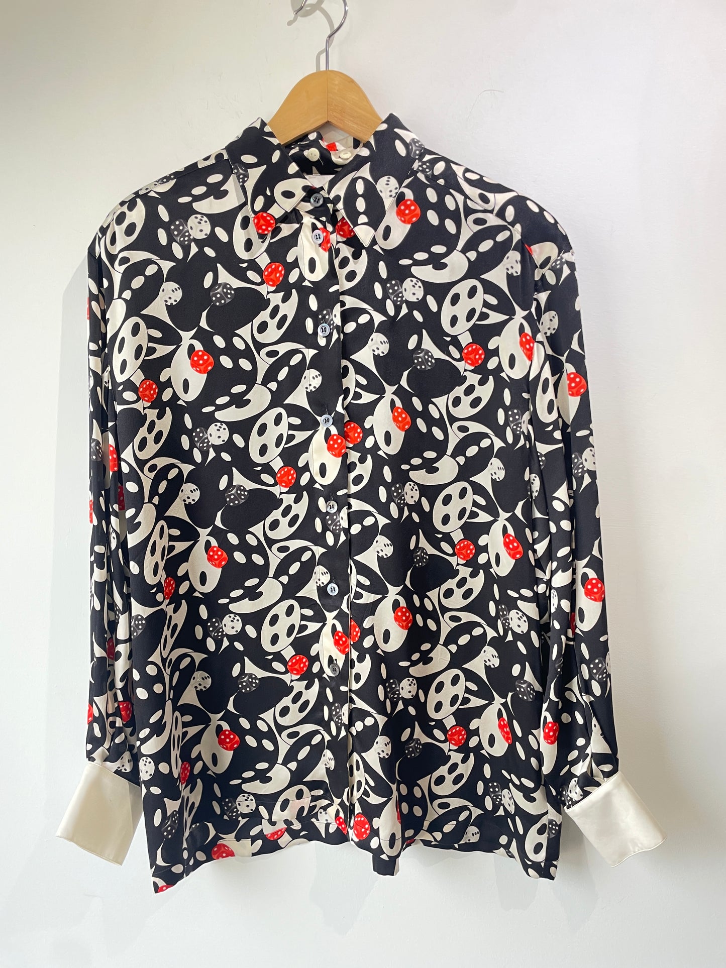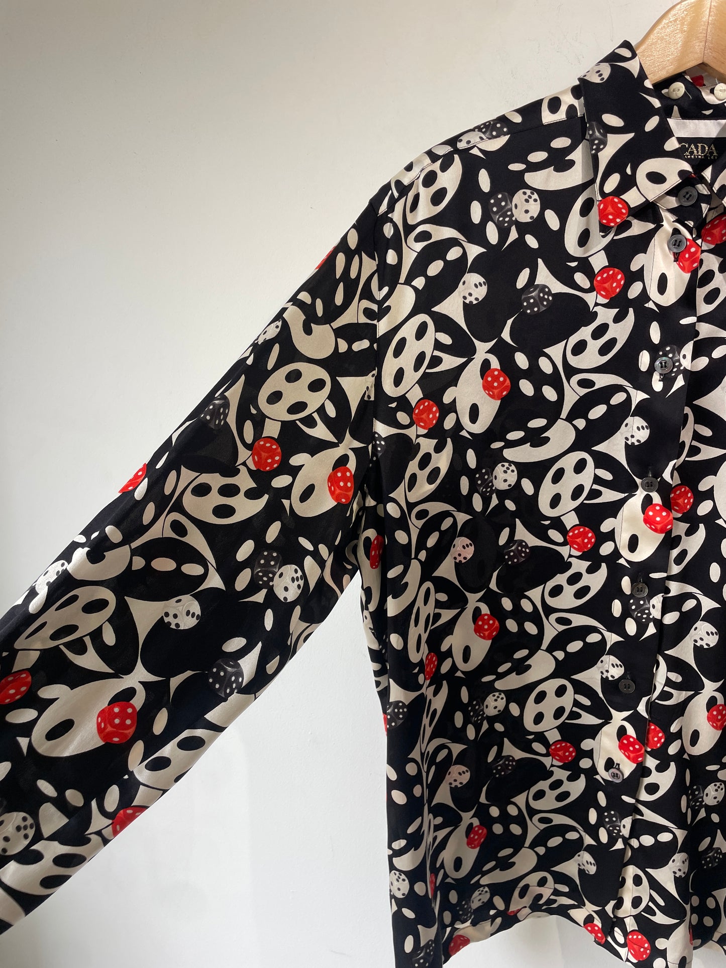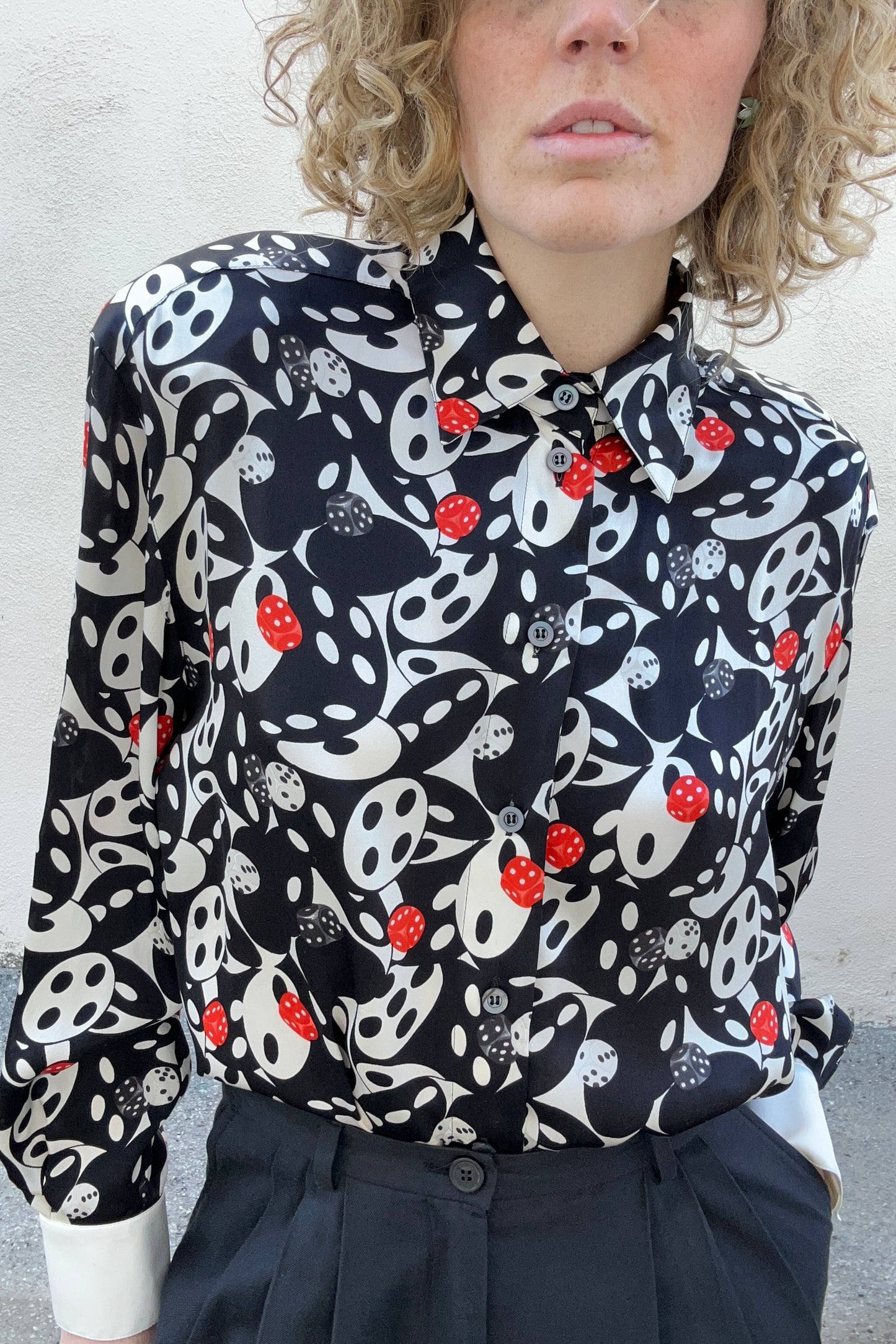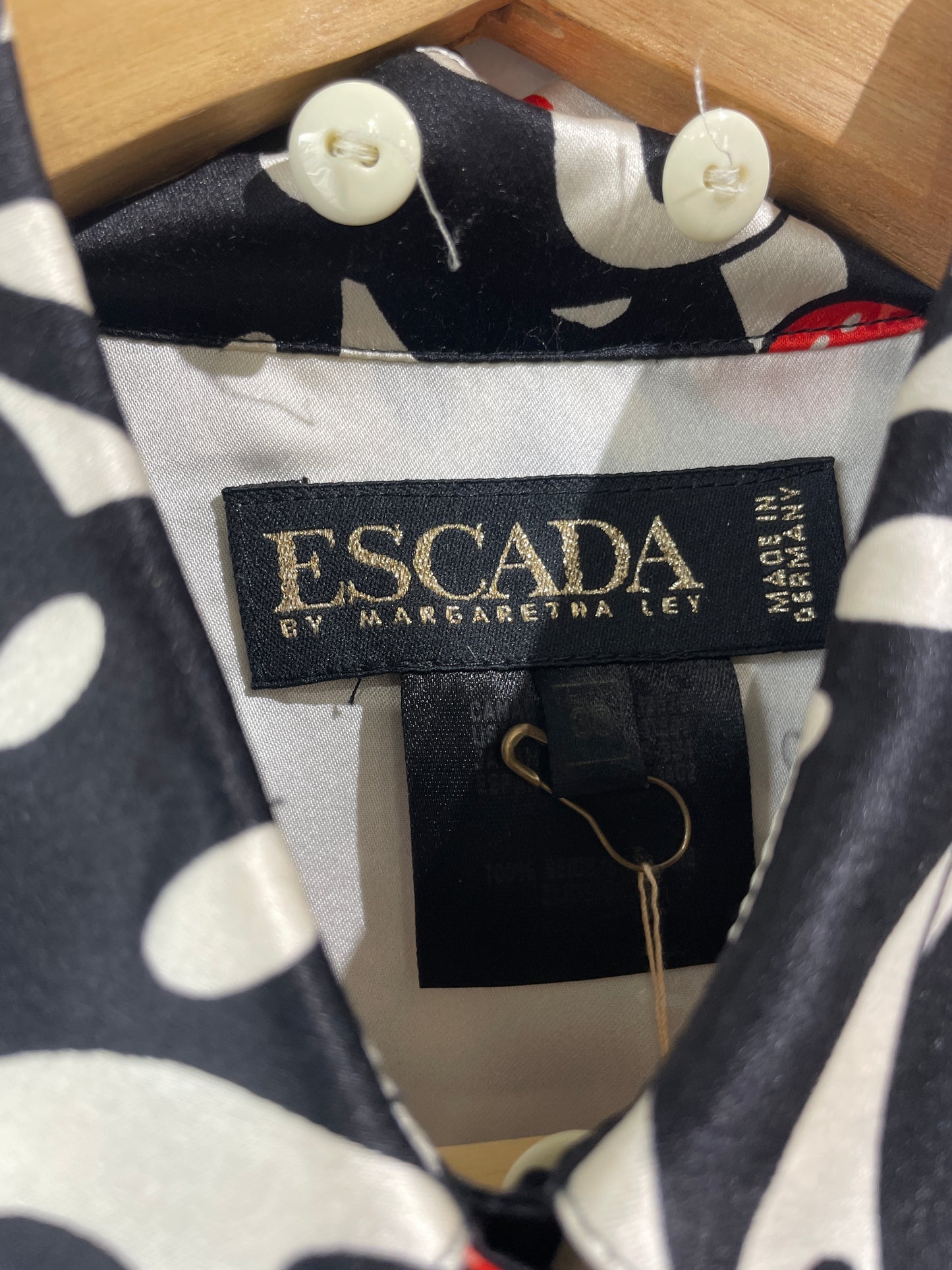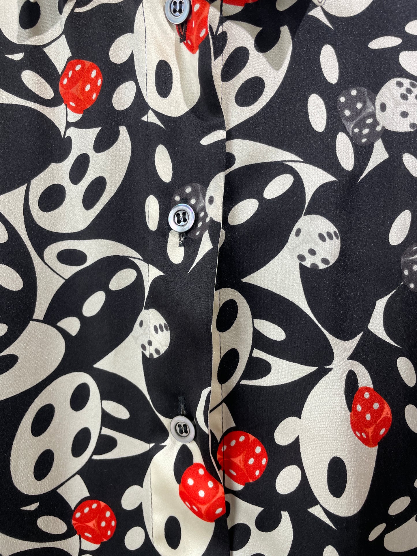 Vintage Escada Silk Dice Blouse. Super unique and trippy black and white print with dice. 100% silk, size 38 dry clean only.