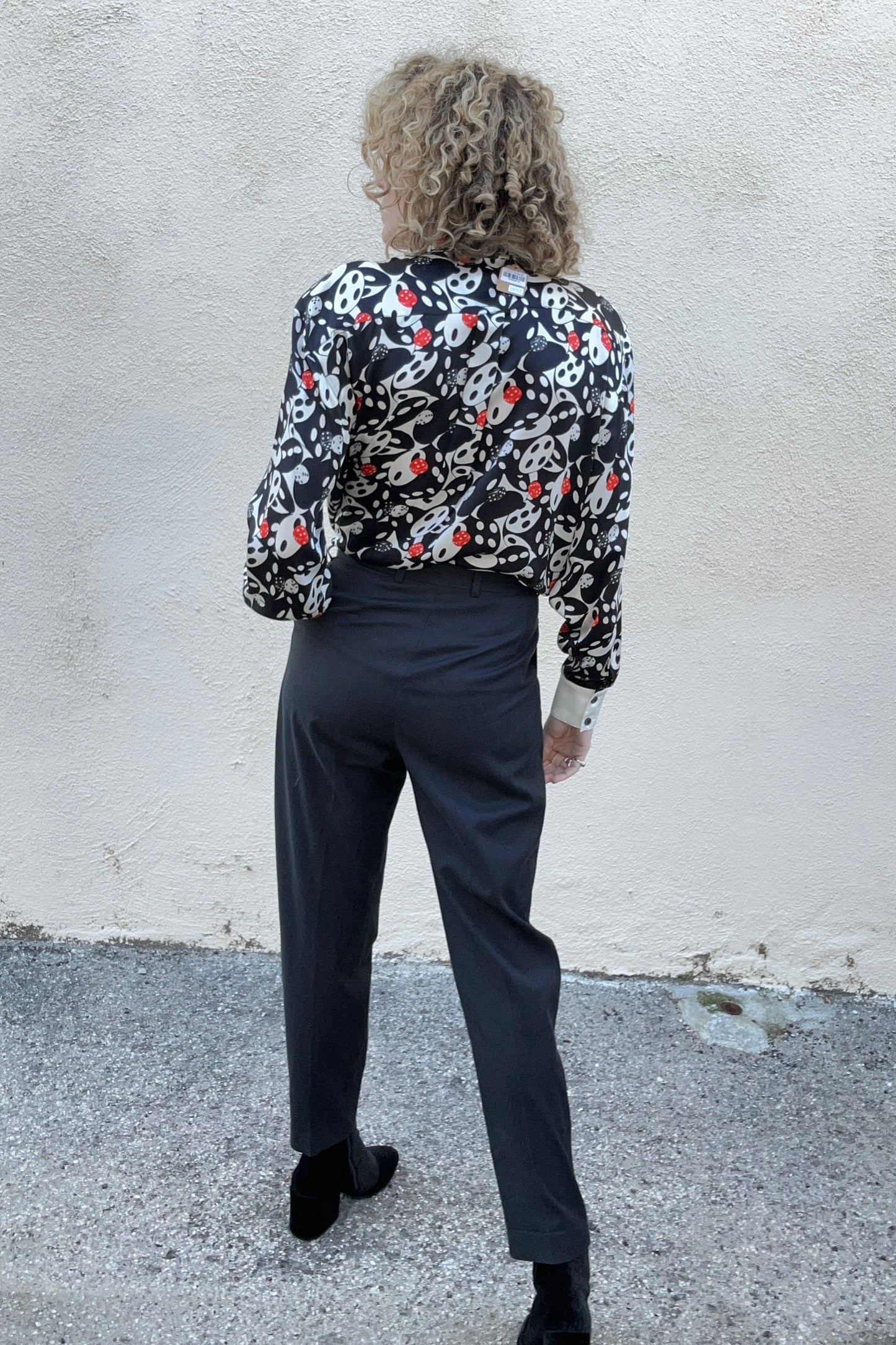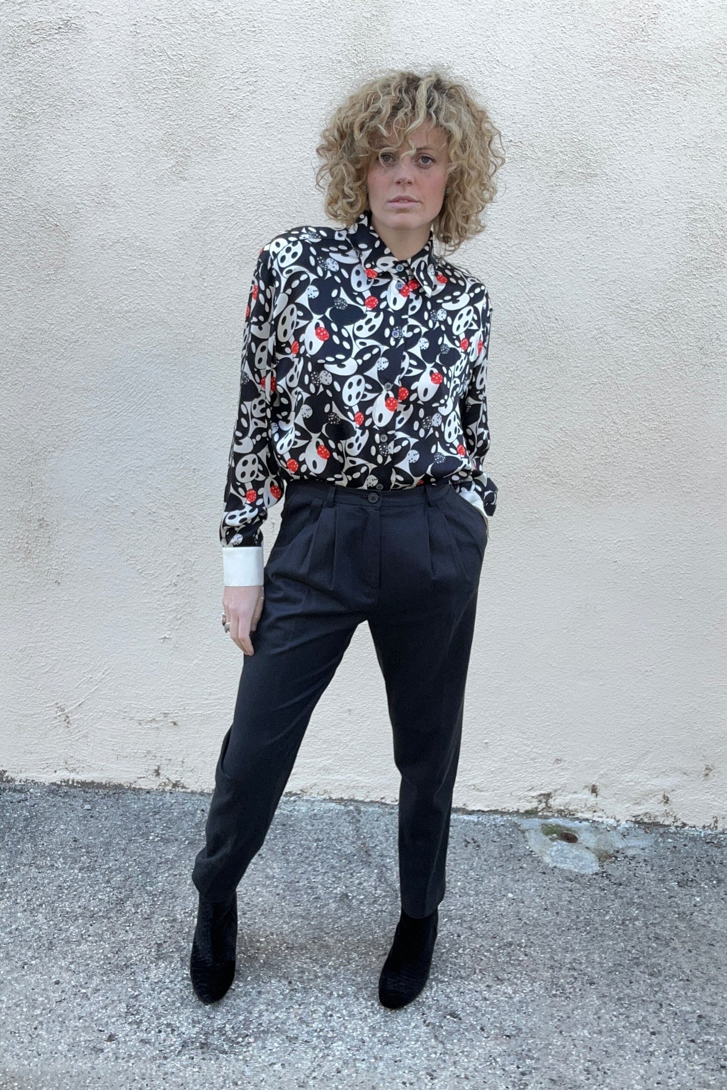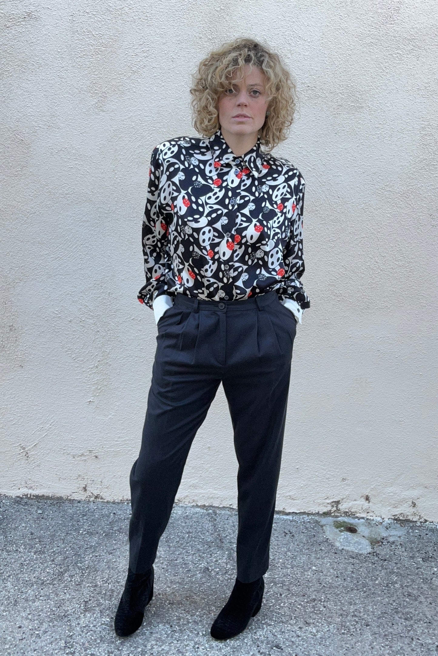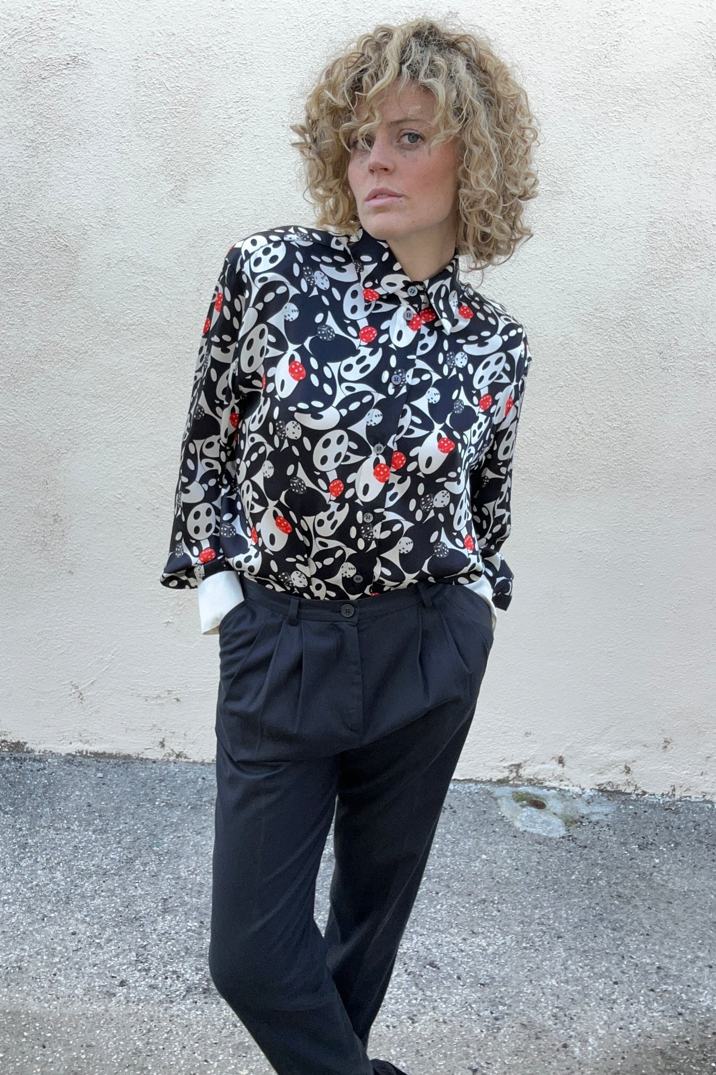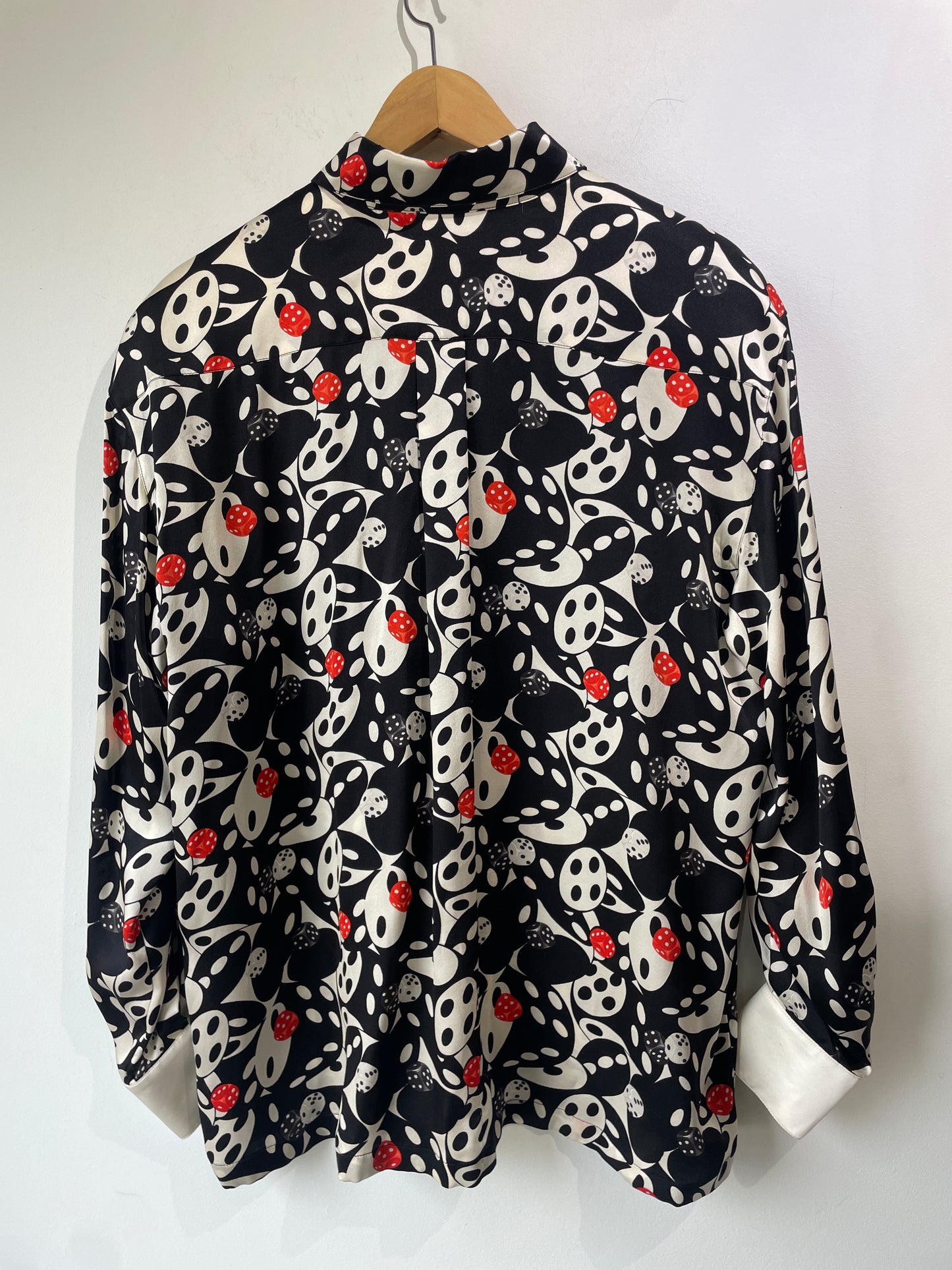 Vintage Escada Silk Dice Blouse. Super unique and trippy black and white print with dice. 100% silk, size 38 dry clean only.