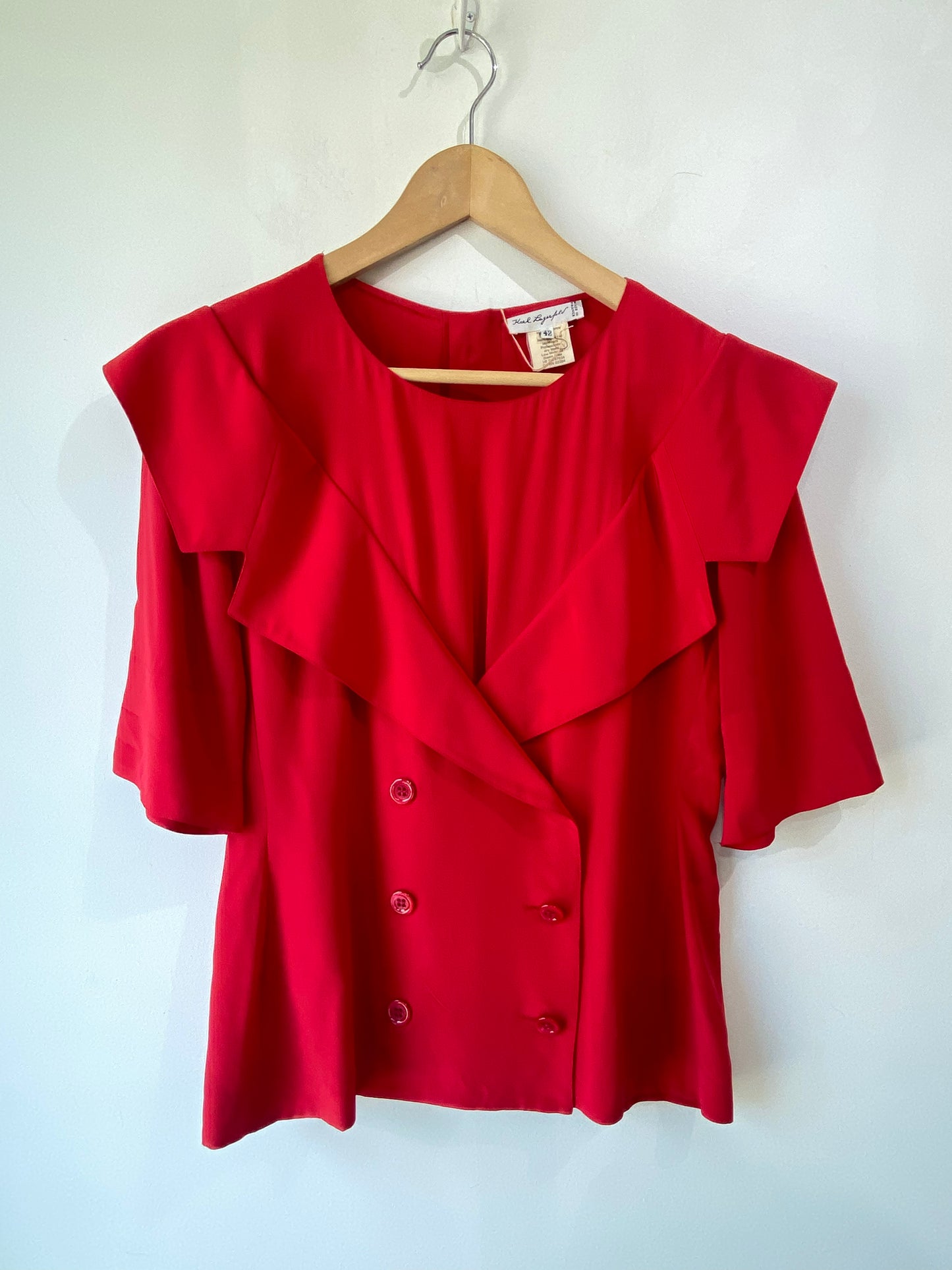 Vintage Karl Lagerfeld 1980s Red Silk Top