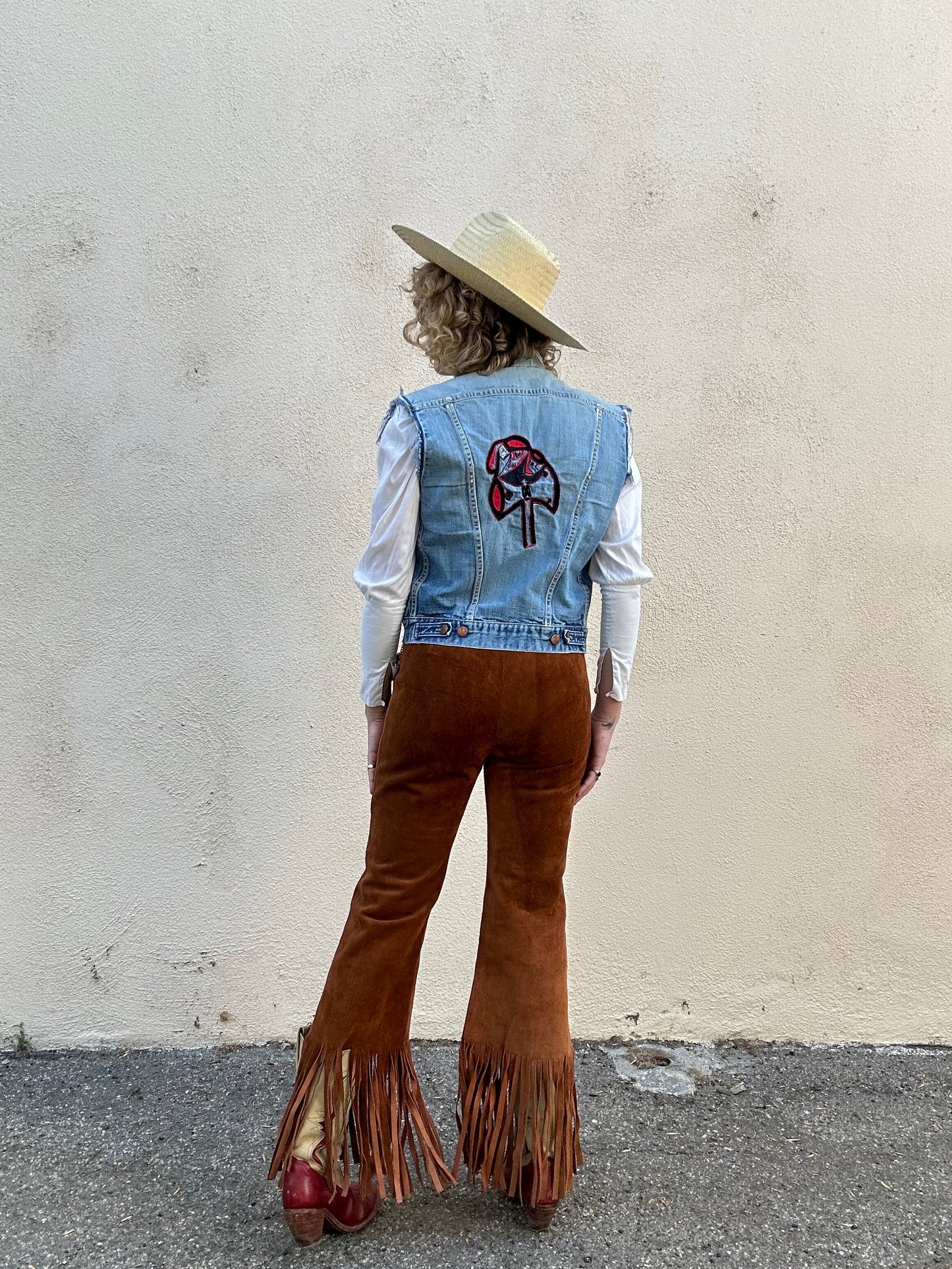 Vintage Wrangler Vest with Mushroom Embroidered Back