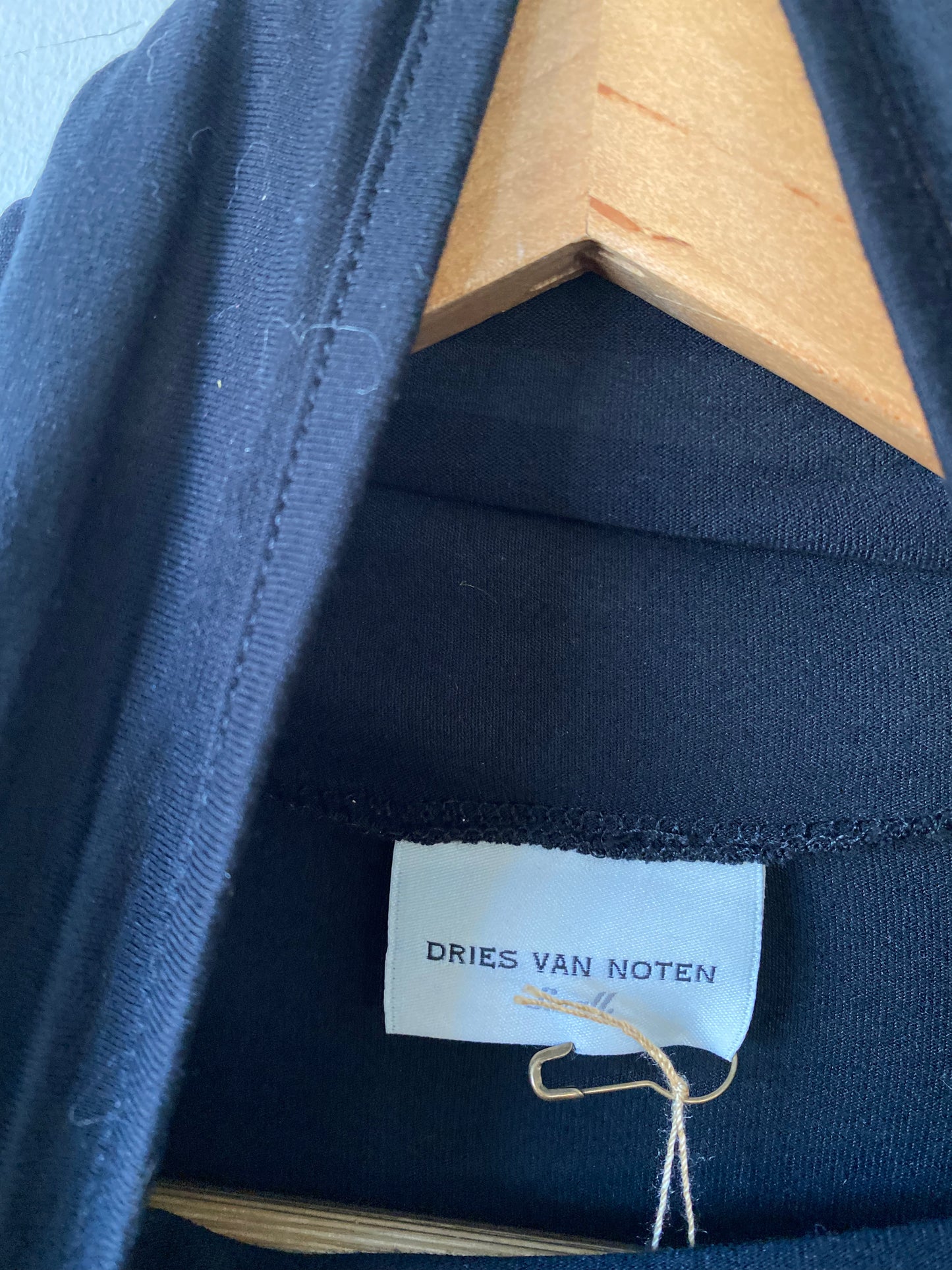 Dries Van Noten Black Top made from 100% modal. Marked size S. Has unique neckline with tie around neck. In excellent condition.