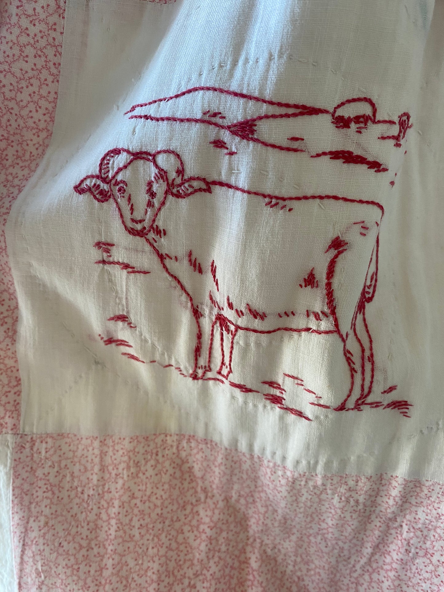 Unlabeled vintage Antique Quilted and Embroidered cotton Dress. In good vintage condition aside from a few minor stains. Sold as-is. Fits like a size XS/S.