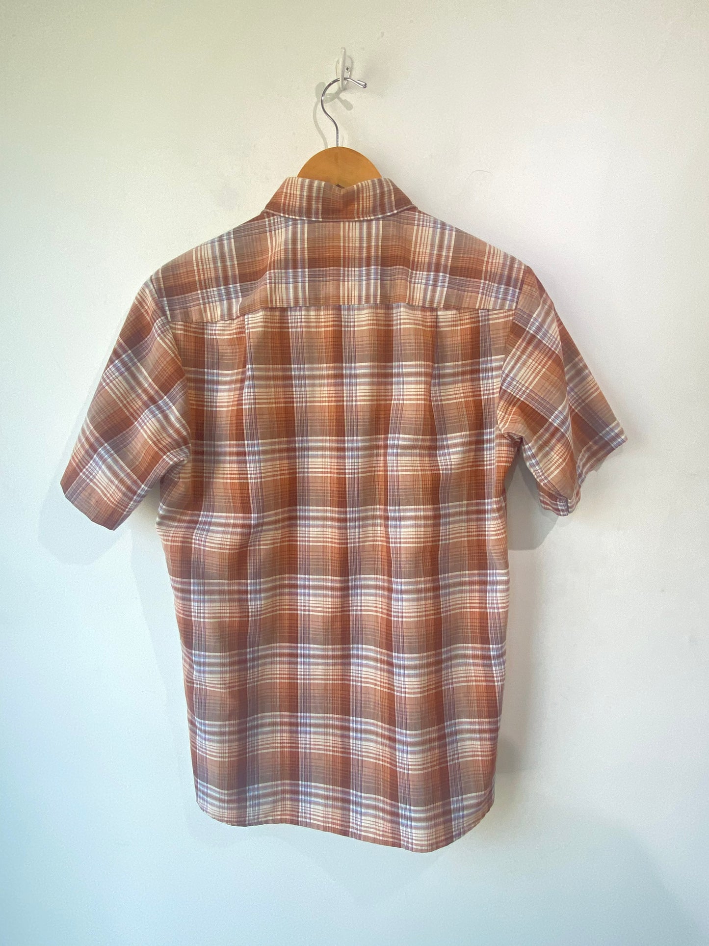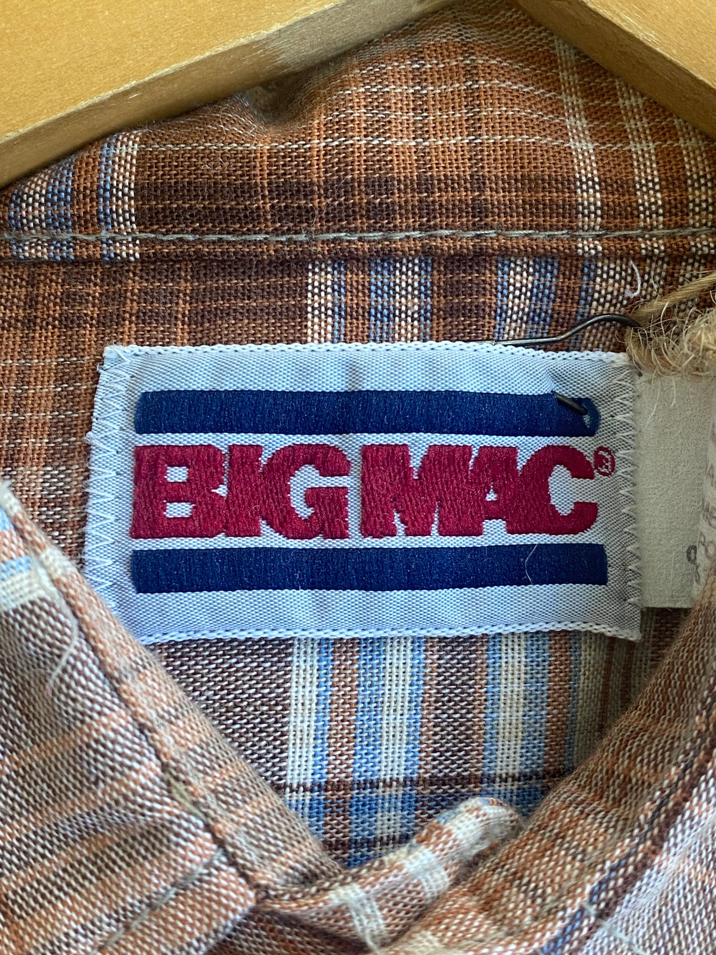 Vintage Big Mac Brown Plaid Shirt! Cotton/poly blend with short sleeves, a classic collar, and buttons up the front. Size small, please refer to measurements. In great condition!