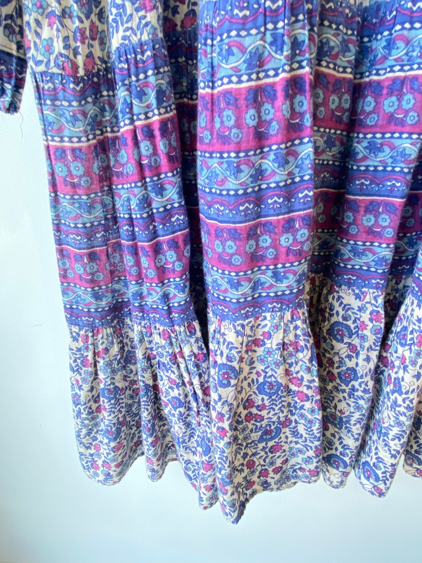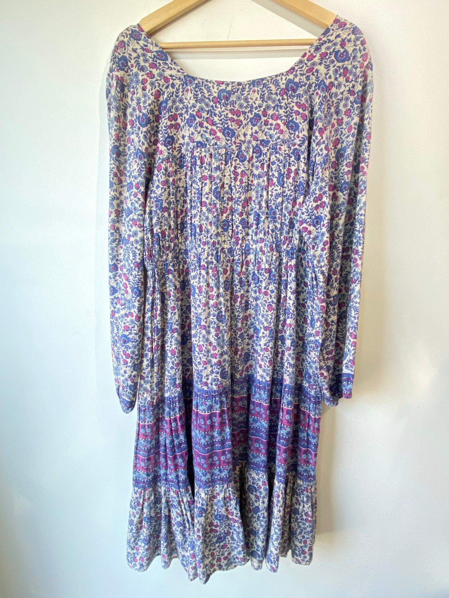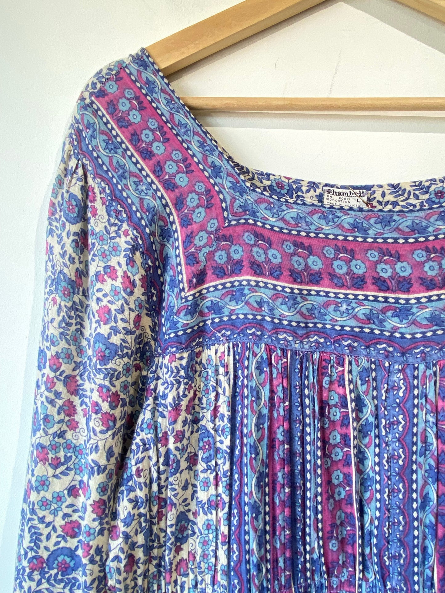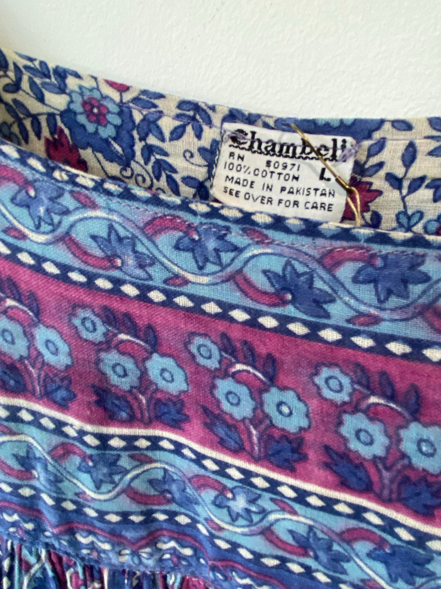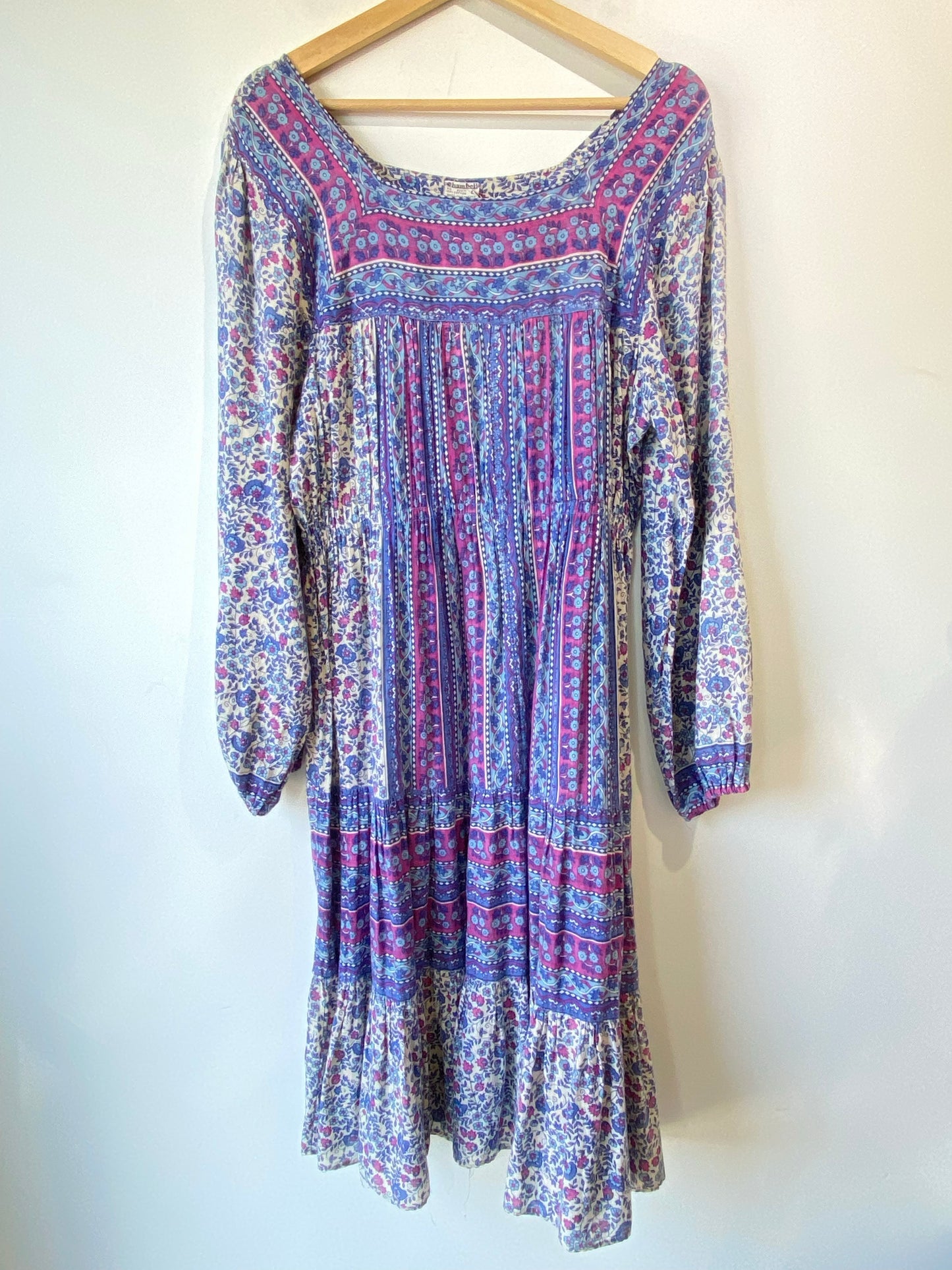 Vintage Chambell Indian Block Print Dress in very good vintage condition. Marked size L but also fits medium. Elastic at empire waist.
