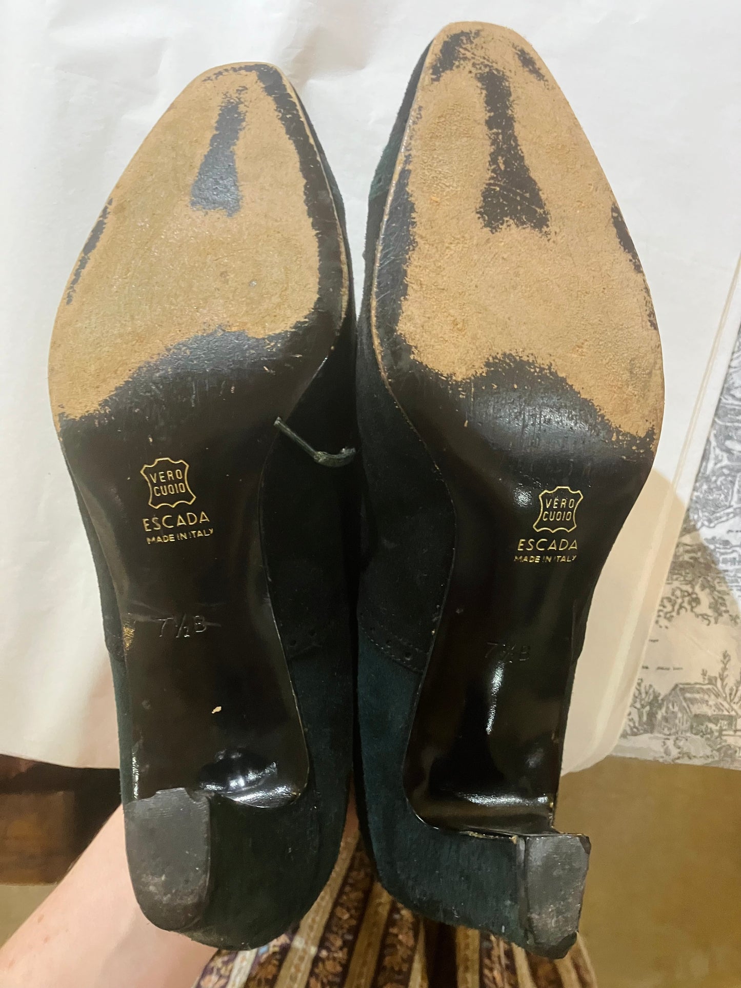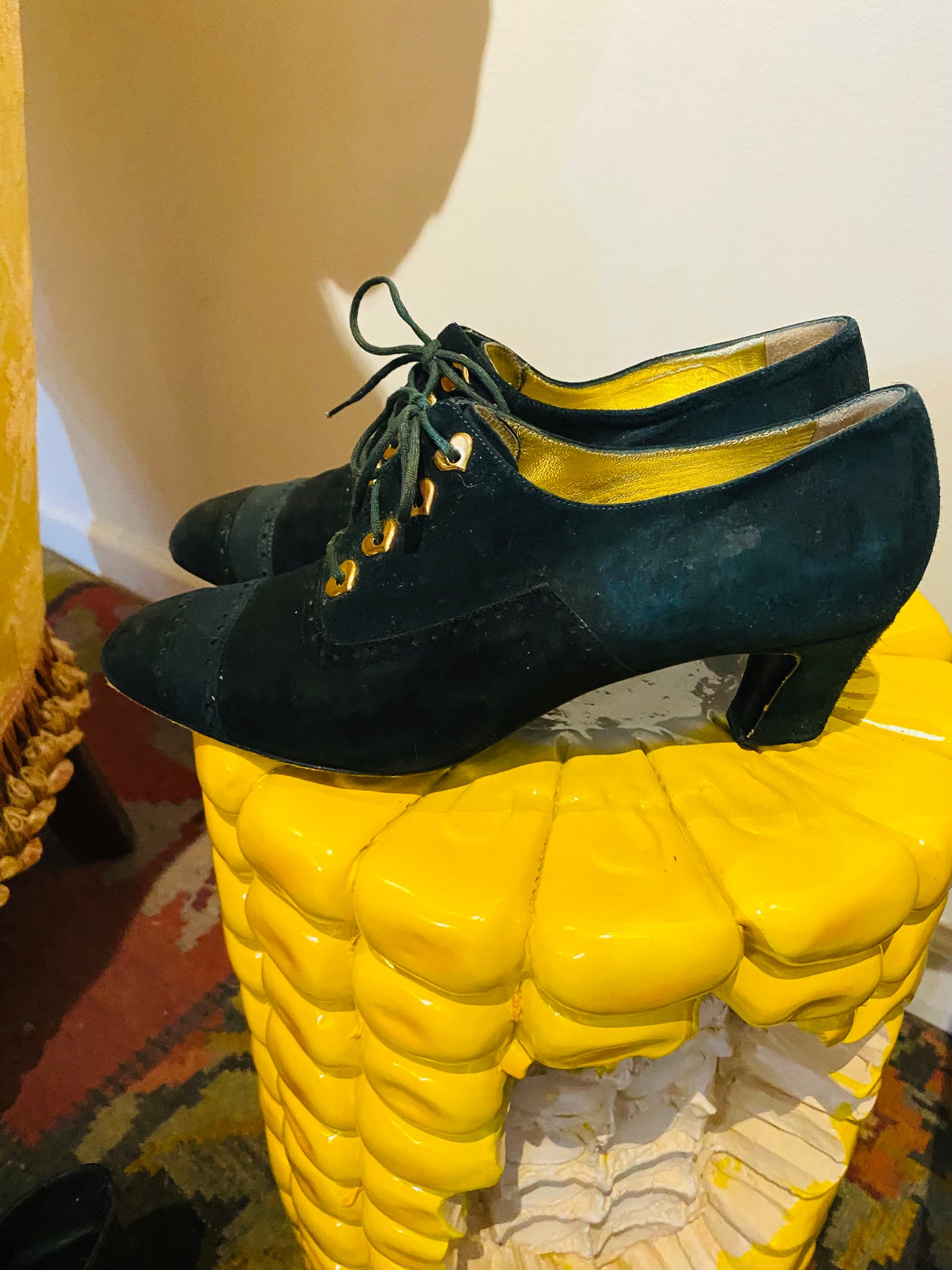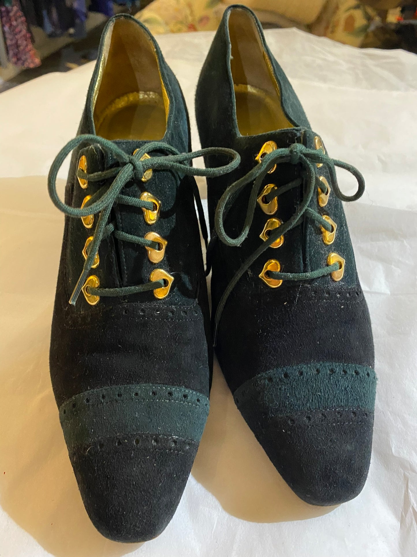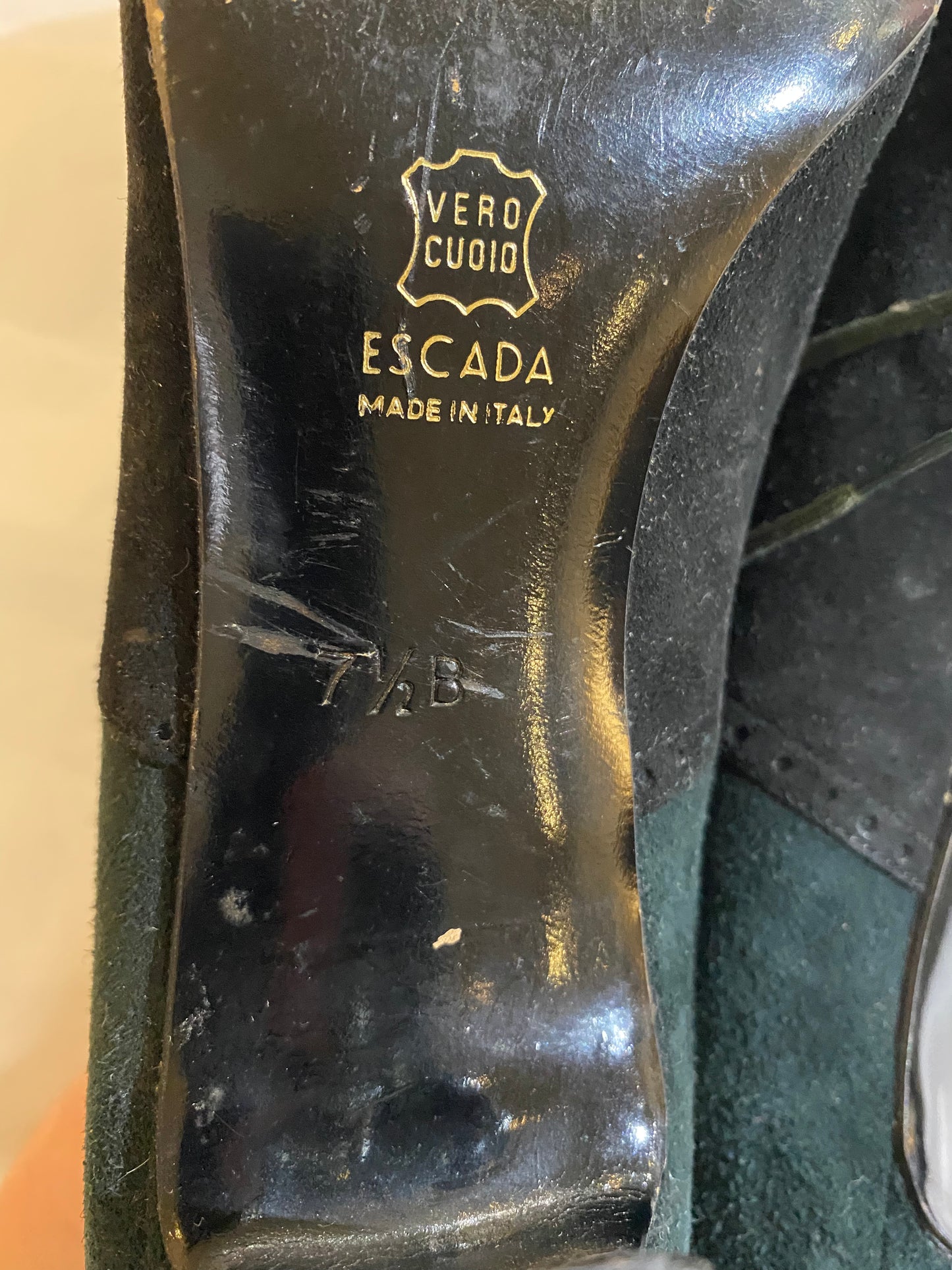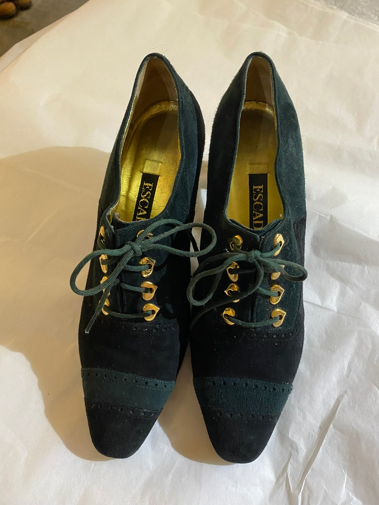 Vintage Escada Green Suede Heart Detail Lace-Ups 7.5