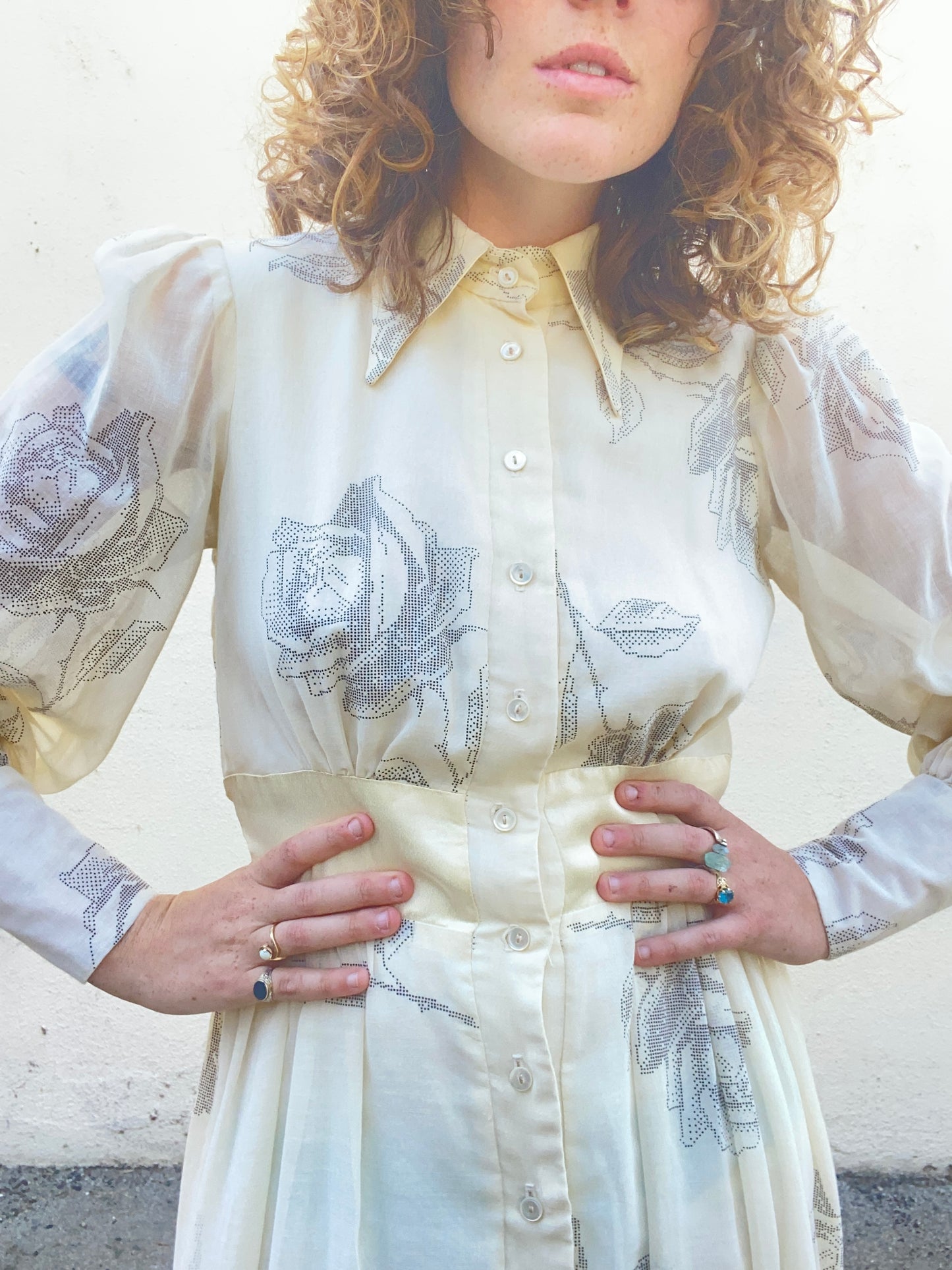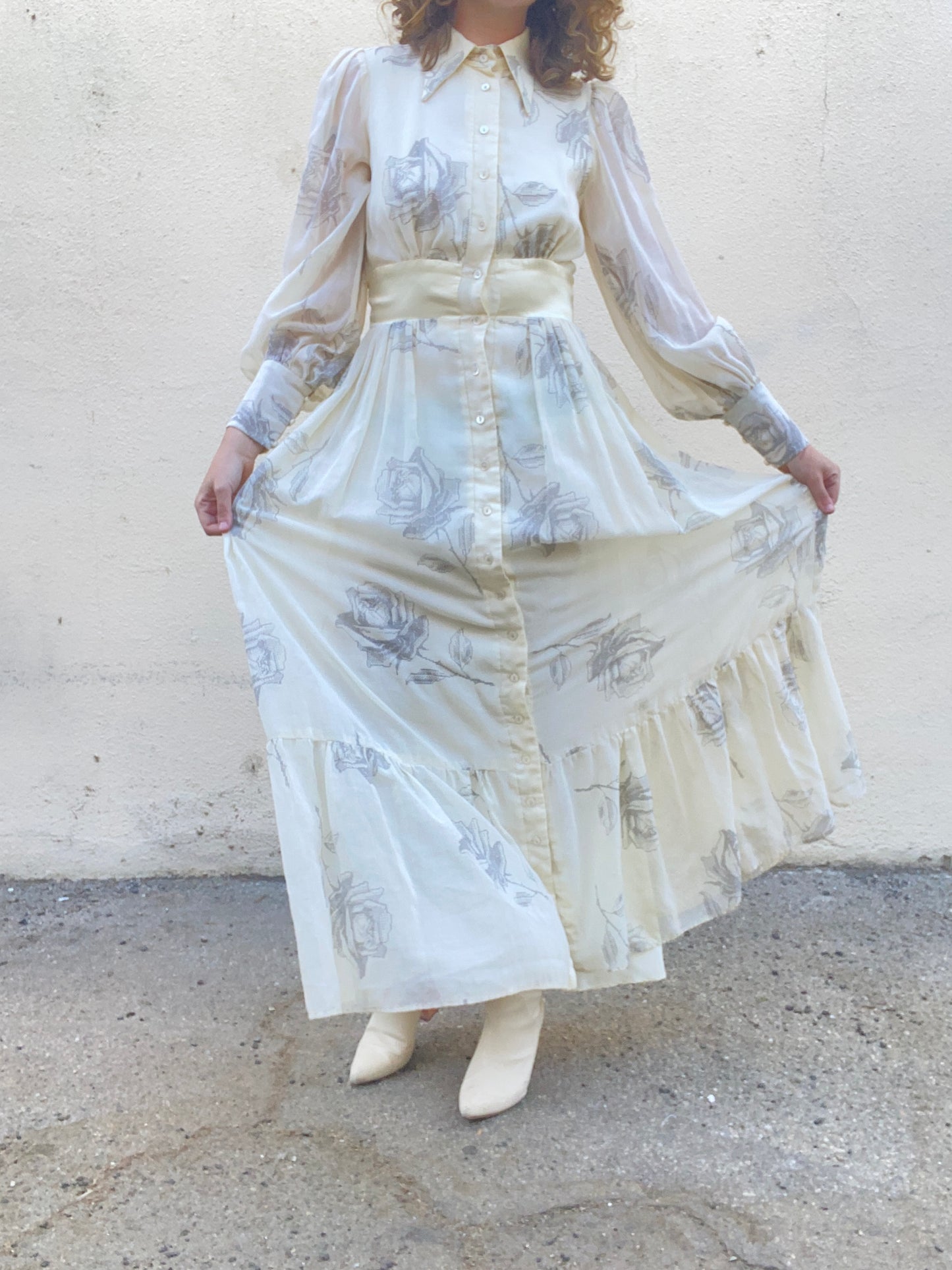 Vintage Gunne Sax Dotted Floral Pattern Dress - The Curatorial Dept.