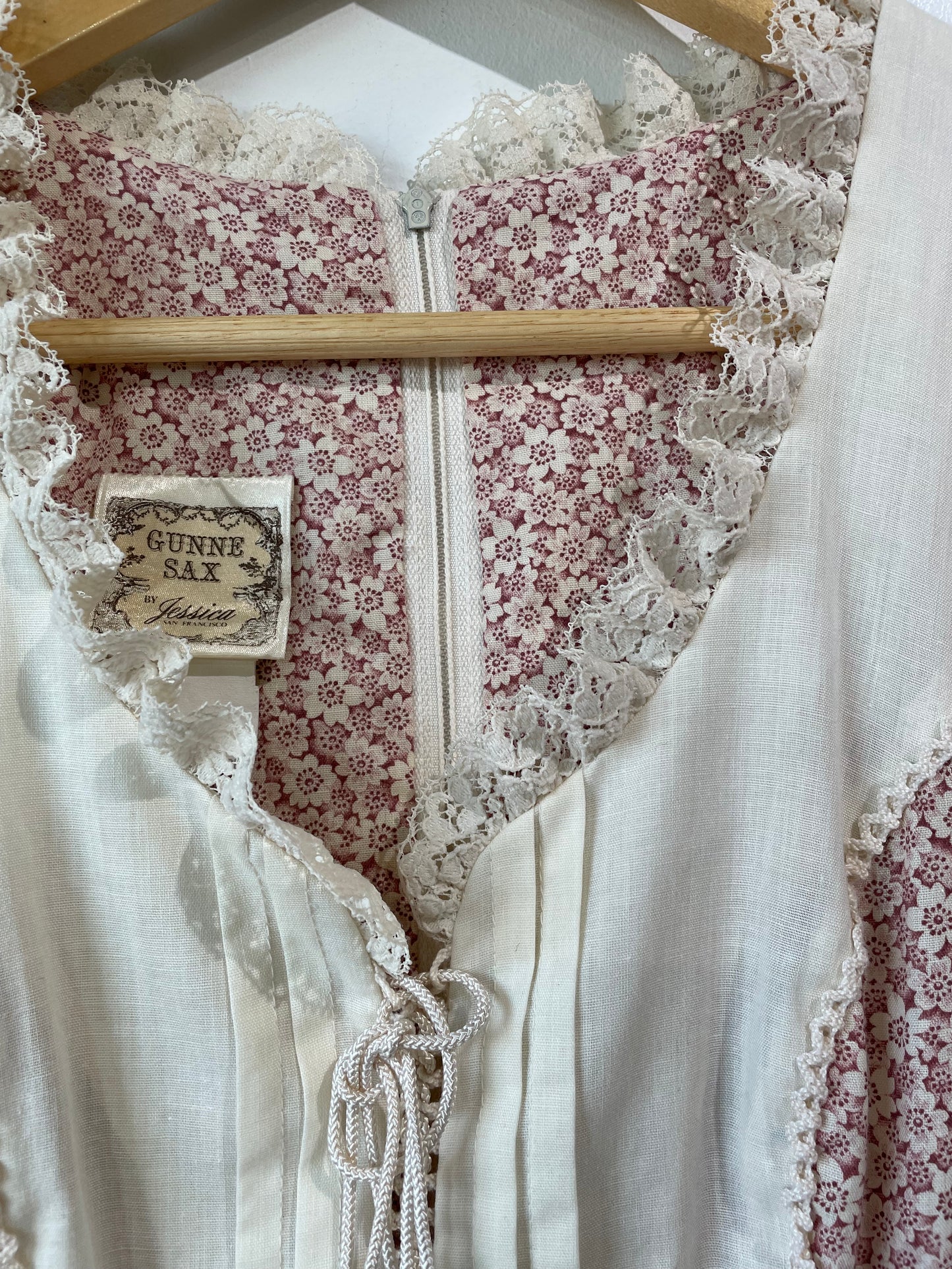 Vintage Gunne Sax Pink/Red Floral Dress - The Curatorial Dept.