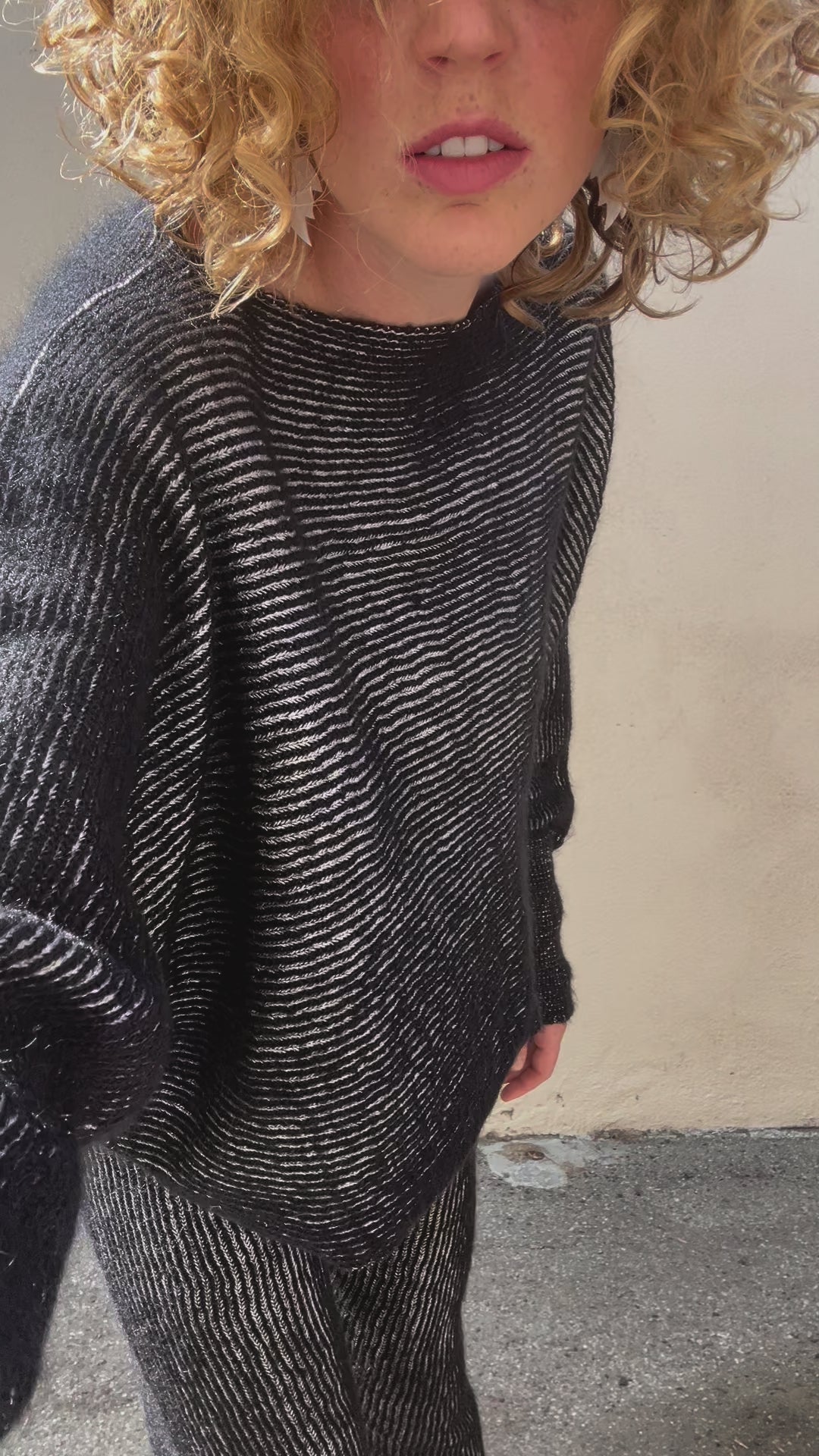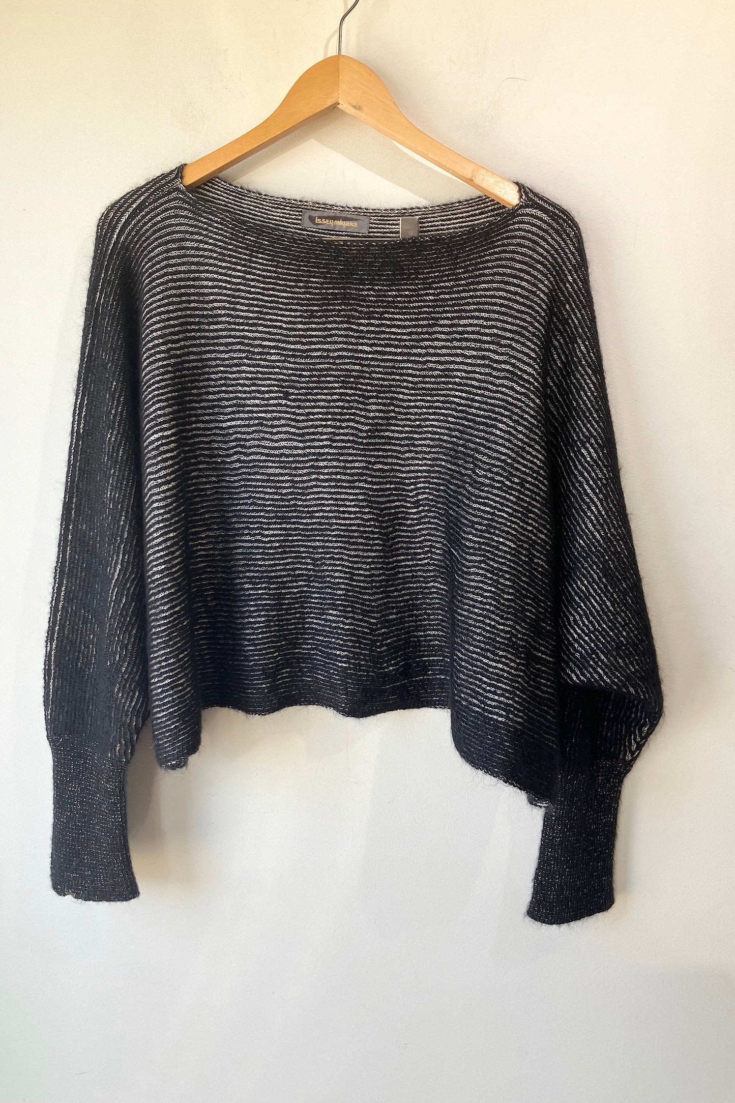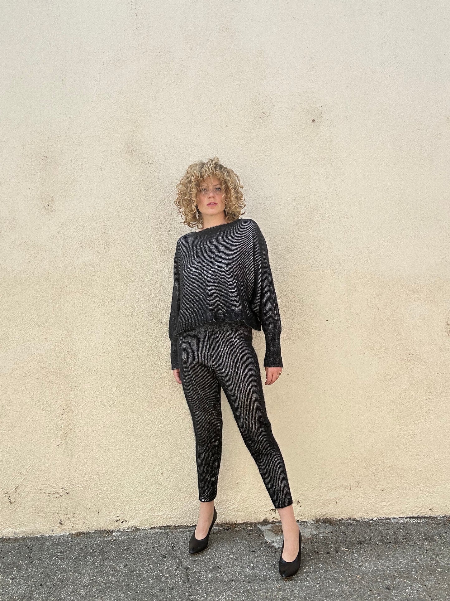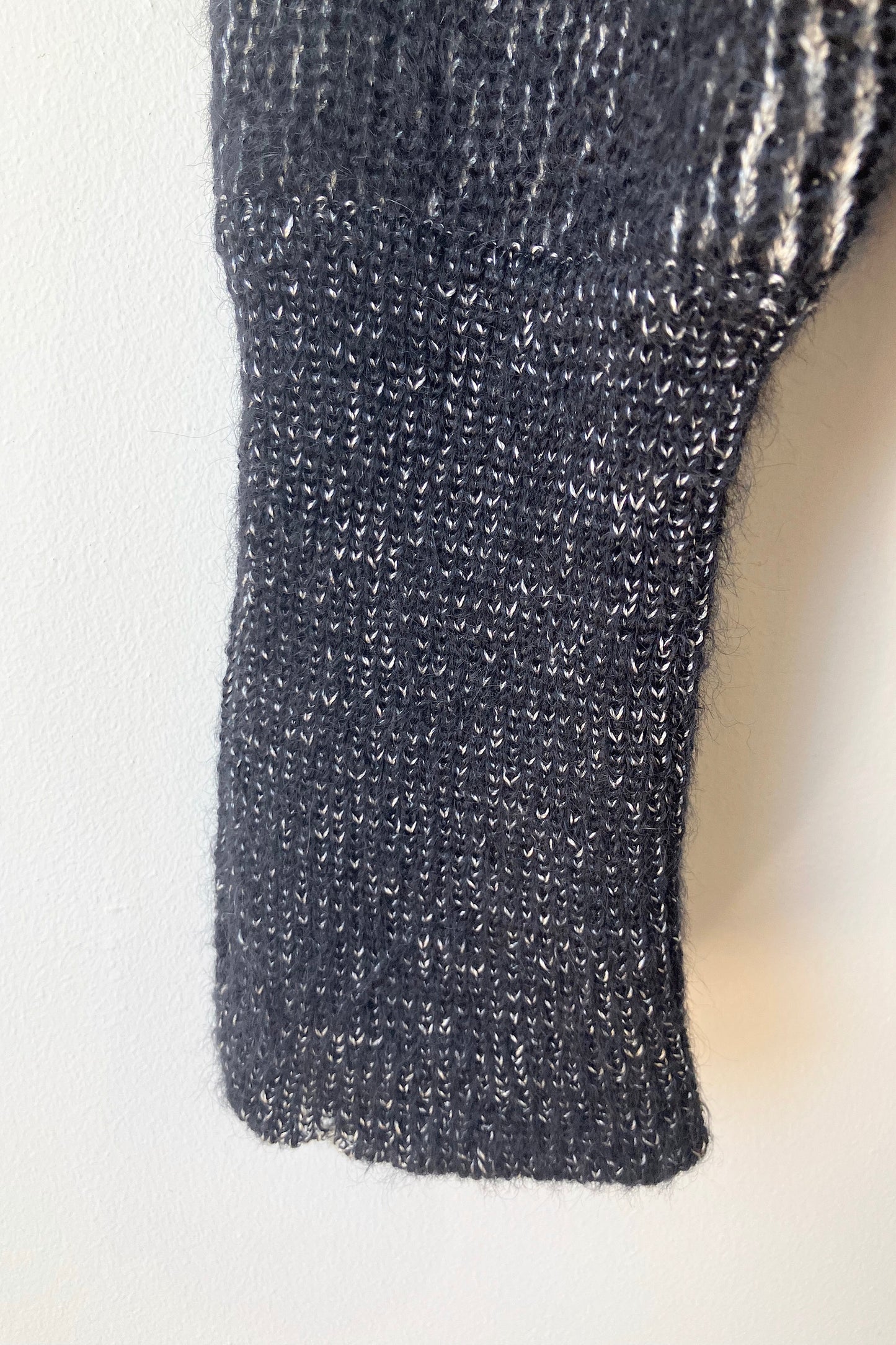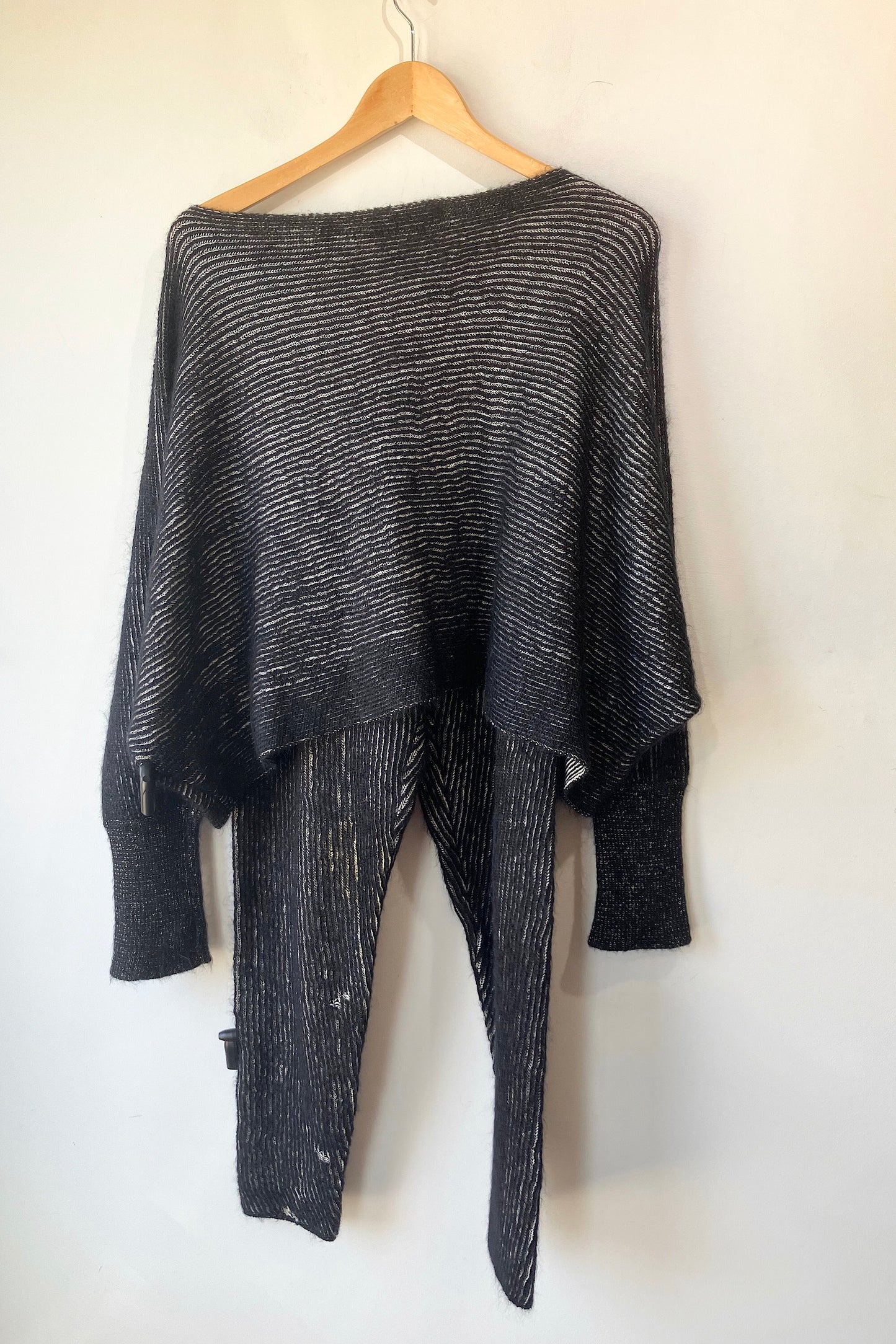 Vintage Issey Miyake Black White Knit Pants Set. Good vintage condition, has a few holes near wearers right pant cuff. Plaited rib soft knit set. Dolman sleeve pullover and easy pull on pants with tapered leg. 50% wool 50% rayon, dry clean only. Marked as size M. Made in Japan.
