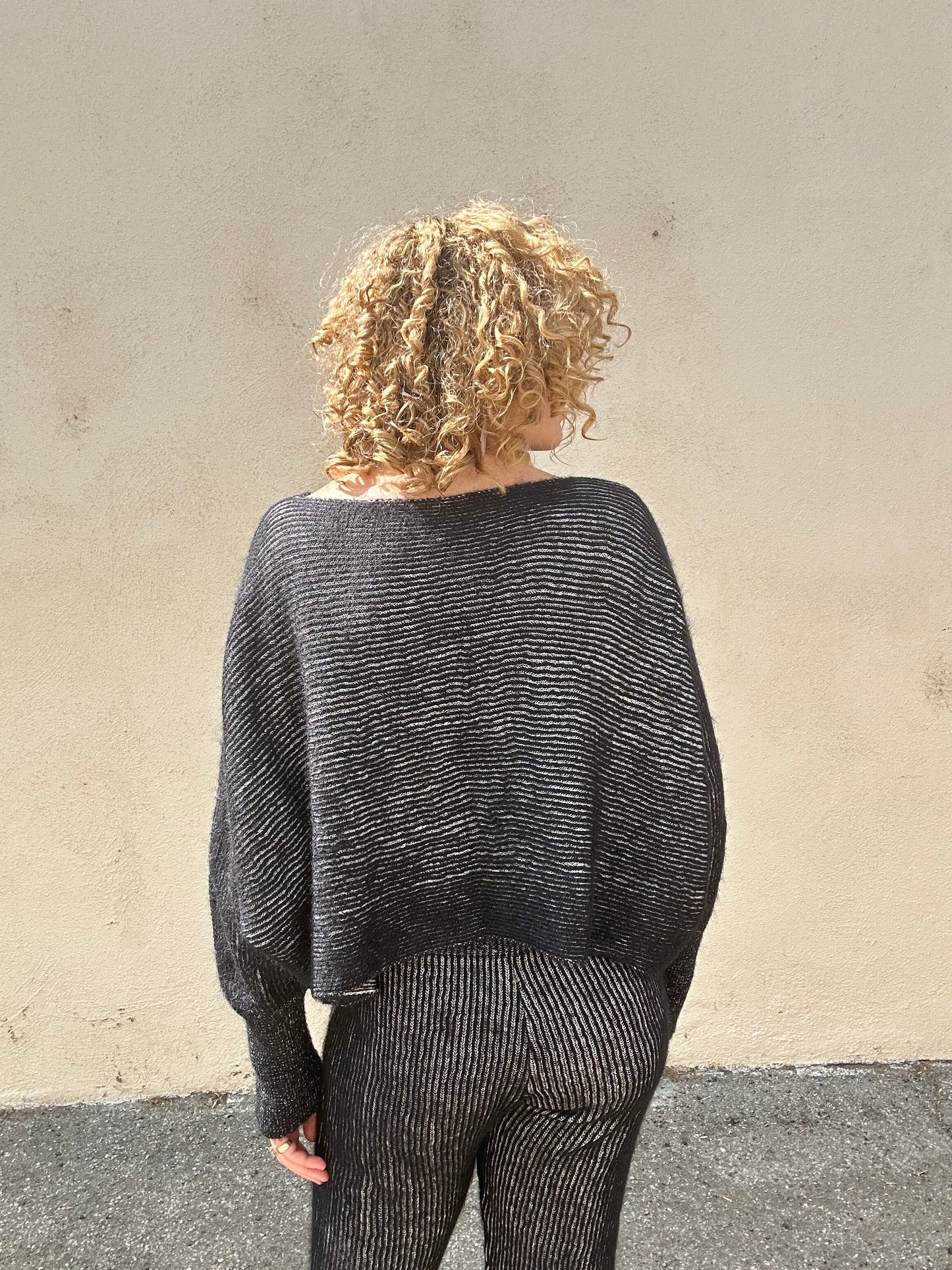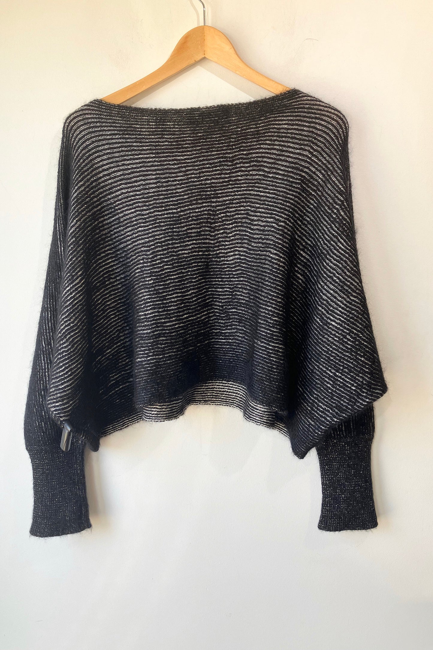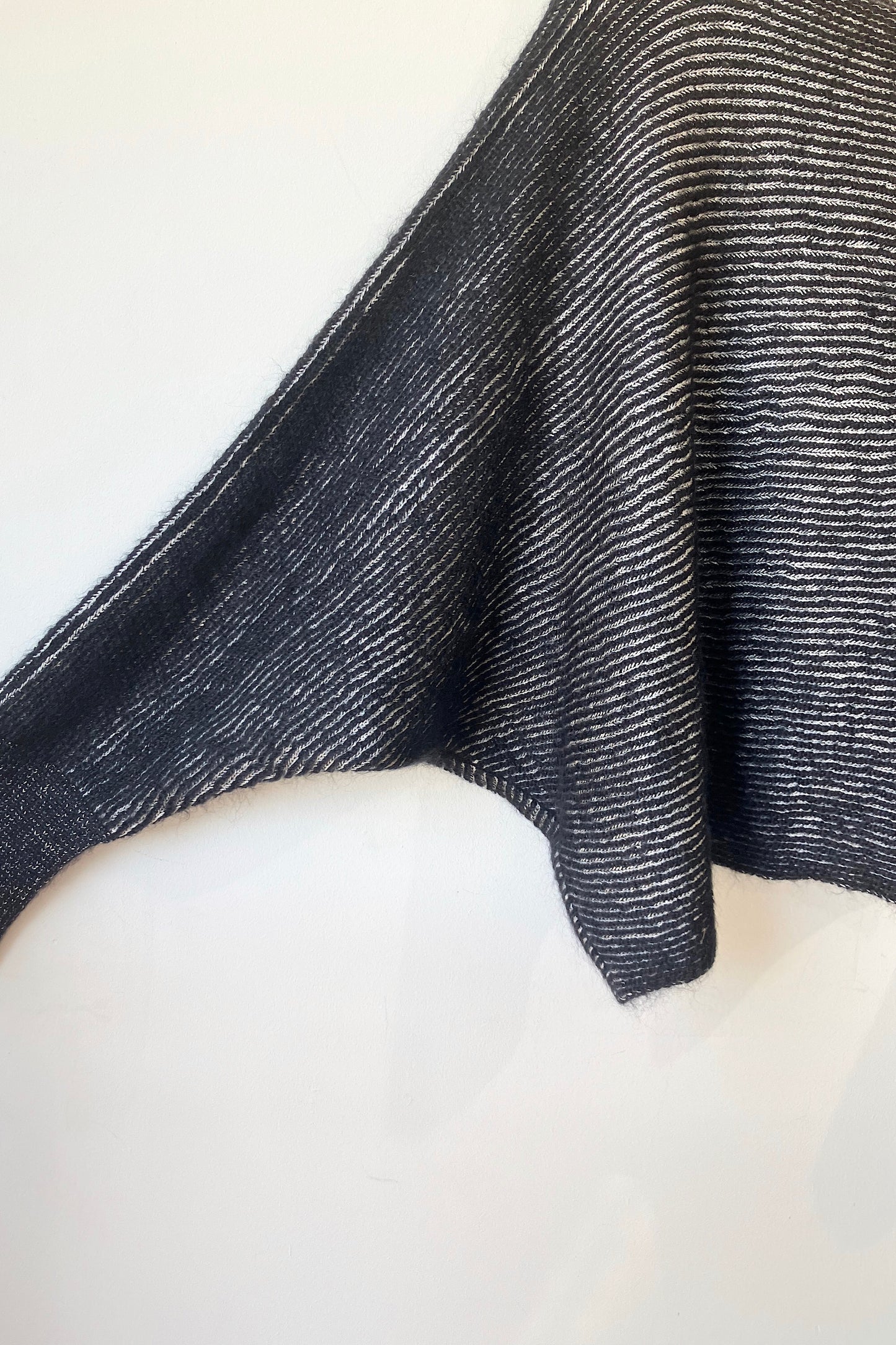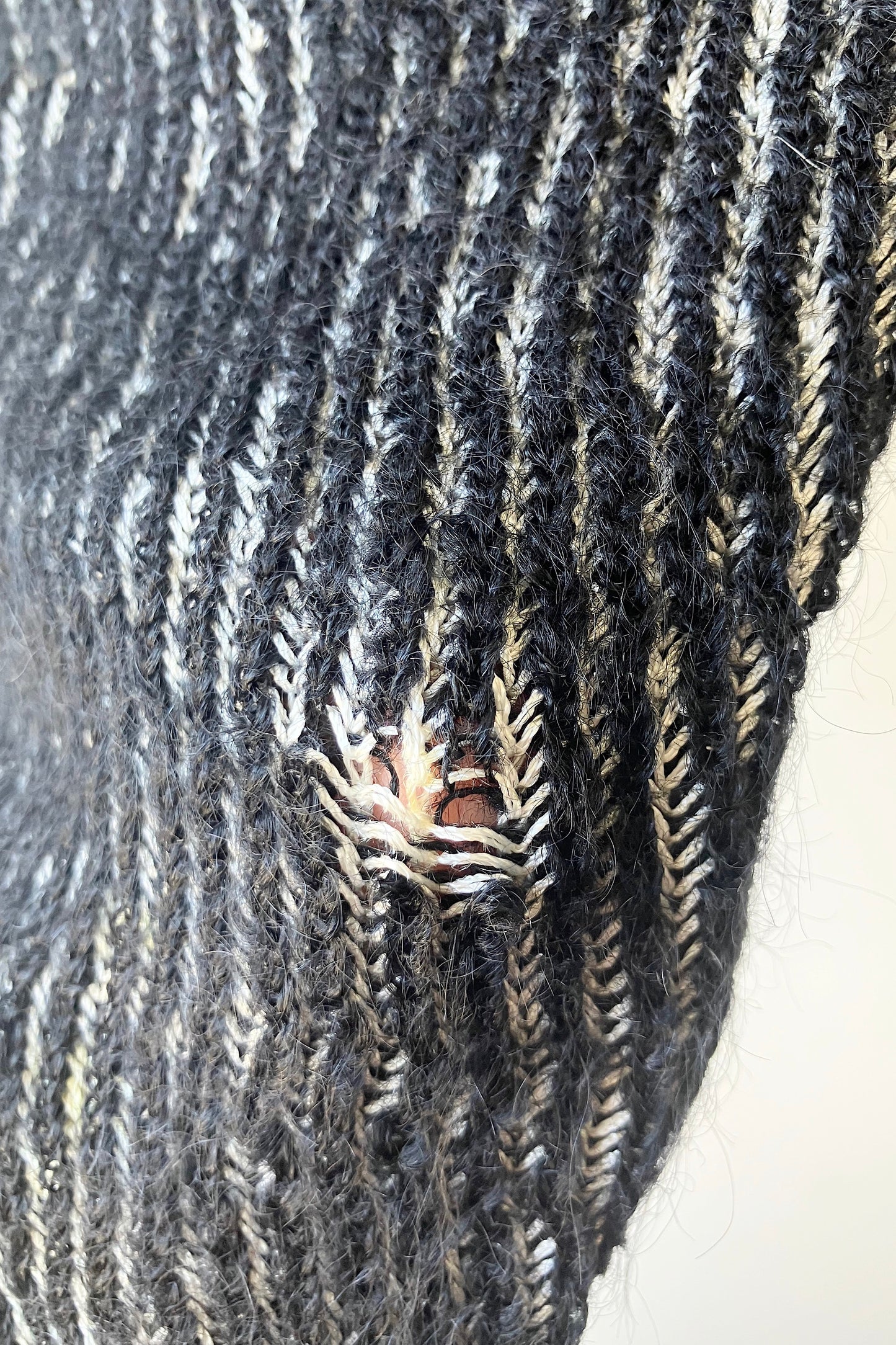 Vintage Issey Miyake Black White Knit Pants Set. Good vintage condition, has a few holes near wearers right pant cuff. Plaited rib soft knit set. Dolman sleeve pullover and easy pull on pants with tapered leg. 50% wool 50% rayon, dry clean only. Marked as size M. Made in Japan.