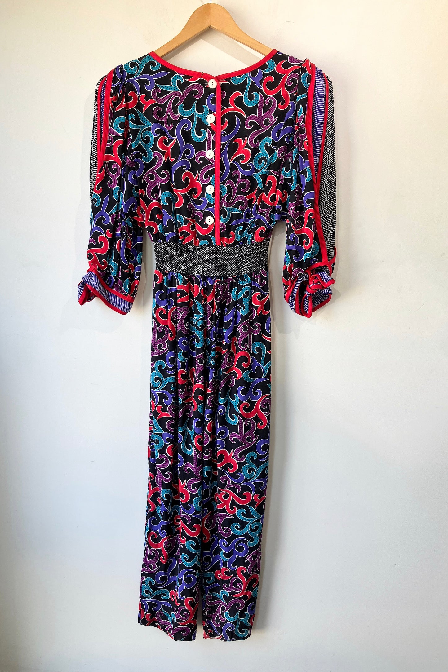 Vintage Jeanne Marc Black Red Purple Jumpsuit