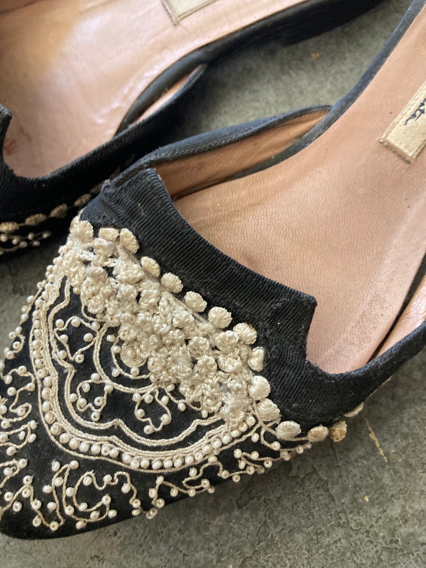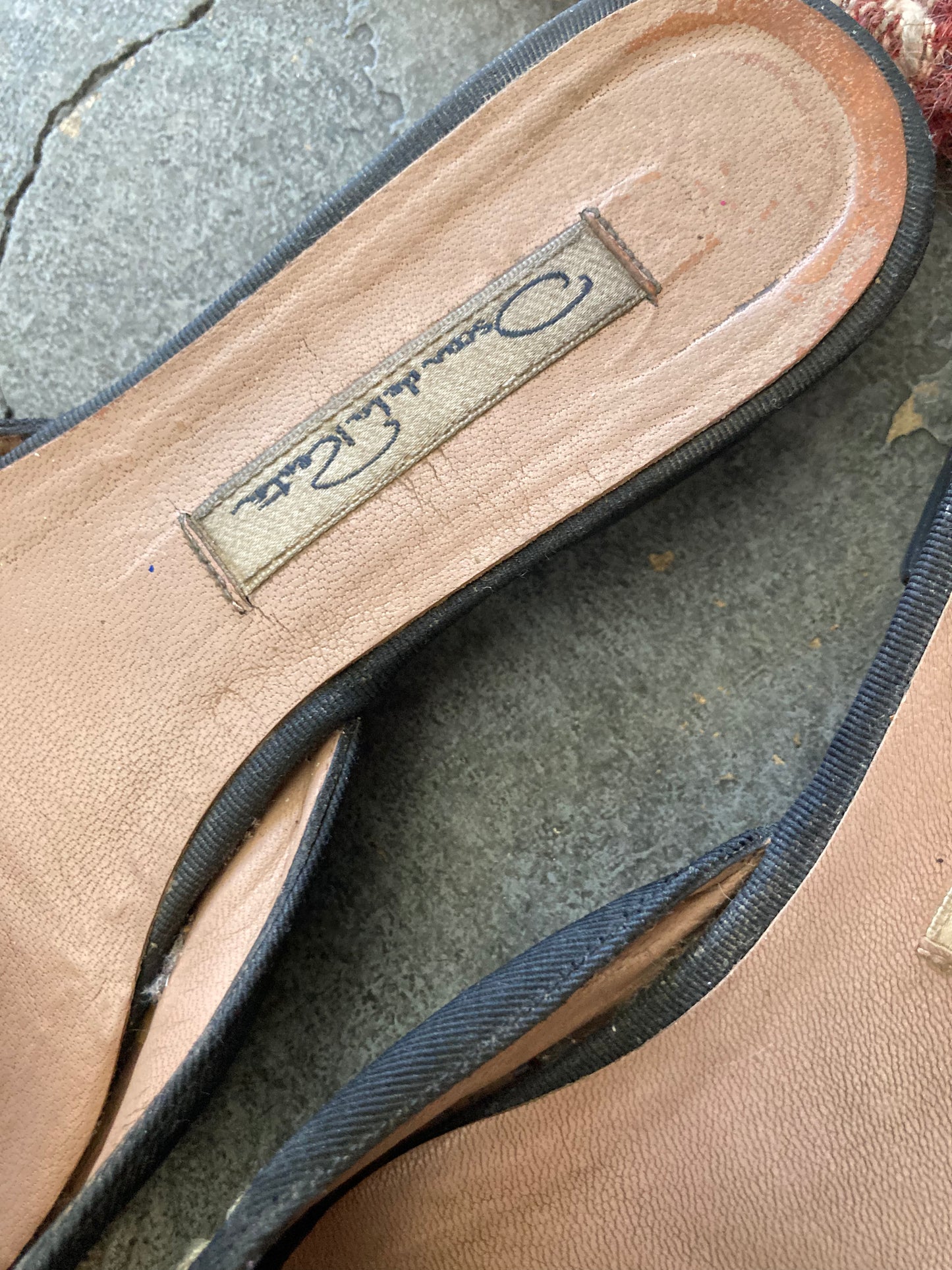 Vintage Oscar de la Renta Black & White Beaded Slides 6